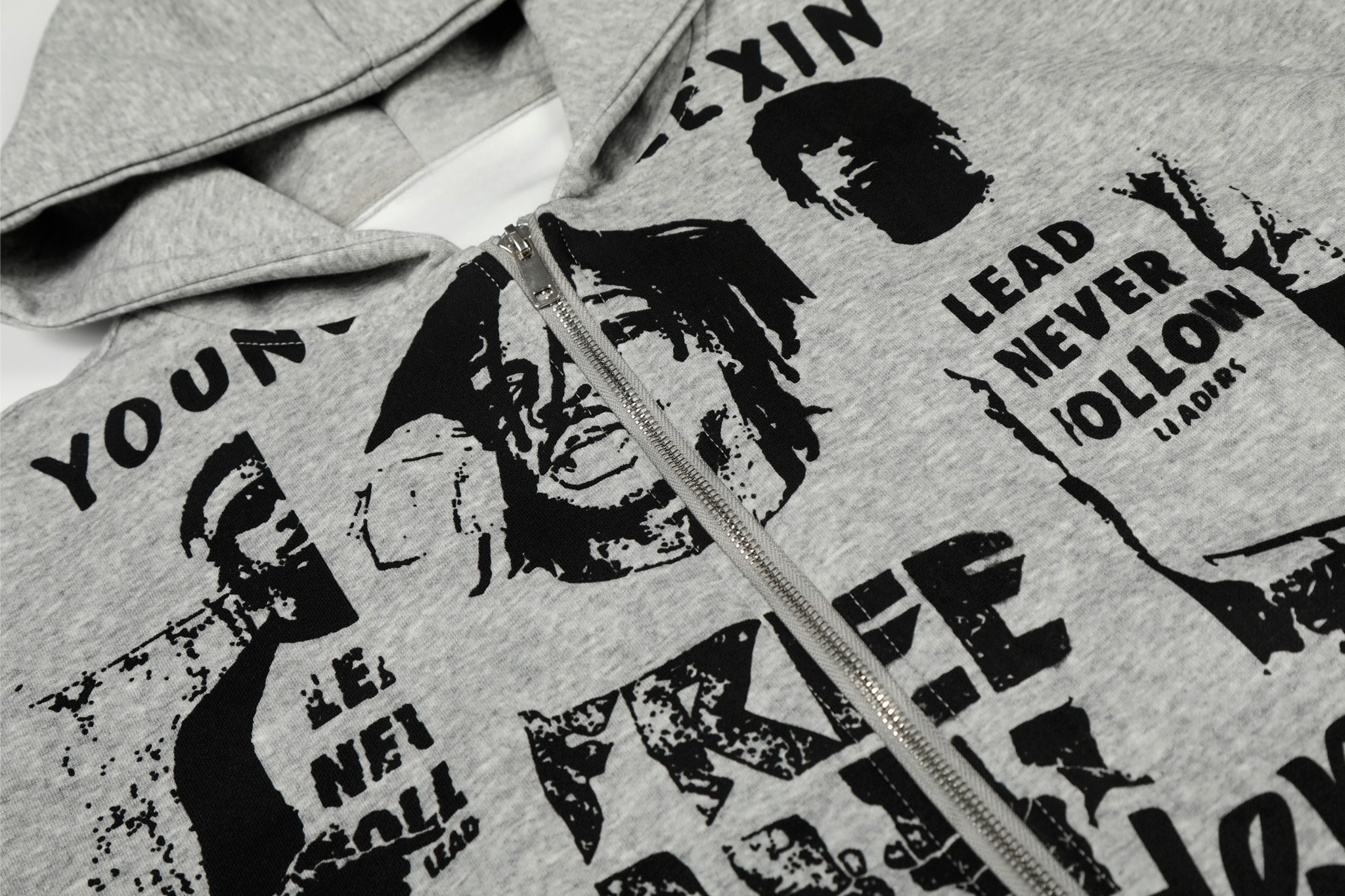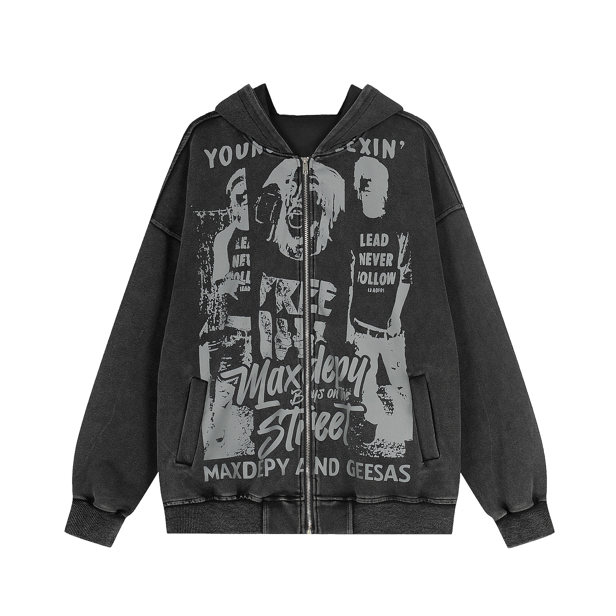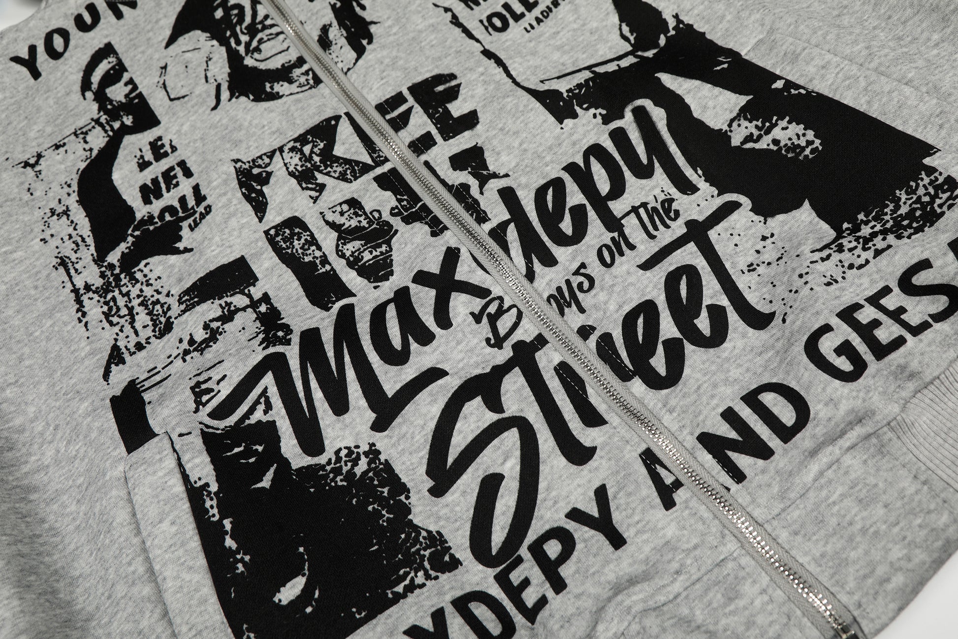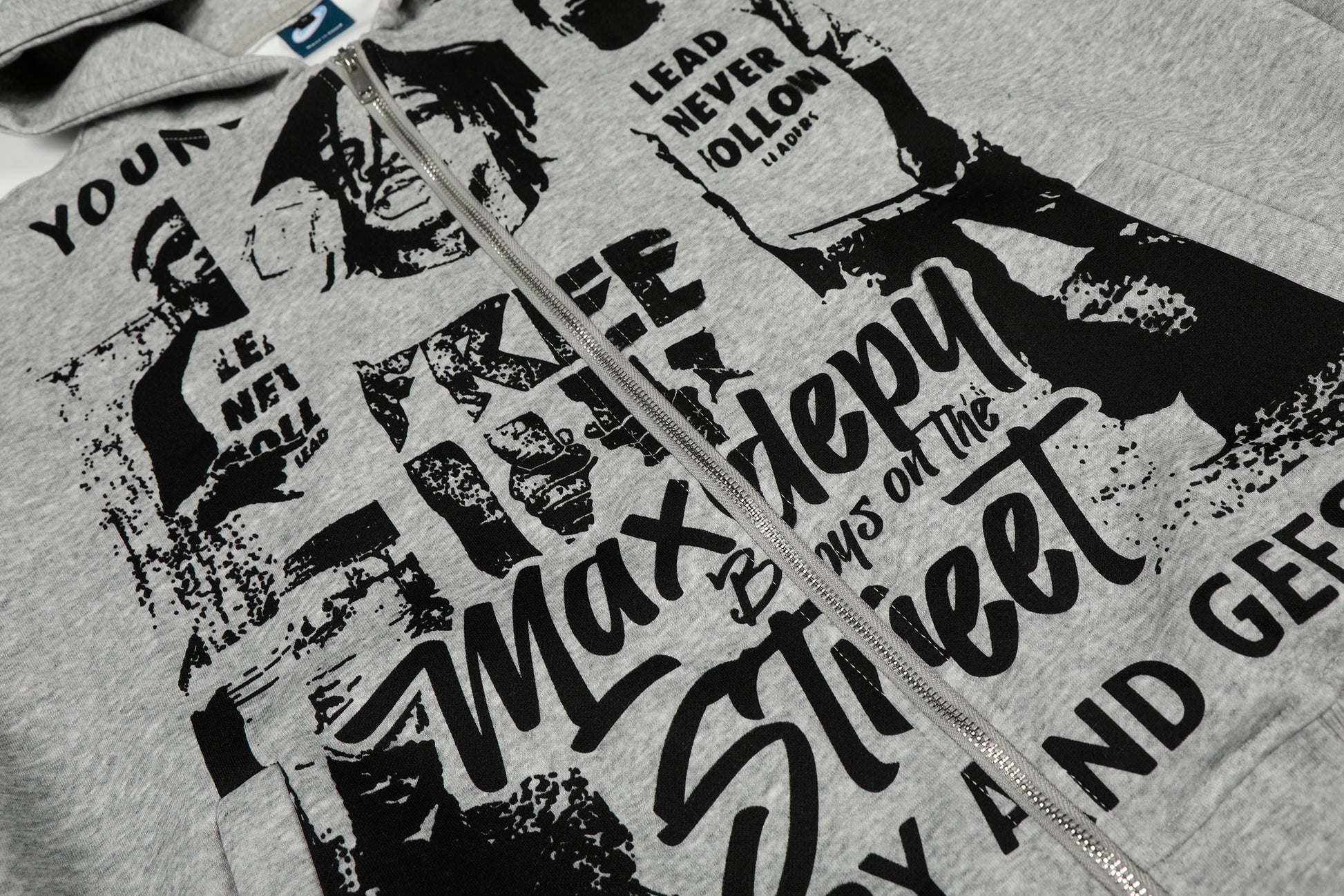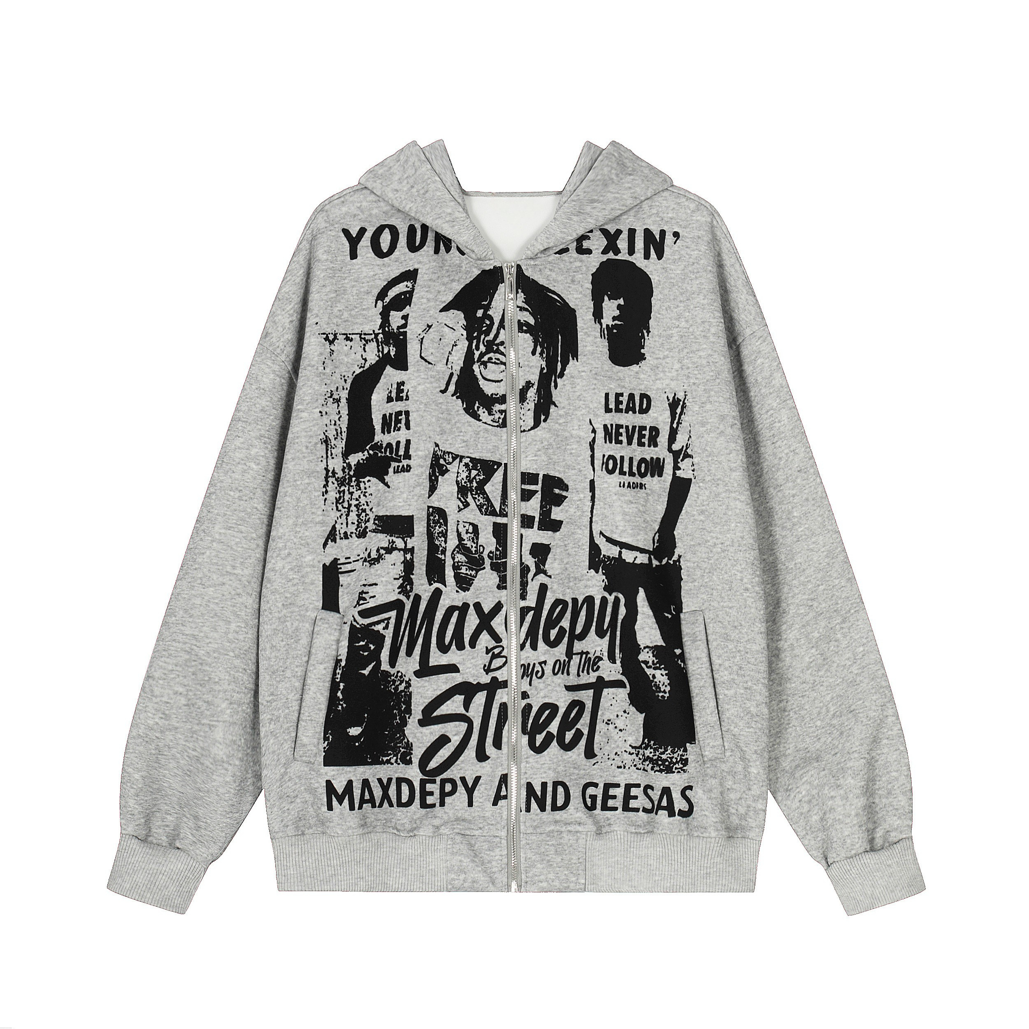 The Omirad Street Manifesto Graphic Zip Hoodie features bold collage-style portrait graphics and layered typography that capture raw underground street energy. Designed with a full-coverage front print and distressed visual texture, this hoodie delivers an unapologetic attitude rooted in youth culture and rebellion. Finished with a relaxed silhouette and zip-up construction, it’s built for statement styling without sacrificing everyday comfort.