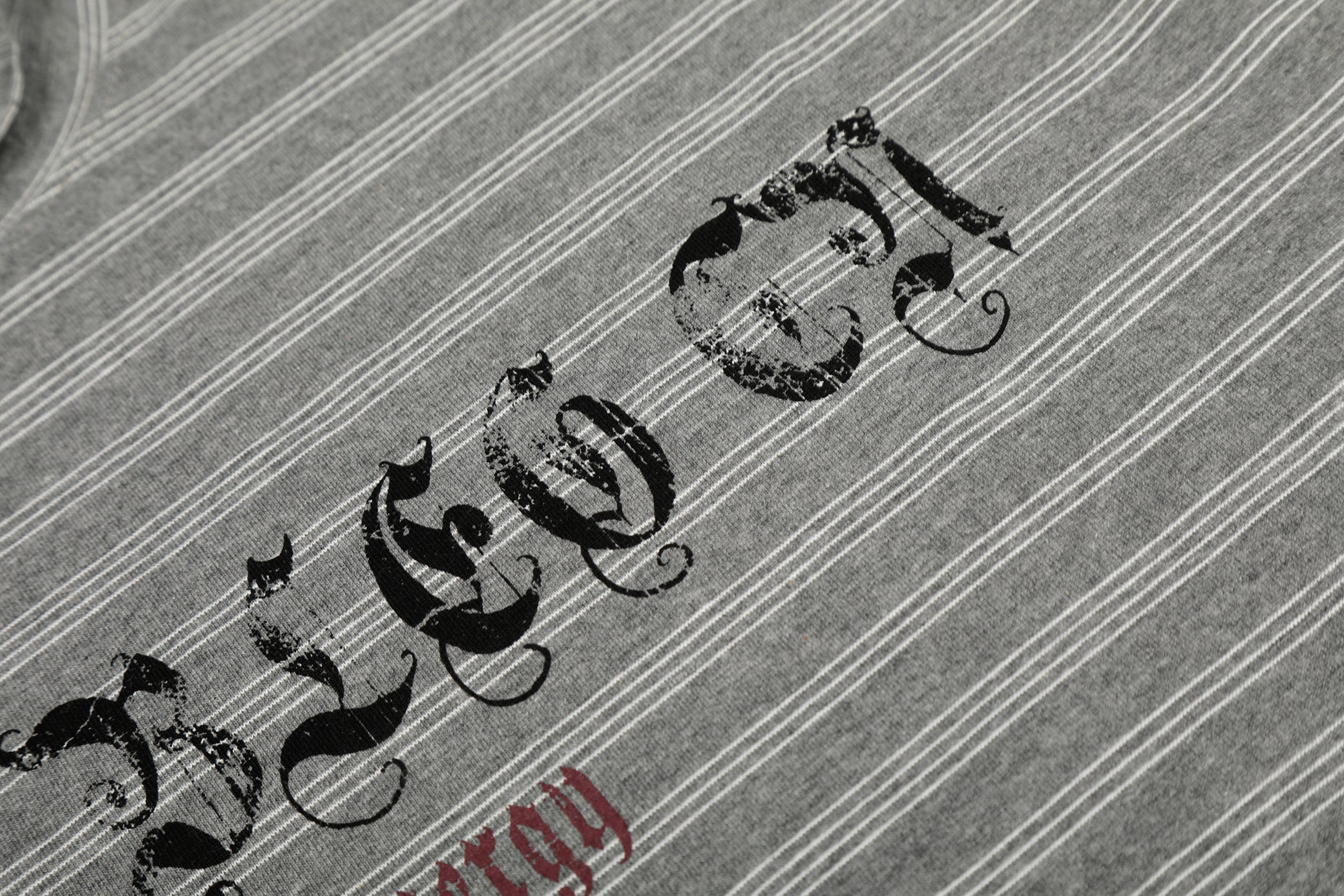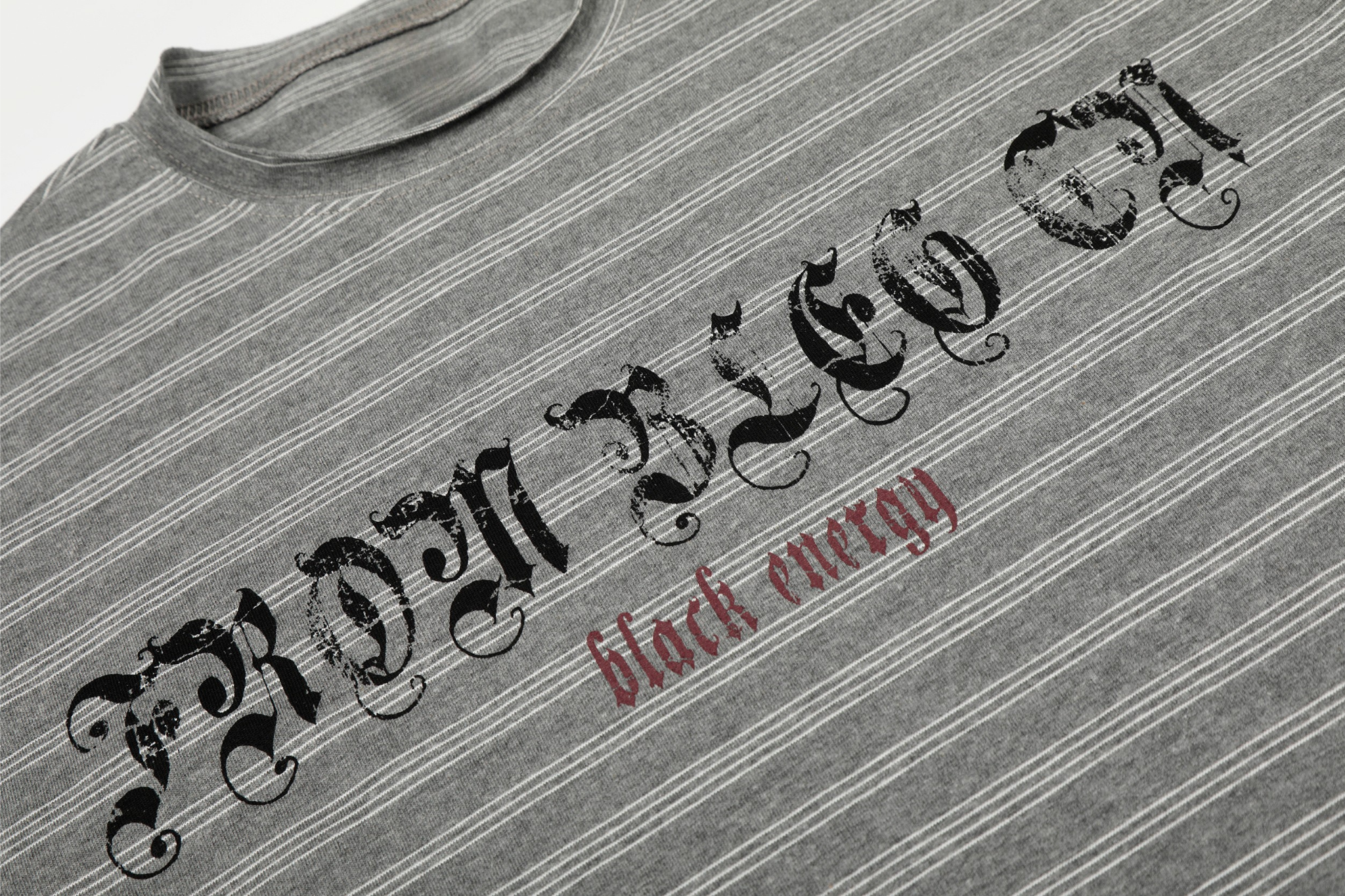 The Omirad Striped Gothic Logo Long Sleeve Tee features a clean horizontal stripe base paired with a vintage-inspired gothic logo print across the chest, delivering a subtle yet edgy streetwear aesthetic. Designed for everyday wear, this piece balances minimal pattern work with standout typography for an effortless layered look.