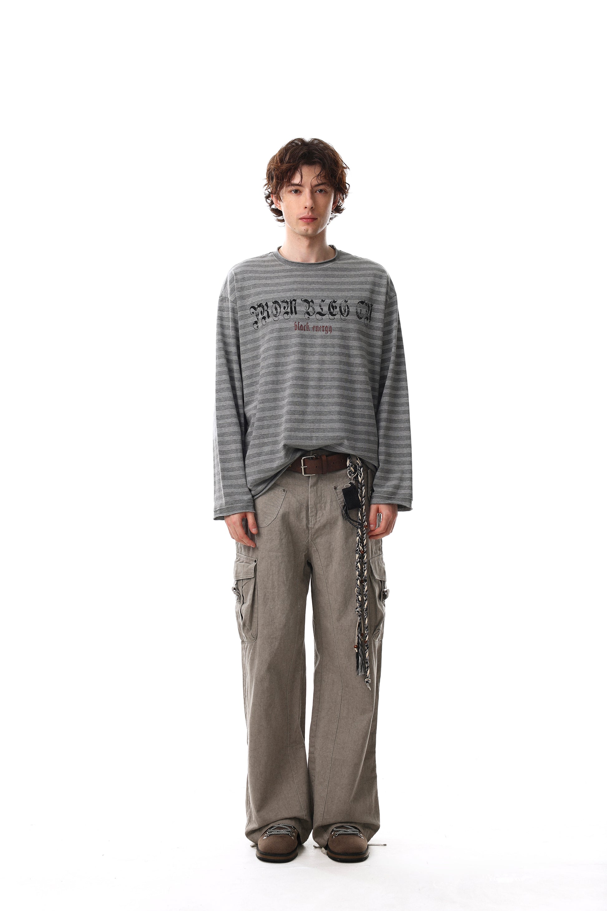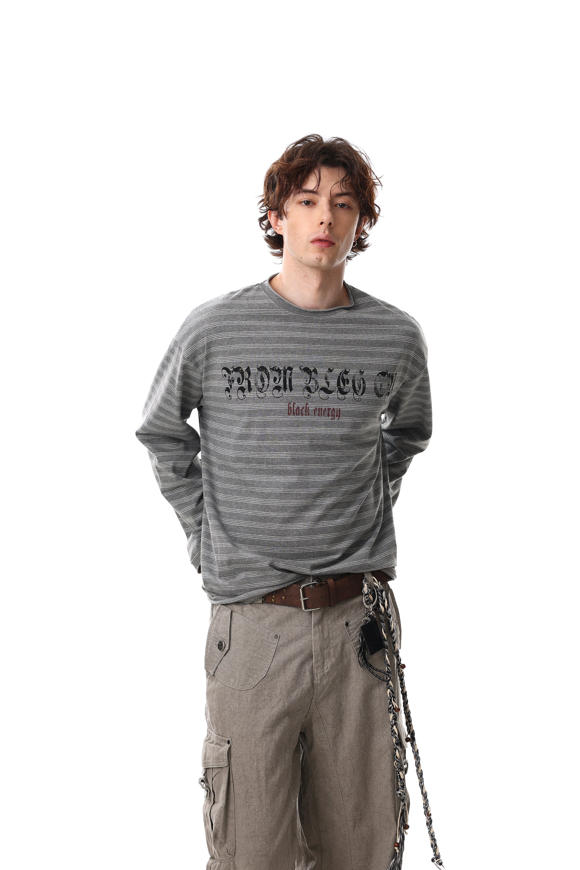 Omirad Striped Gothic Logo Long Sleeve Tee
