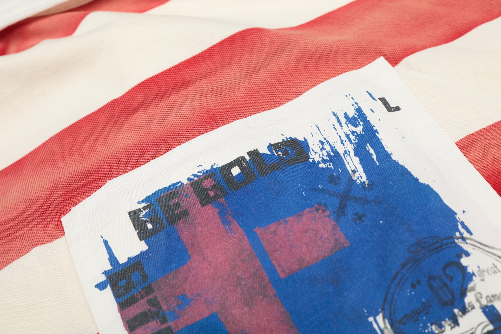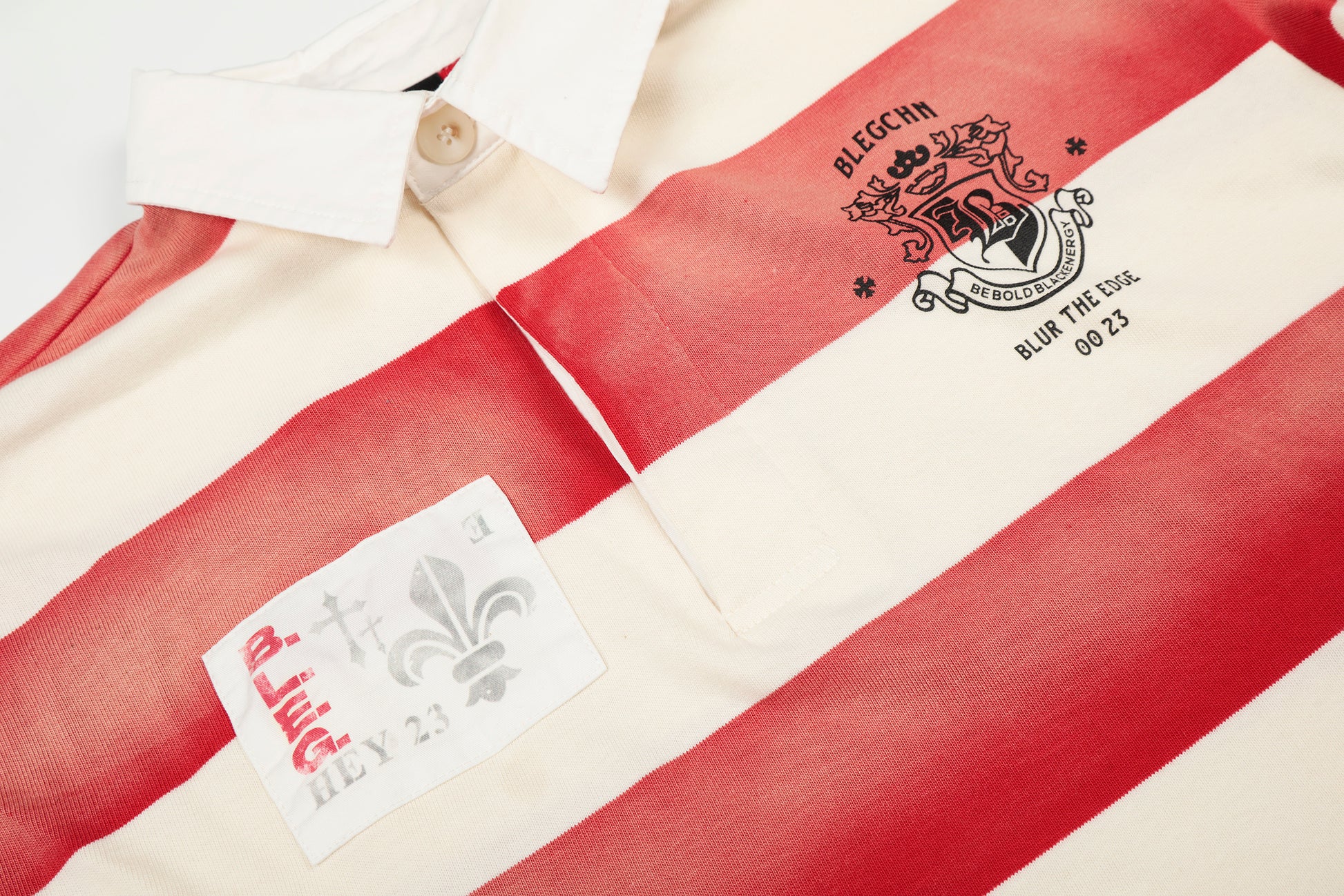 The Omirad Striped Long Sleeve Rugby Shirt features a classic rugby-style silhouette with bold horizontal stripes and a clean collared neckline. Finished with chest graphic accents and a statement back print, this piece blends vintage sports aesthetics with modern streetwear attitude.