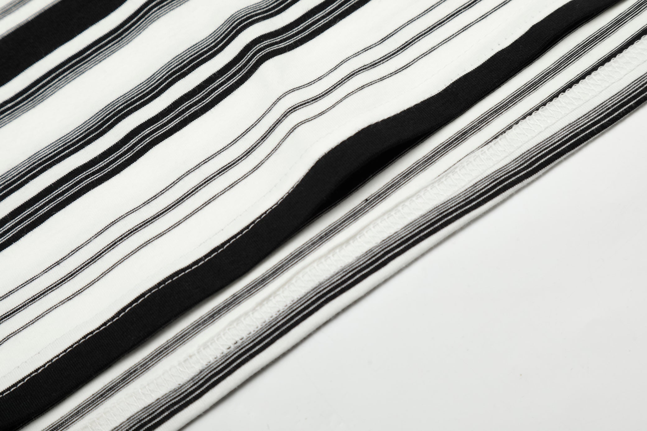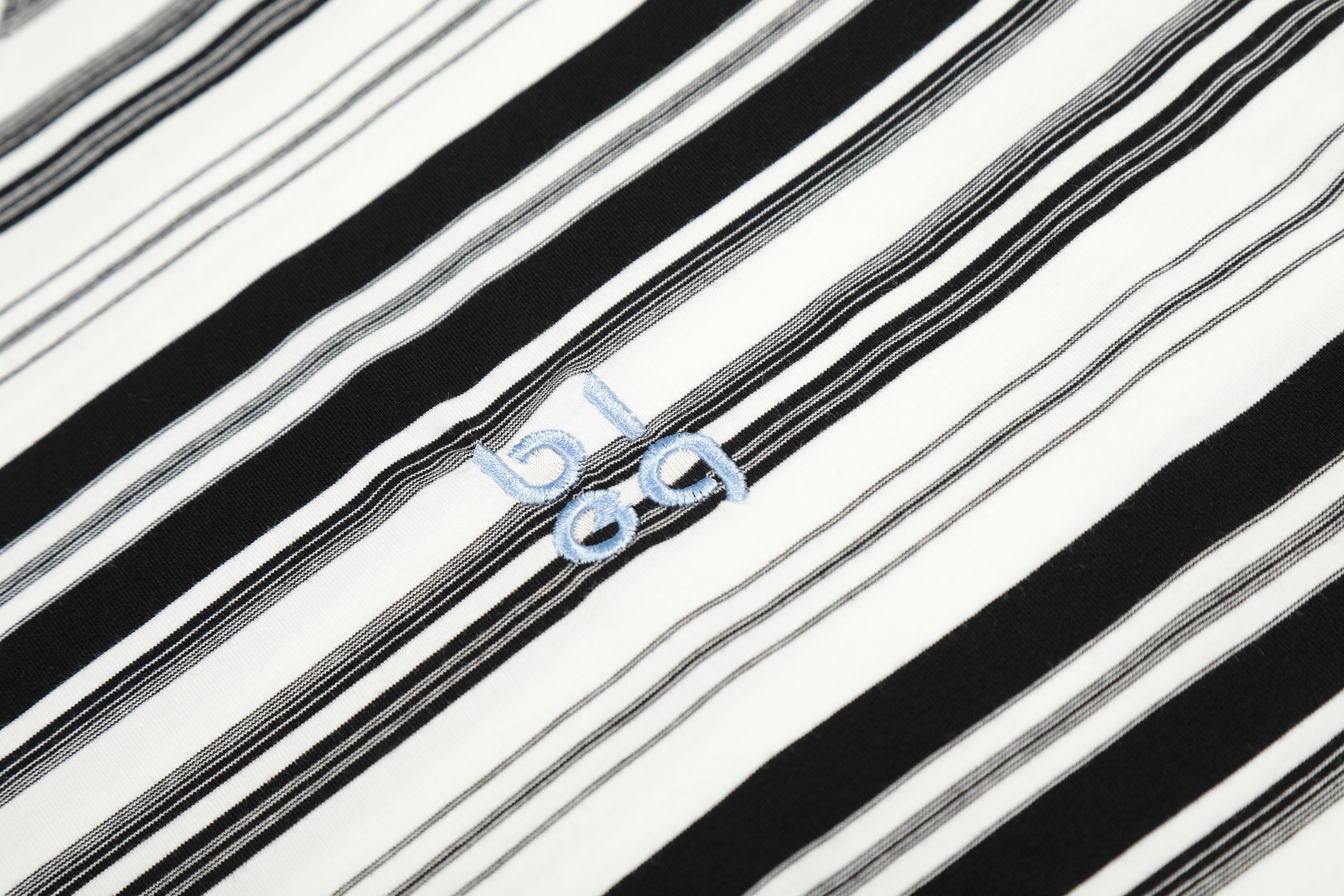 Clothing details: Crewneck design, all-over stripe pattern, contrast stitch detailing, chest logo accent, long sleeves, relaxed fit.
