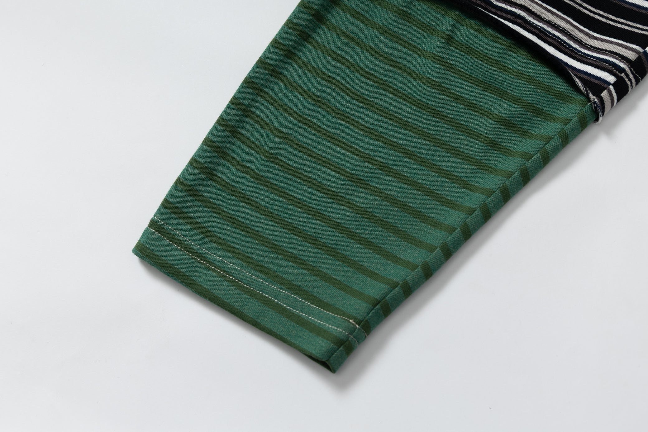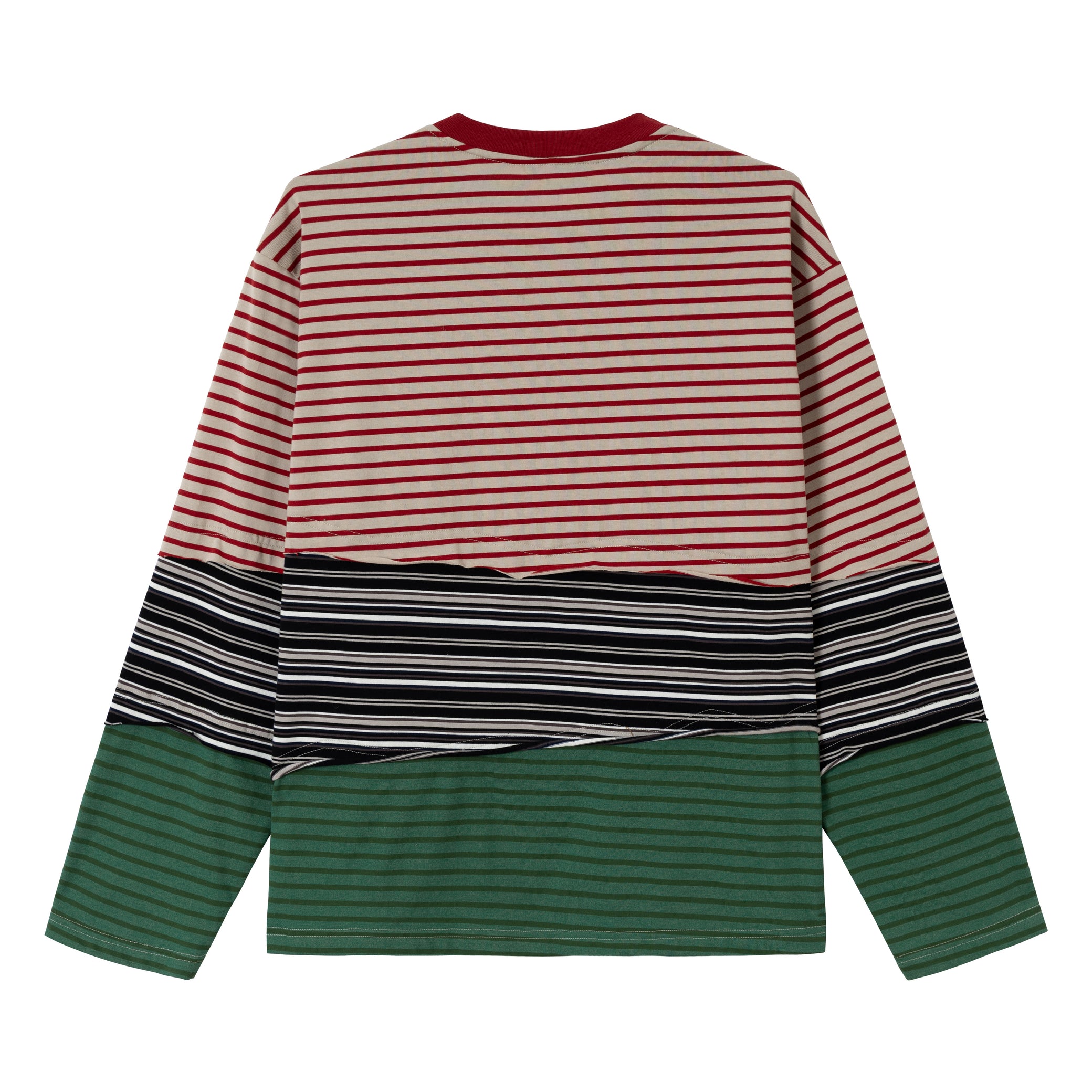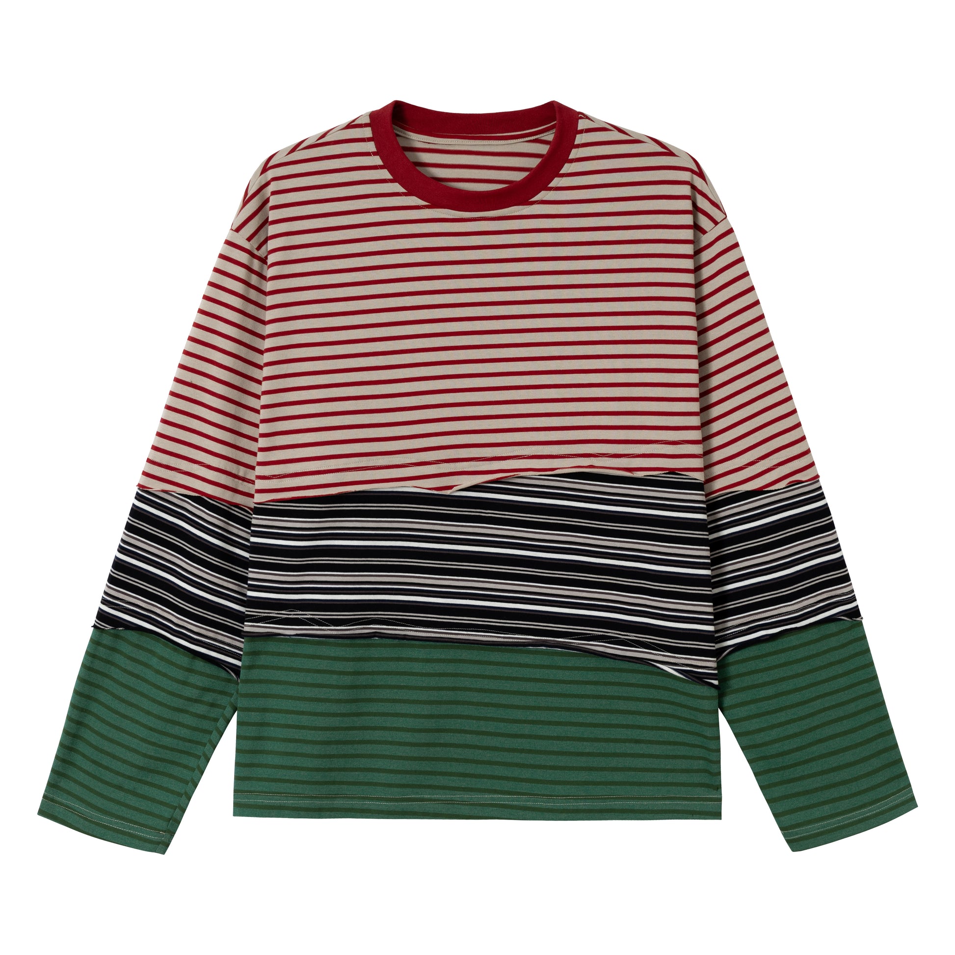 Clothing details: Color-block stripes, long sleeves, crew neck, relaxed fit