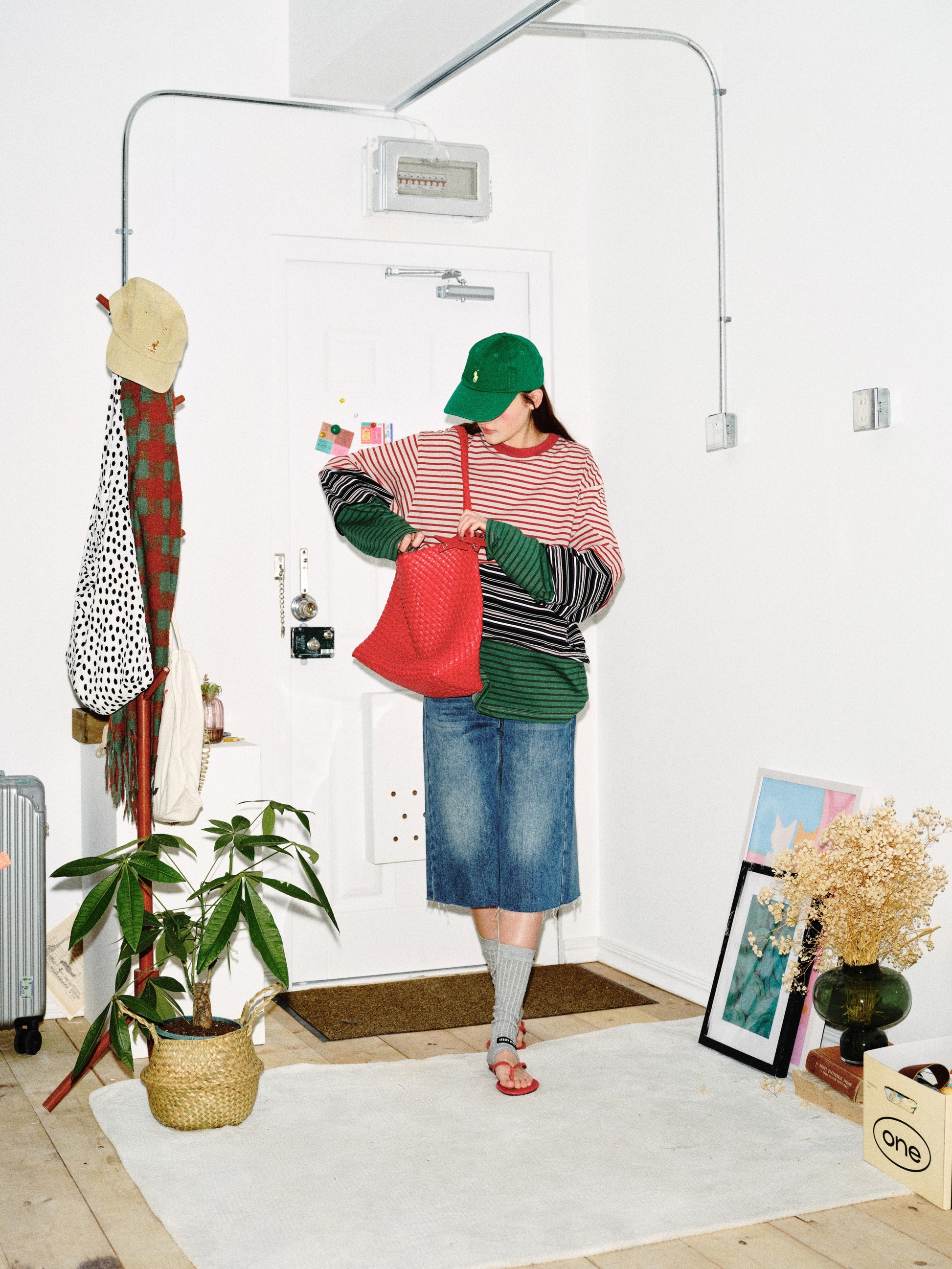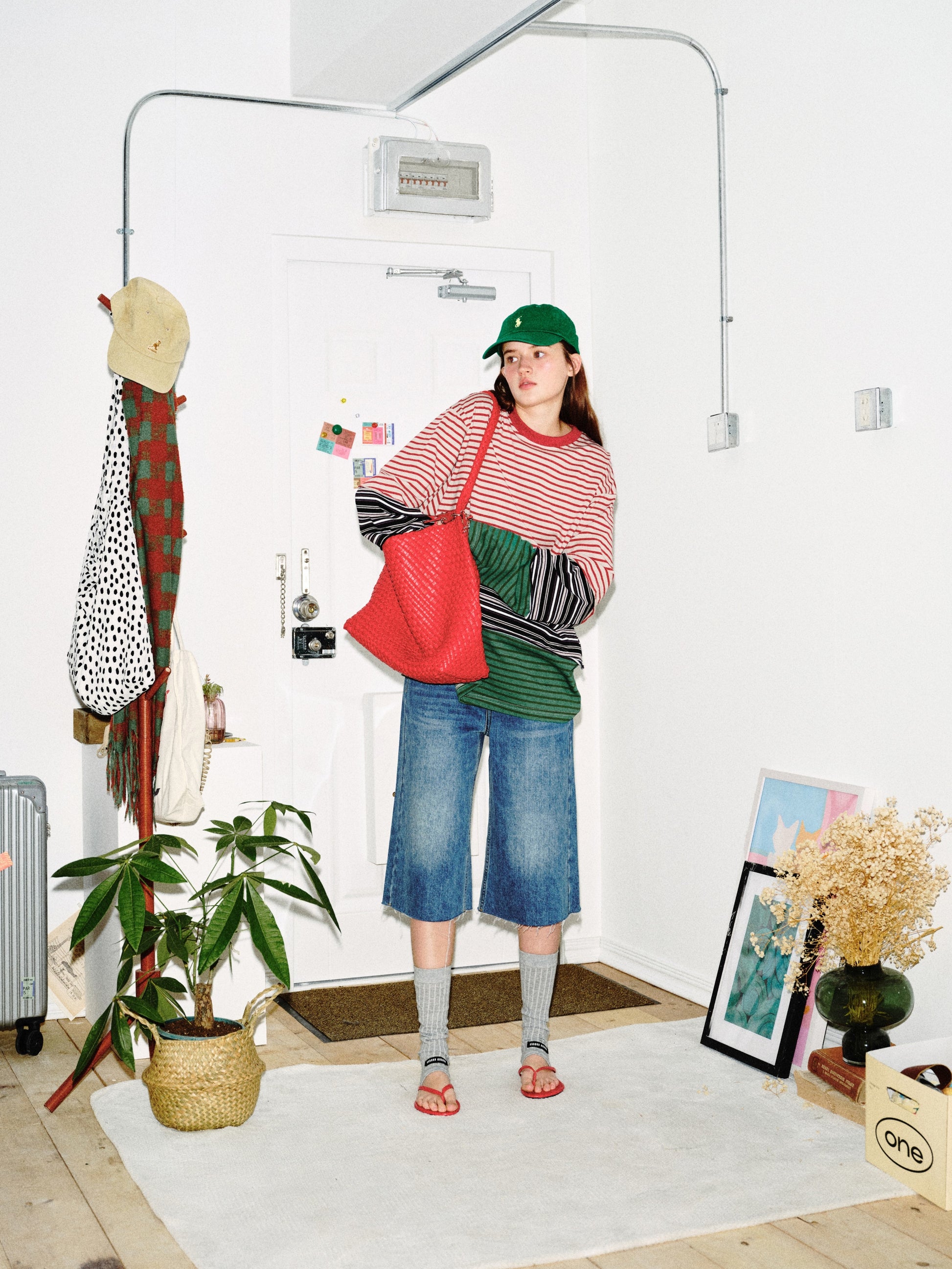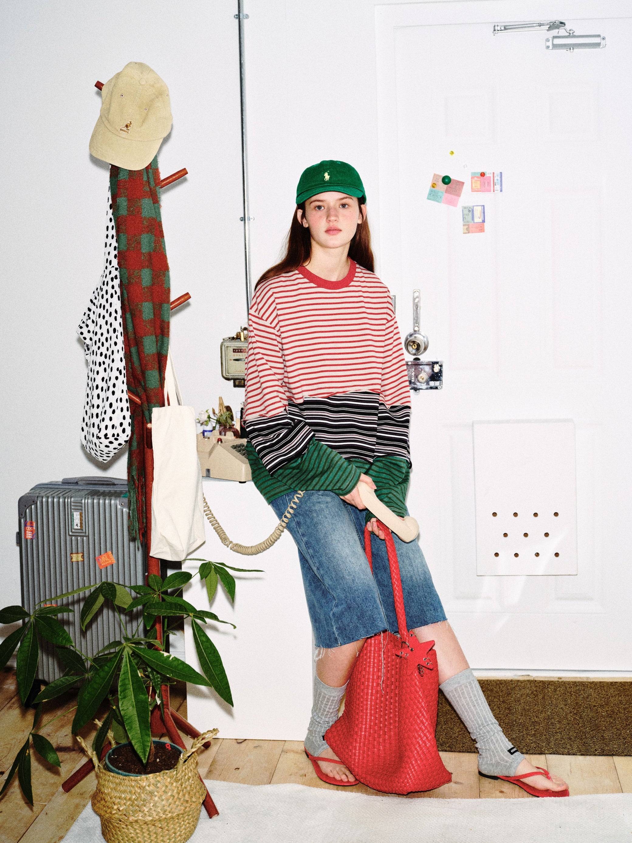Clothing details: Color-block stripes, long sleeves, crew neck, relaxed fit