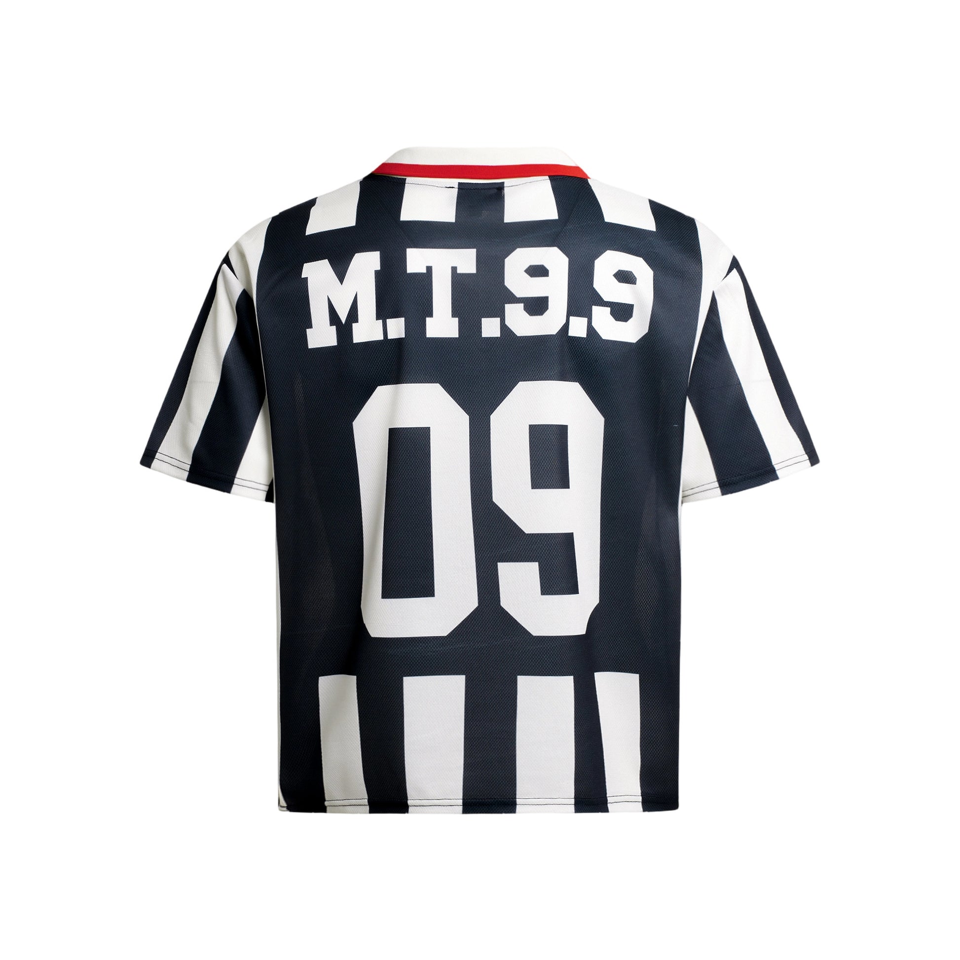 The Omirad Striped Varsity Soccer Jersey features bold vertical stripe panels combined with classic “09” varsity numbering for a retro football-inspired streetwear look. Designed with a relaxed fit, contrast collar detail, and statement front and back graphics, it blends vintage sports aesthetics with modern street style.