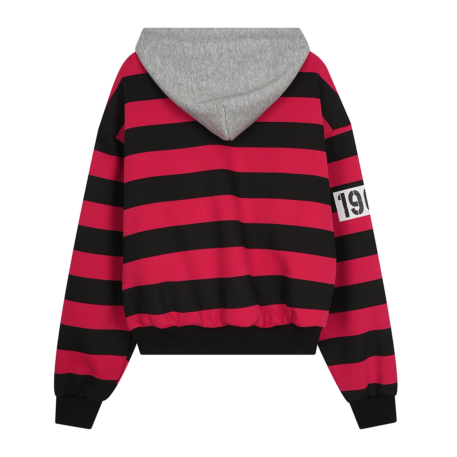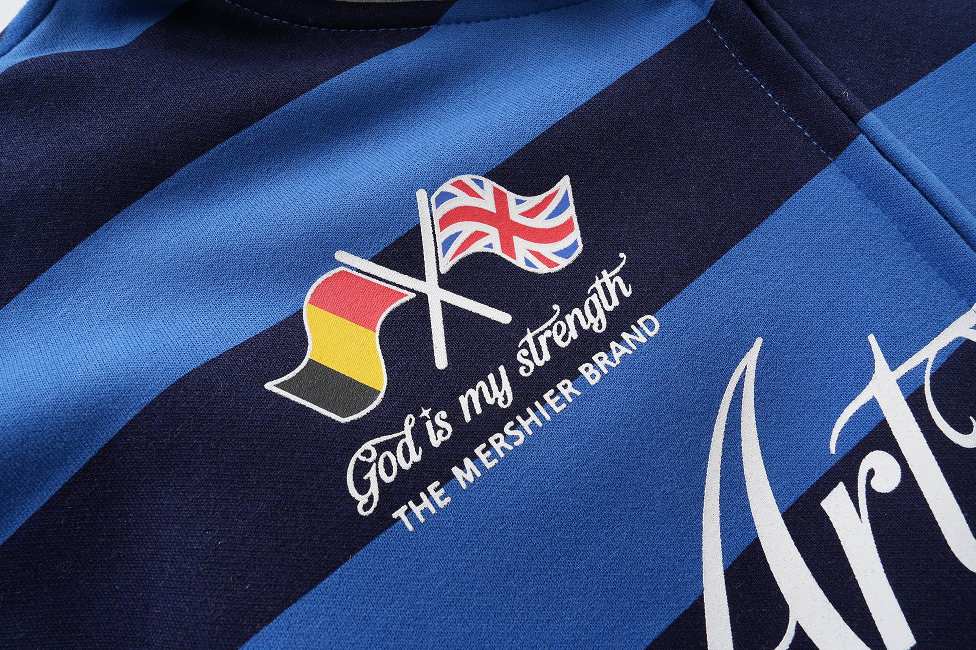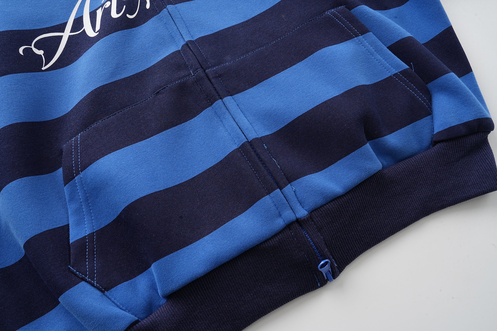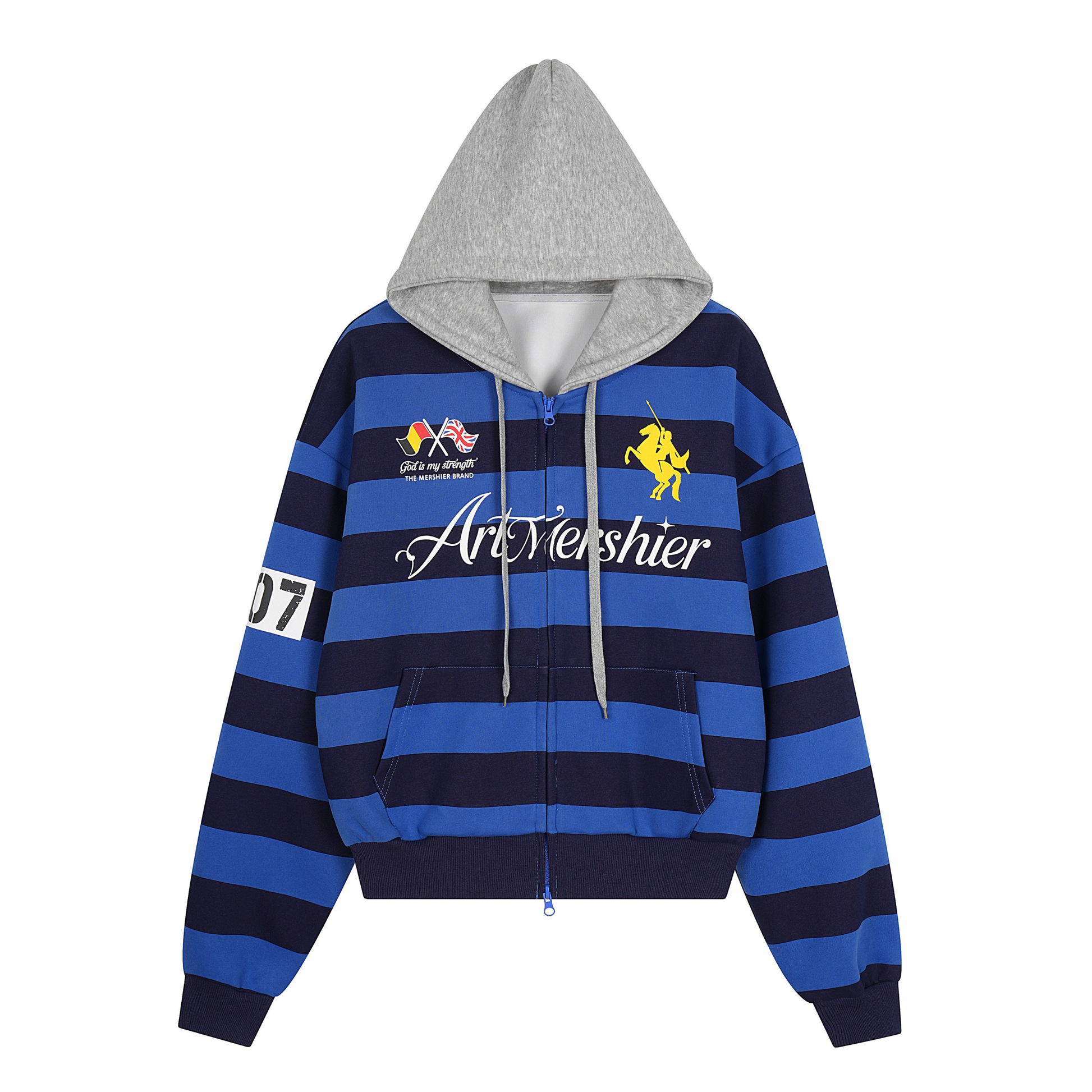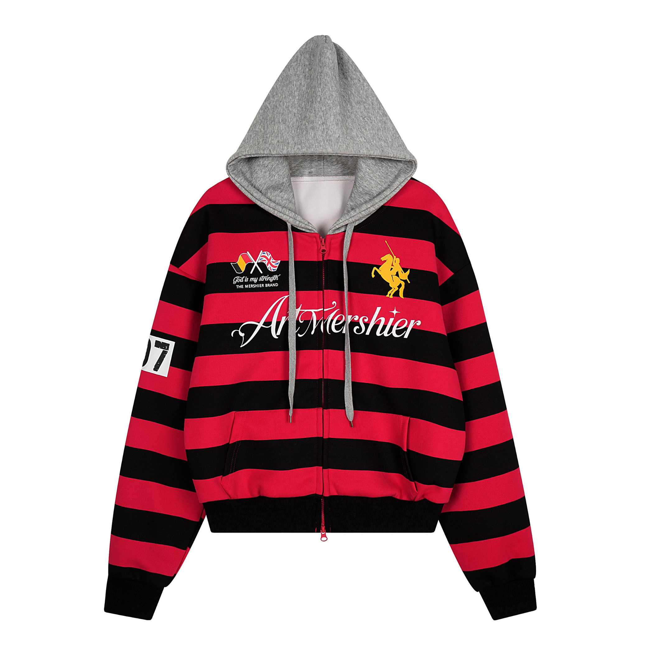 The Omirad Striped Zip Hoodie features bold horizontal striping paired with signature graphic accents for a statement-driven streetwear look. Designed to elevate everyday outfits, this hoodie combines a sporty silhouette with standout branding and contrast detailing, making it an easy layer for casual styling.