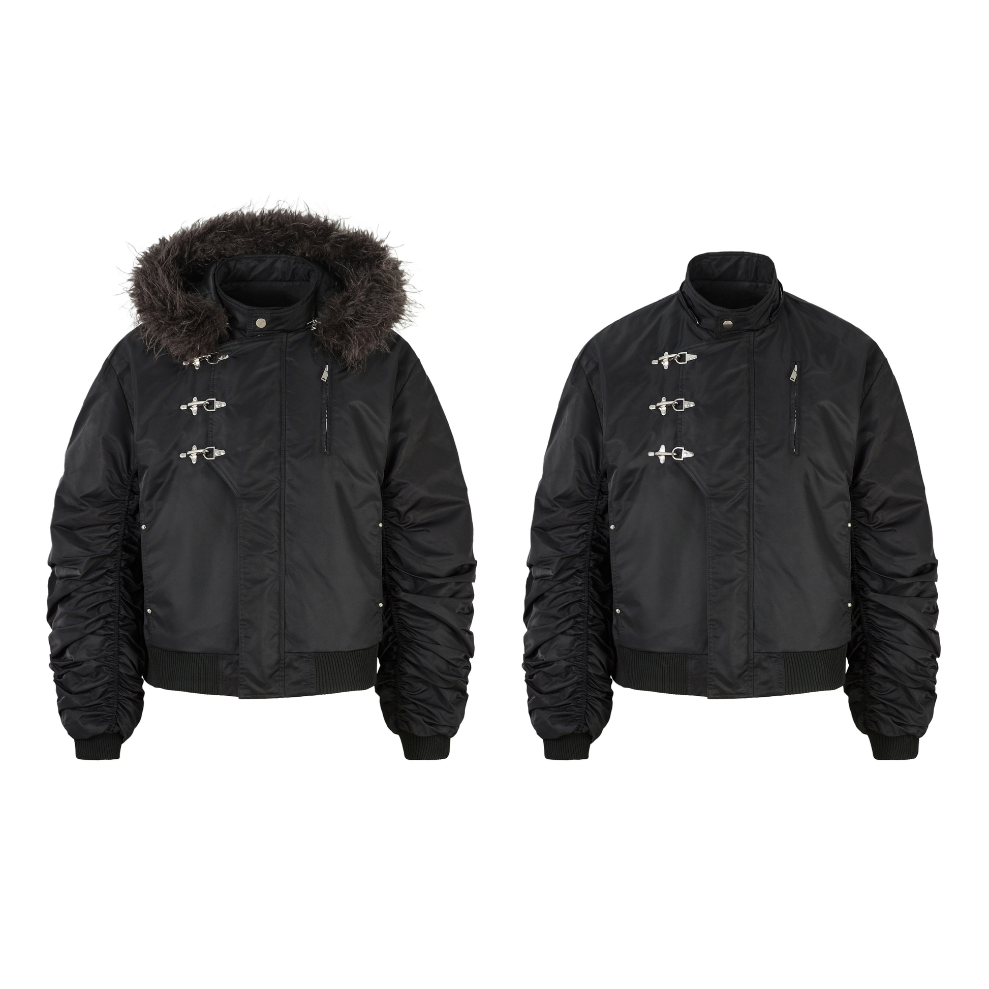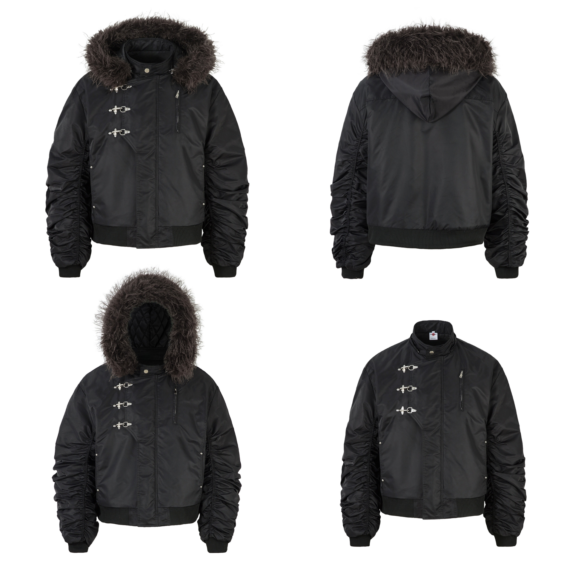 The Omirad Toggle-Lock Fur Hood Jacket delivers a striking blend of functional street design and bold winter attitude. Featuring metal toggle-lock closures and a detachable faux-fur hood, this jacket brings versatile styling and elevated texture to your cold-weather fits. Built with performance comfort in mind, it offers durable warmth while keeping your look unapologetically urban.