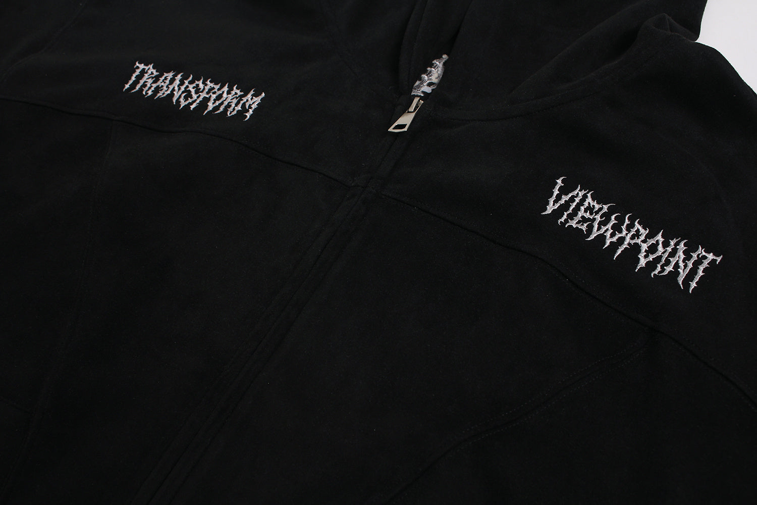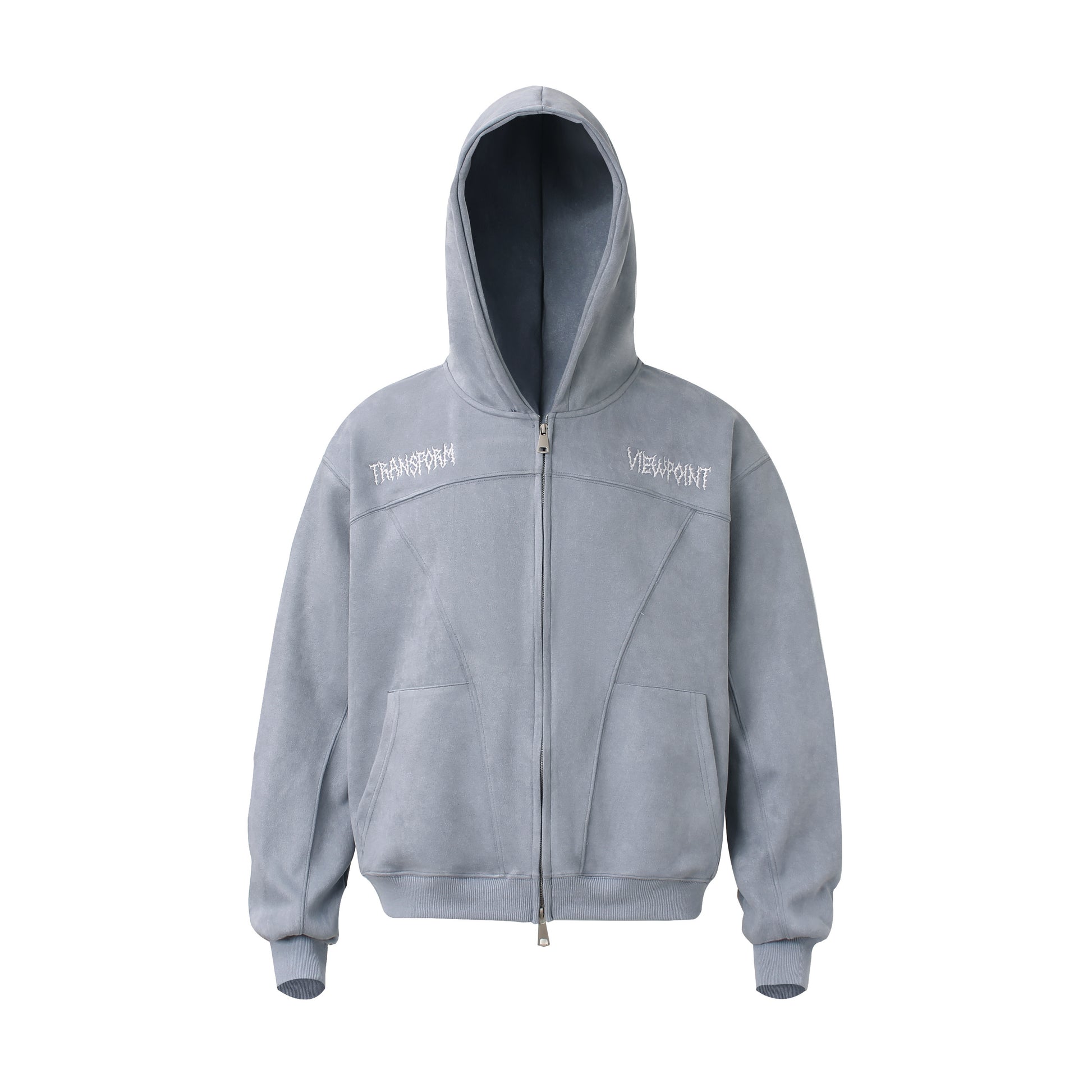 The Omirad “Viewpoint” Hoodie redefines street comfort with a refined suede-like finish. Crafted from a smooth, stretchy blend that feels both soft and structured, it features clean panel stitching across the shoulders and a full zip-up design for versatile layering. Subtle embroidered “Transform / Viewpoint” graphics give it a futuristic edge — minimal yet bold.