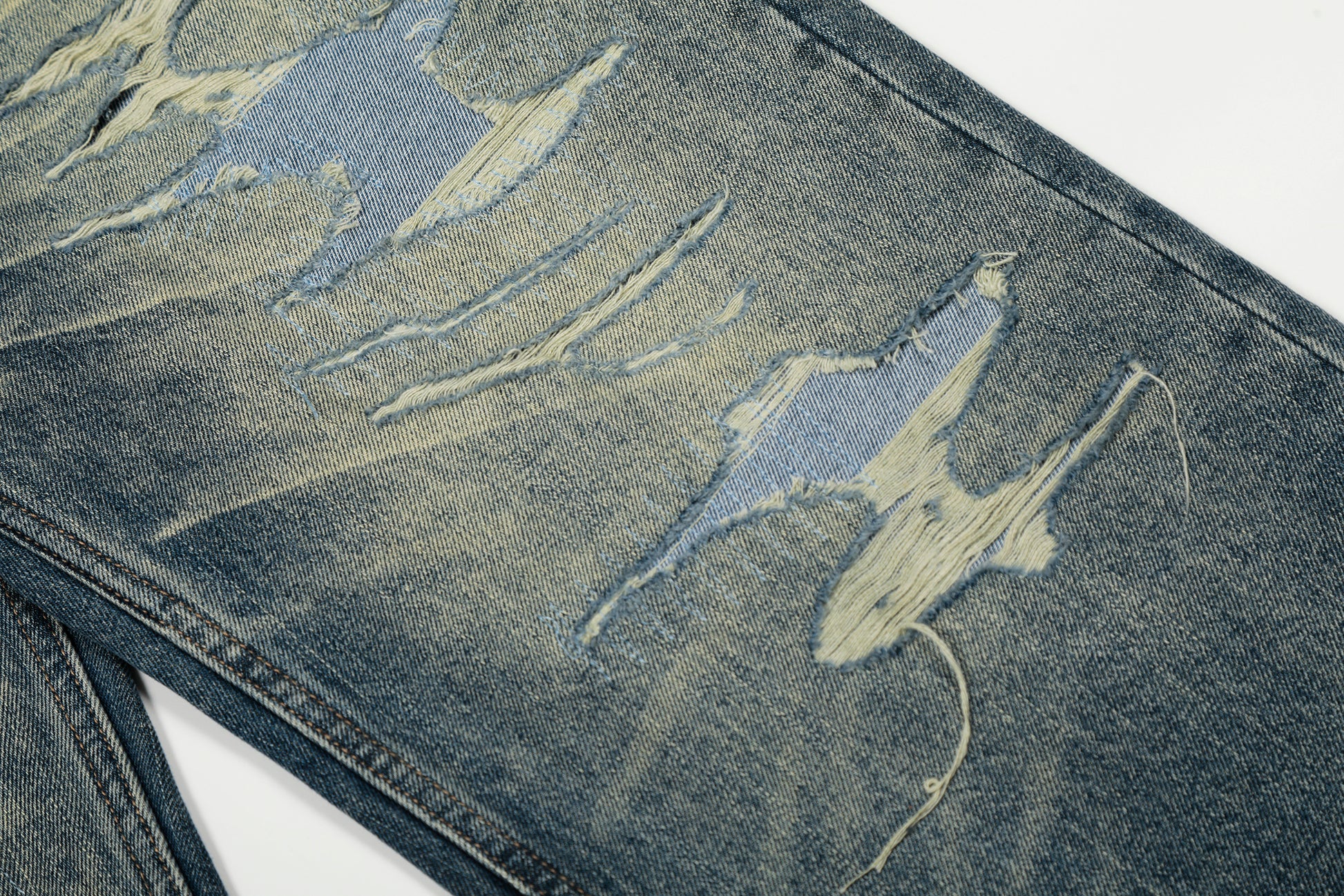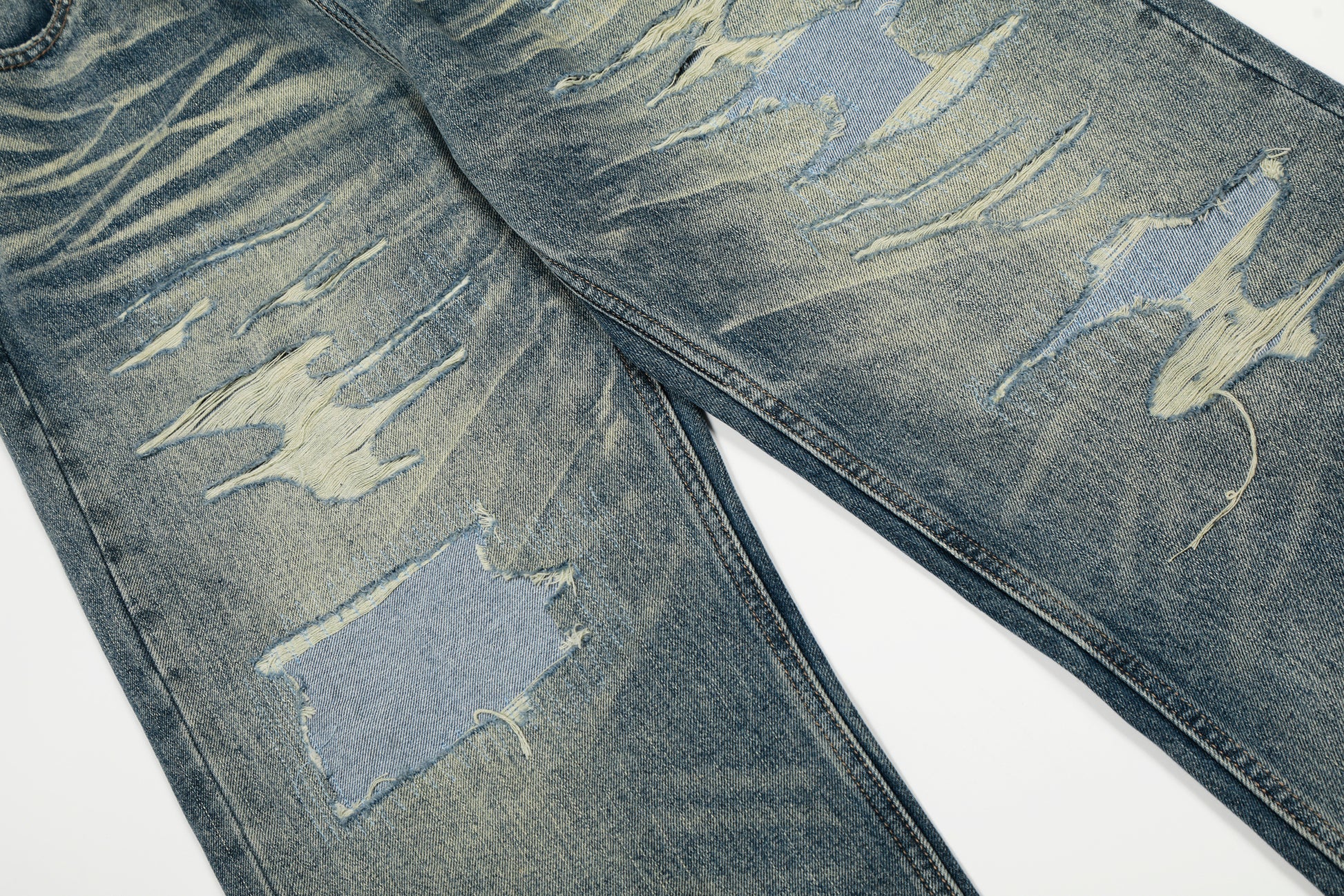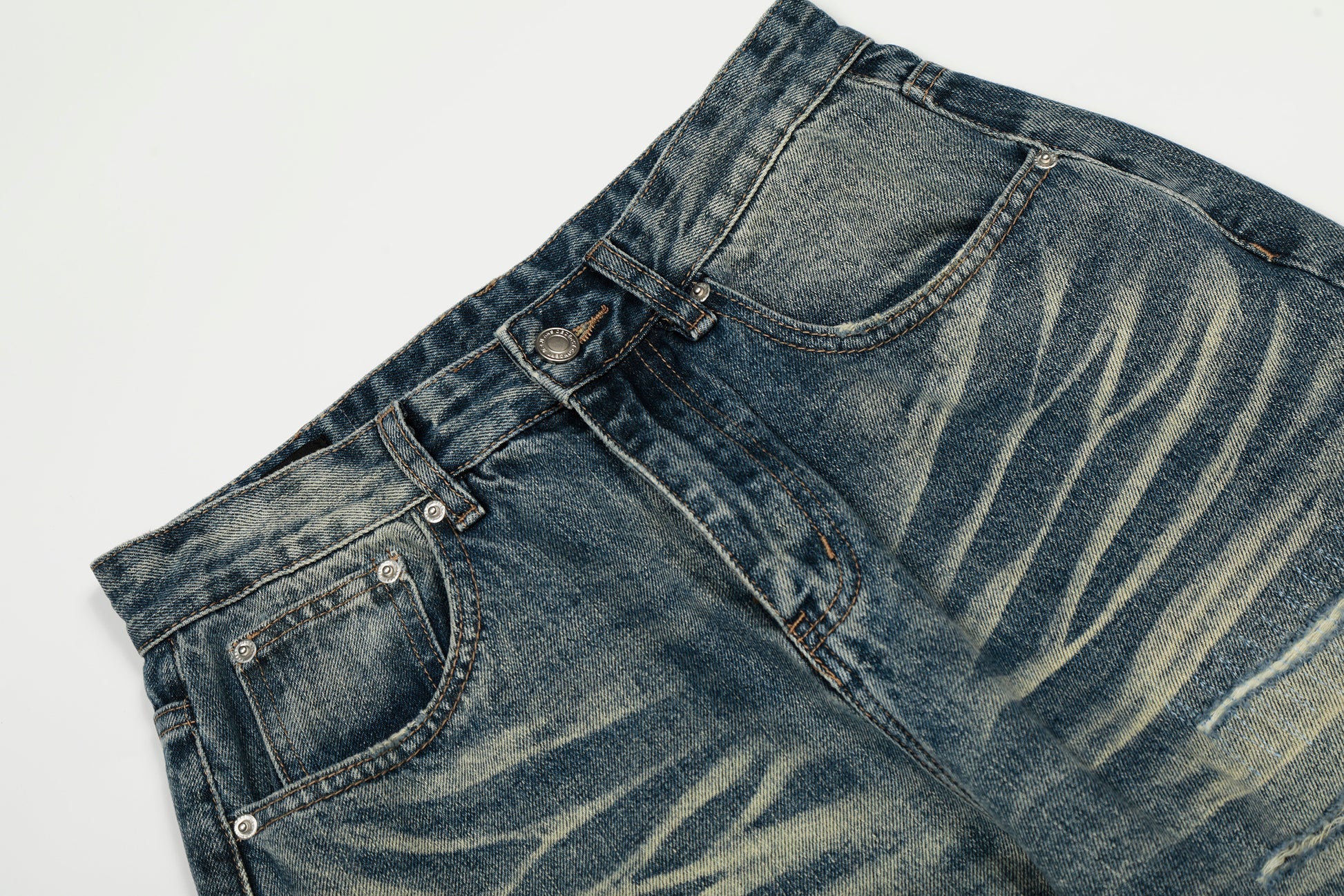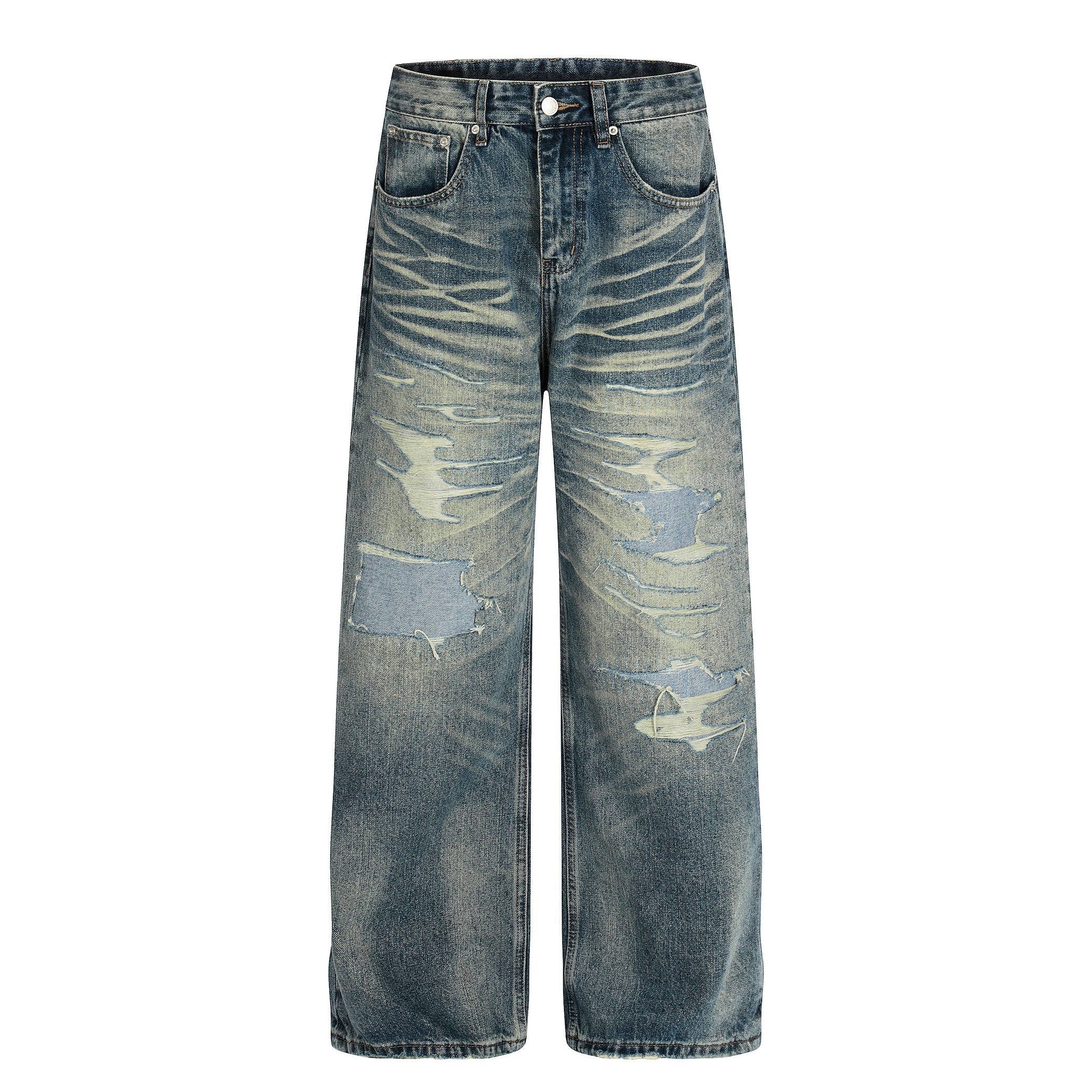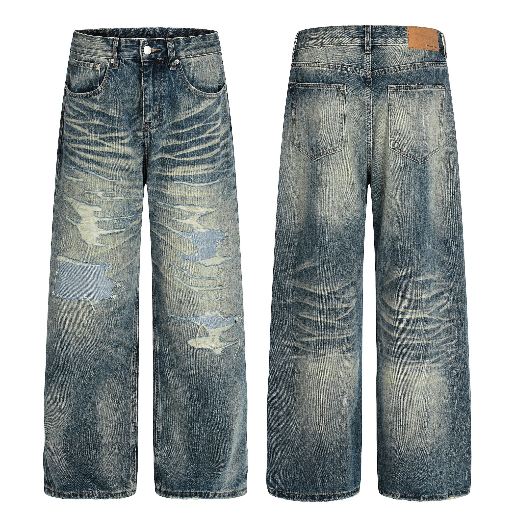 The Omirad Vintage Washed Distressed Jeans channel raw energy through heavy fading and hand-ripped detailing. Cut in a relaxed wide-leg fit, the pair blends classic denim construction with contemporary destruction. Each wash pattern and tear is intentionally placed — turning everyday wear into a statement of rebellion and authenticity.