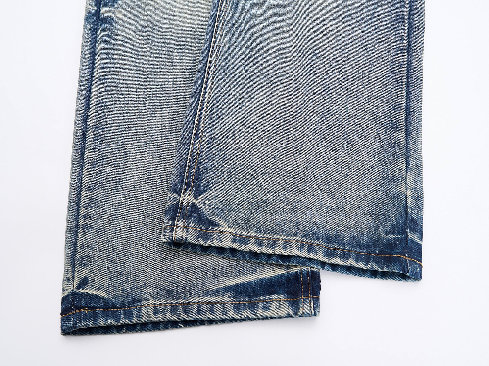 Clothing details: Vintage washed denim, wide-leg fit, natural fade and whisker detailing, classic five-pocket construction, reinforced waistband with belt loops, durable heavyweight cotton denim.