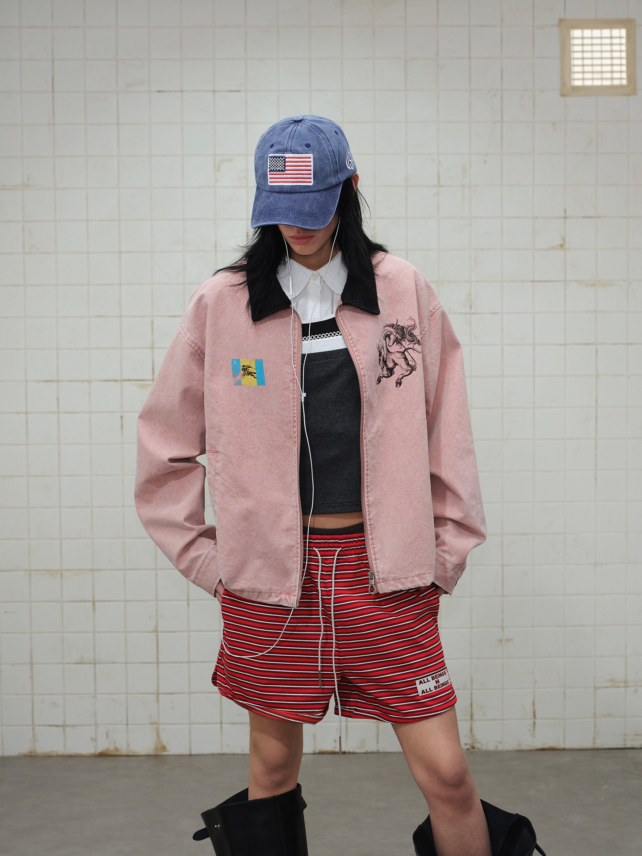 The Omirad Washed Zip-Up Jacket features a vintage-washed finish that brings a worn-in, street-ready attitude to a clean, structured silhouette. Designed with a contrast corduroy collar and subtle graphic prints on the chest, this jacket blends retro workwear vibes with modern streetwear aesthetics. The zip-up front and relaxed fit make it easy to layer, perfect for everyday styling across seasons.