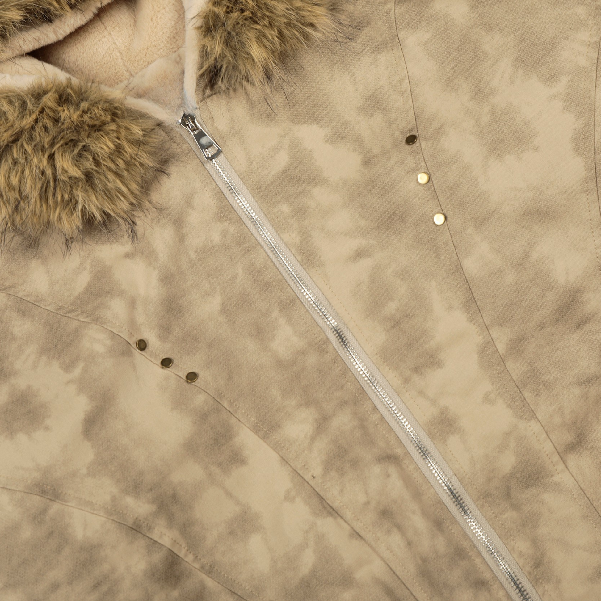 Omirad Washed Faux Fur Hooded Cotton Jacket