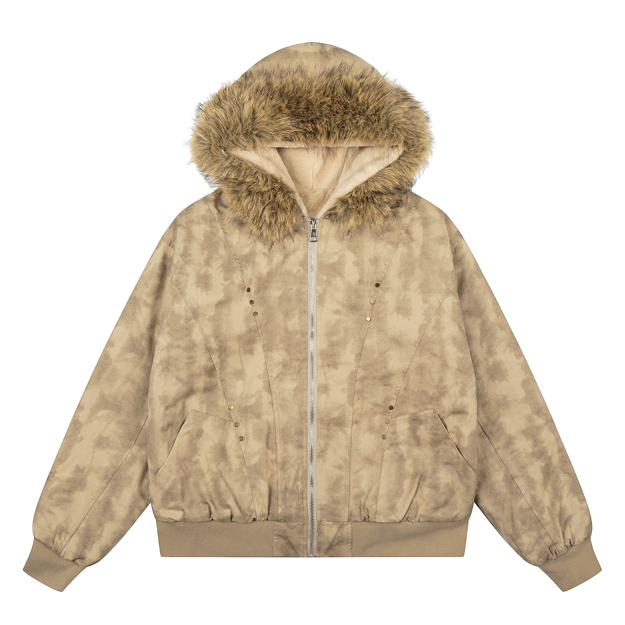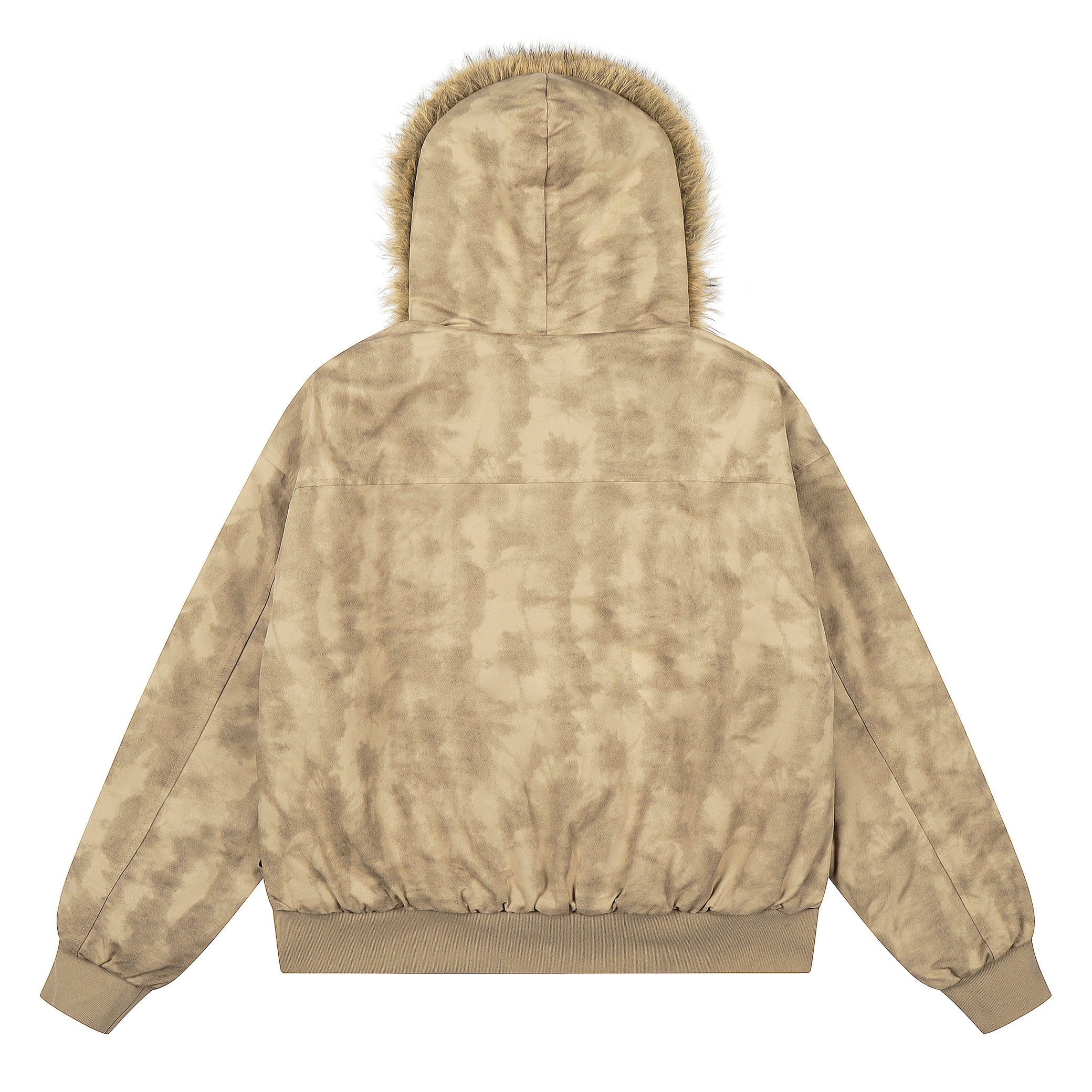 The Omirad Washed Faux Fur Hooded Cotton Jacket brings a vintage-inspired twist to classic street outerwear. Designed in a washed beige tone, it features a detachable faux fur hood trim and subtle distress detailing for a worn-in look. The bomber-style silhouette with elastic cuffs and hem offers structure and comfort, while the full-cotton shell adds a soft yet durable finish. Perfect for layering through colder weather with a relaxed, street-ready edge.