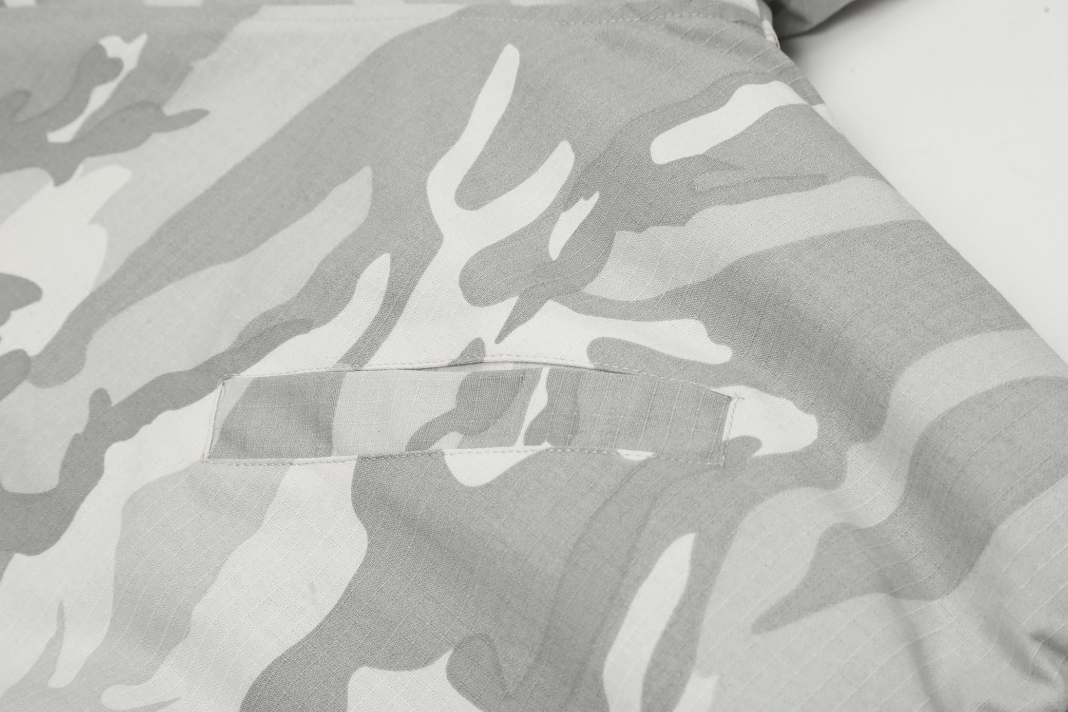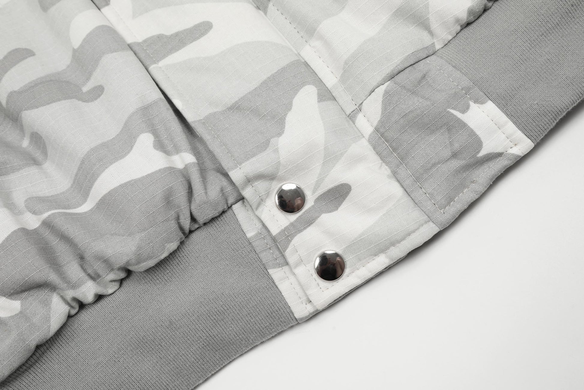 The Omirad White Camo Padded Jacket combines military-inspired camouflage with high-street functionality. Featuring a detachable faux-fur trim hood and cropped bomber silhouette, it delivers both warmth and attitude. The 100% cotton shell provides a structured matte finish, while the padded interior ensures comfort through colder months. Perfect for layering over hoodies or tees for a clean, elevated street look.