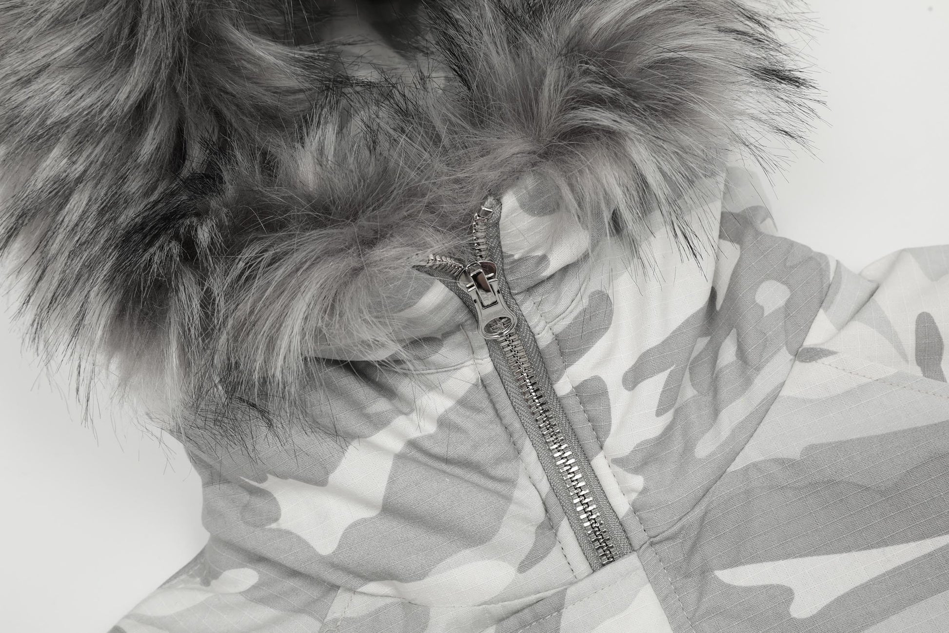 Omirad White Camo Faux Fur Hooded Padded Jacket