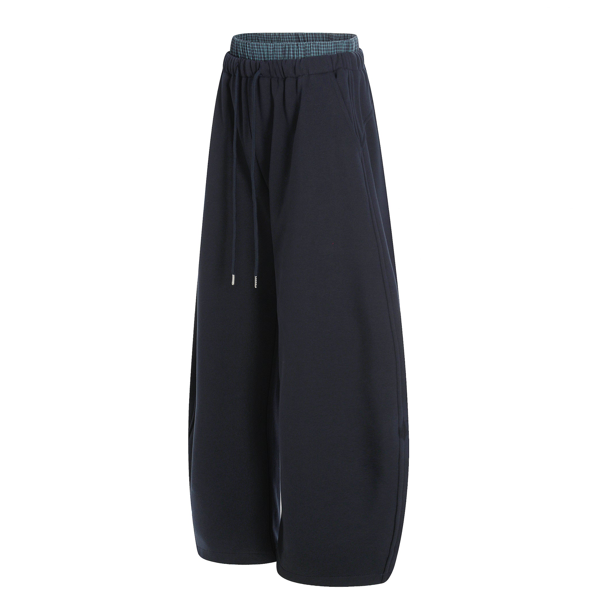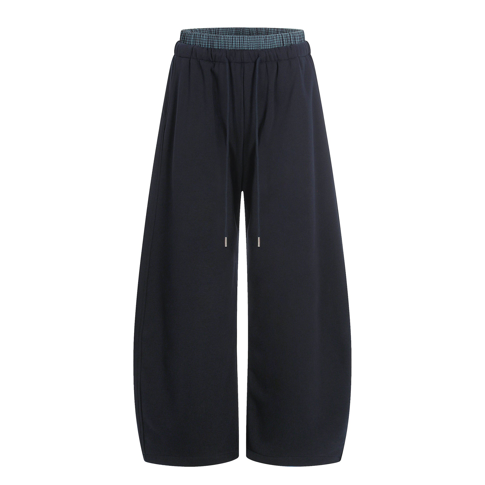 Clothing details: Wide-leg silhouette, elastic waistband with adjustable drawstring, smooth athletic fabric texture, relaxed fit, clean minimal design, suitable for daily wear and street styling.