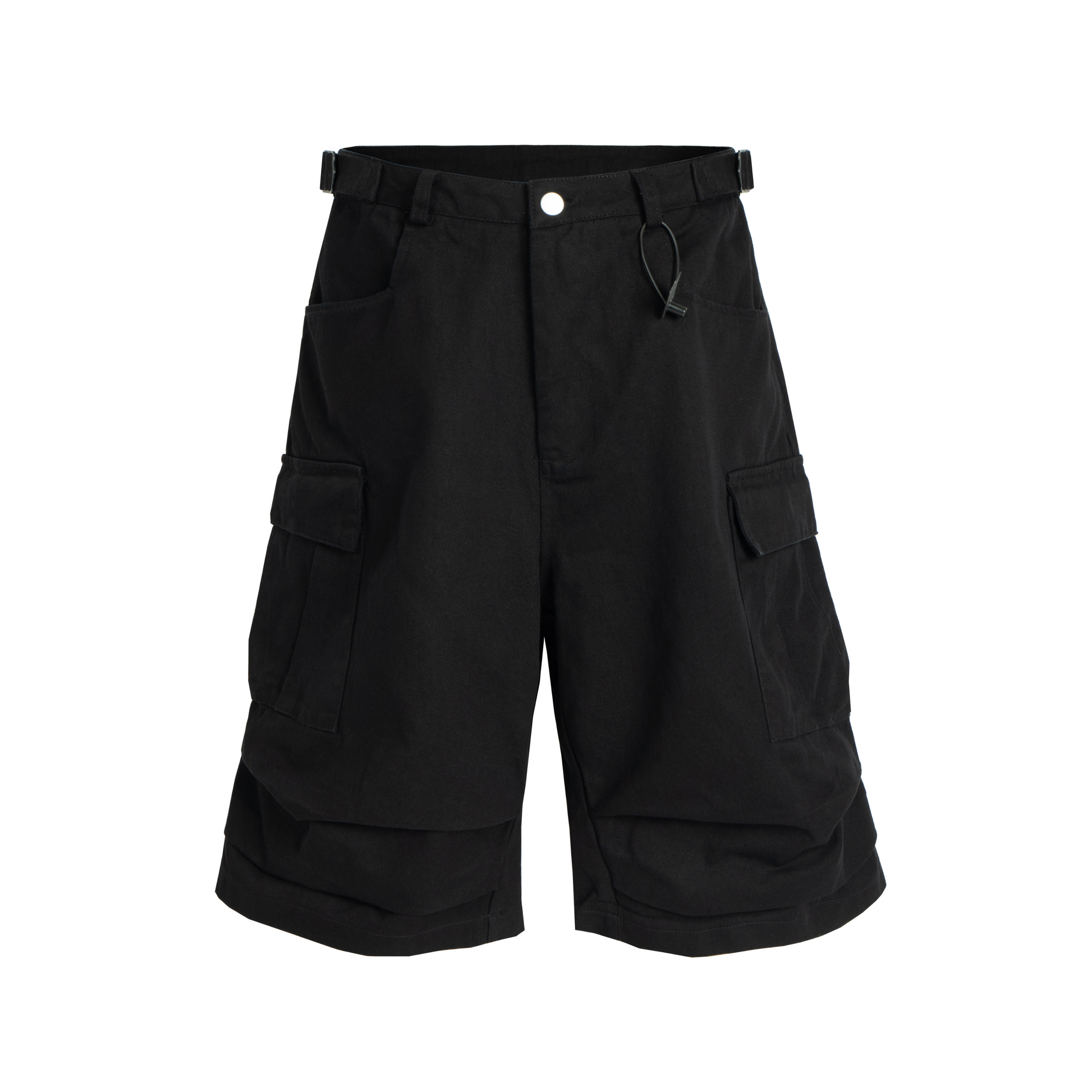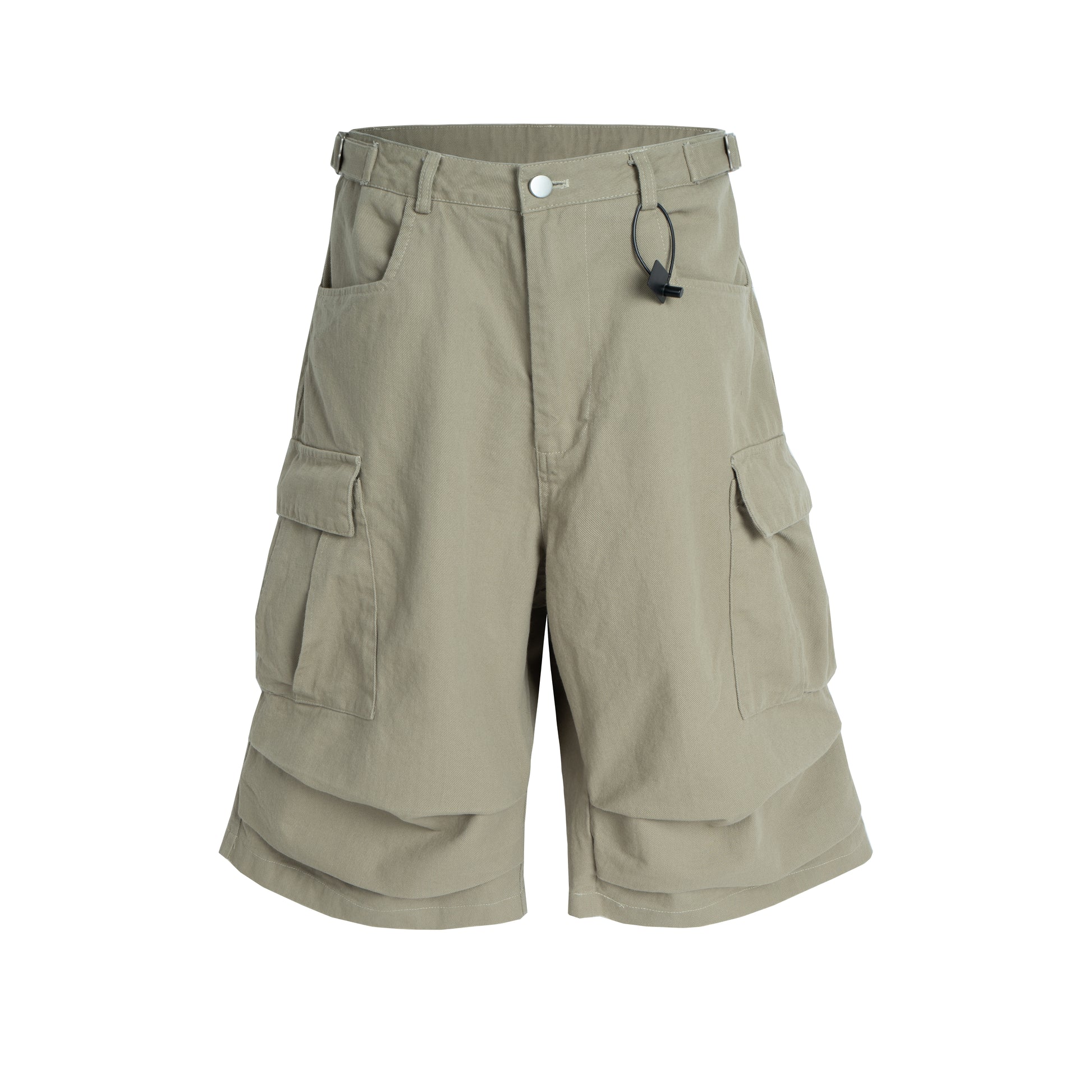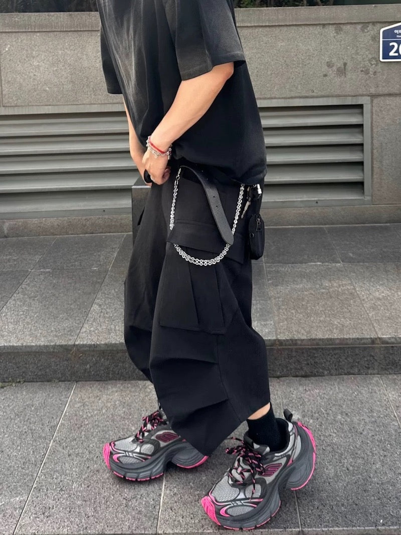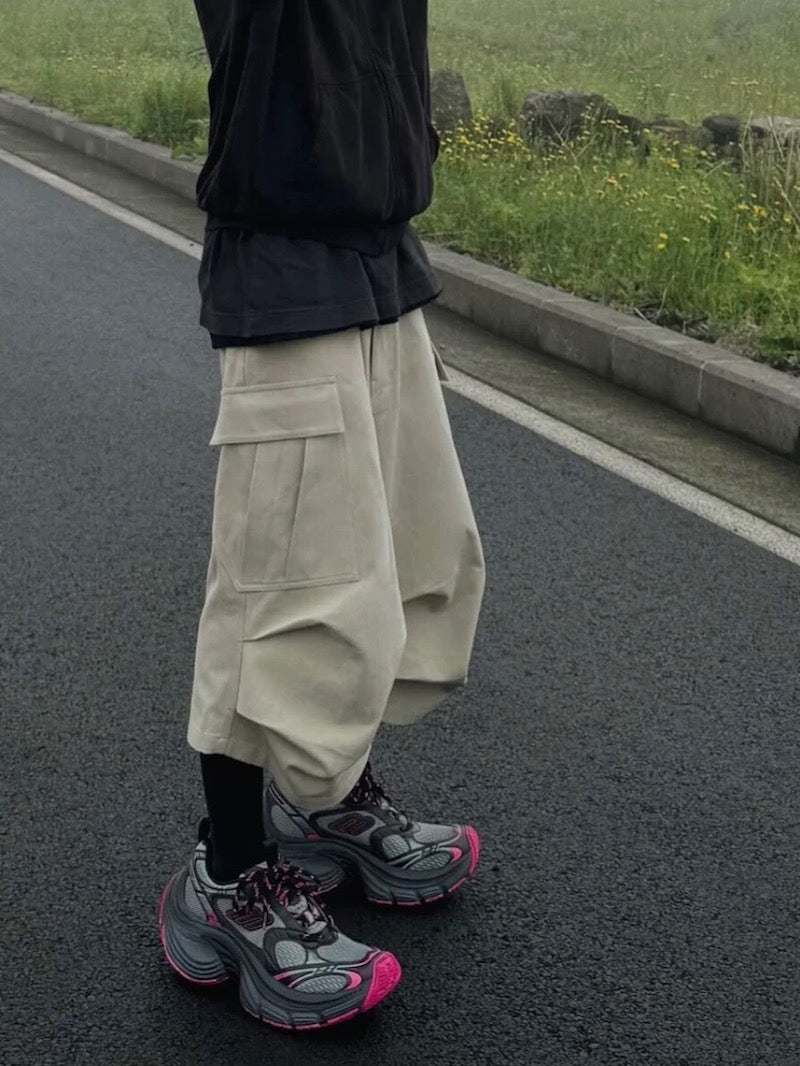 Oversized Knee-Length Pleated Multi-Pocket Pants