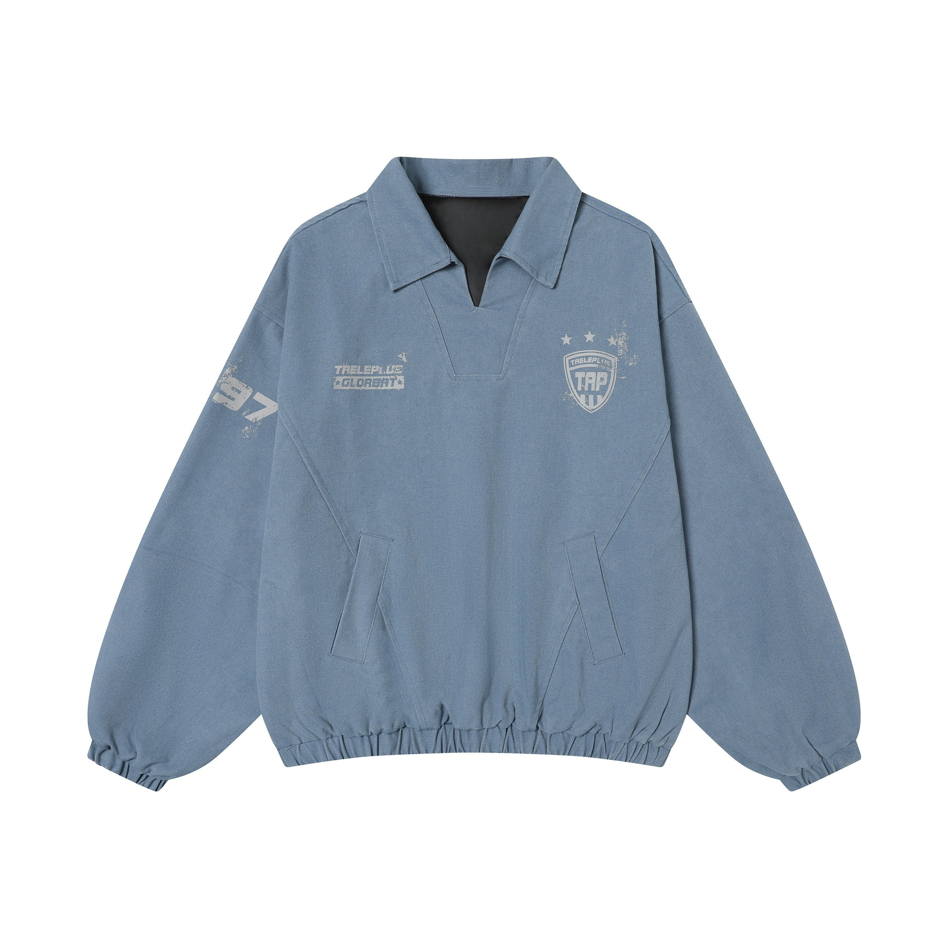 The Omirad Vintage Collar Pullover Sweatshirt features a classic collared neckline combined with distressed varsity-style graphics for a bold retro athletic vibe. Designed to elevate your everyday street look, this pullover blends laid-back comfort with standout collegiate energy for effortless styling.