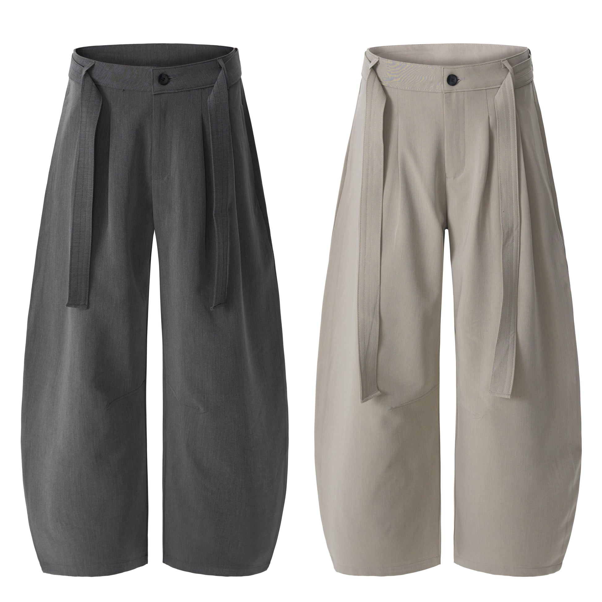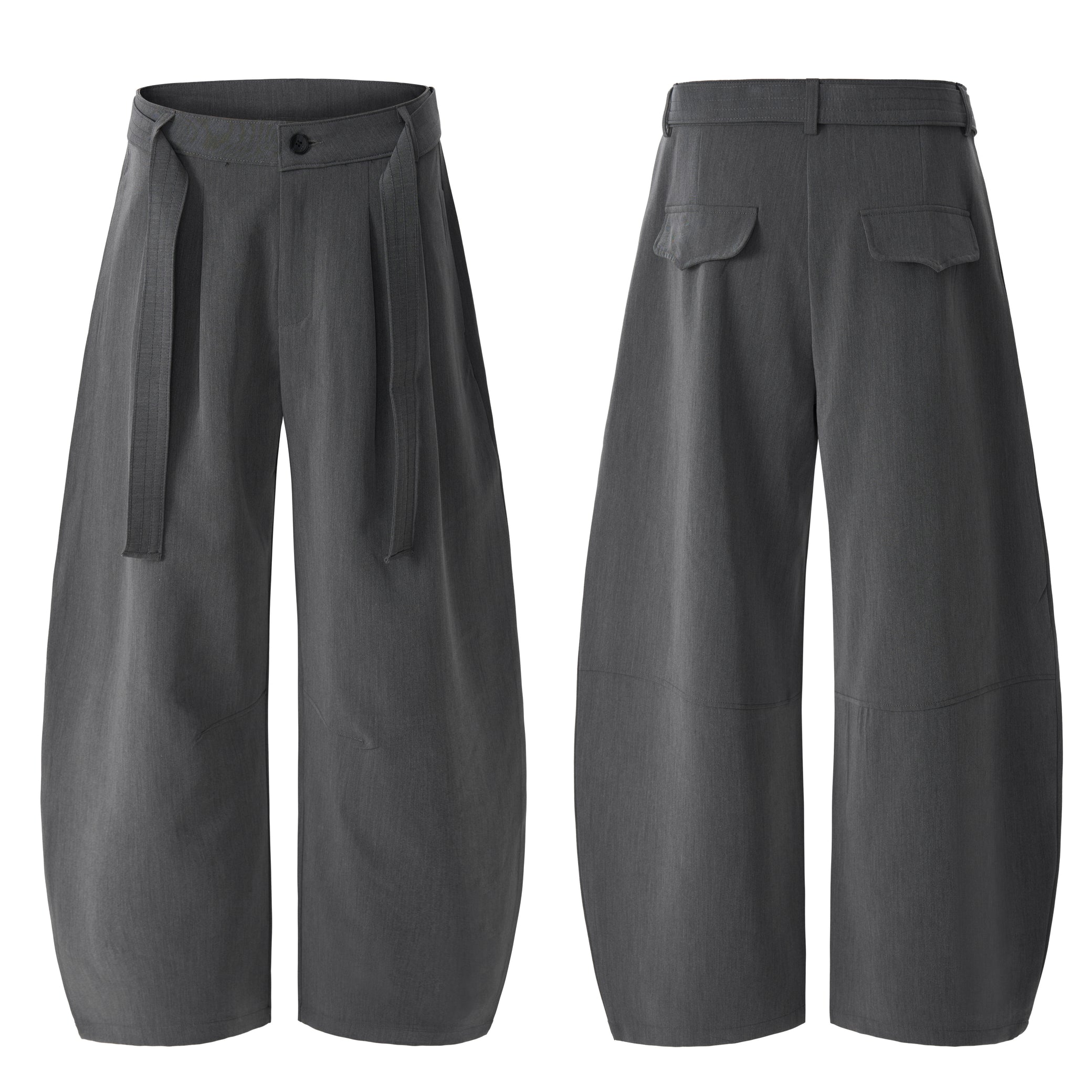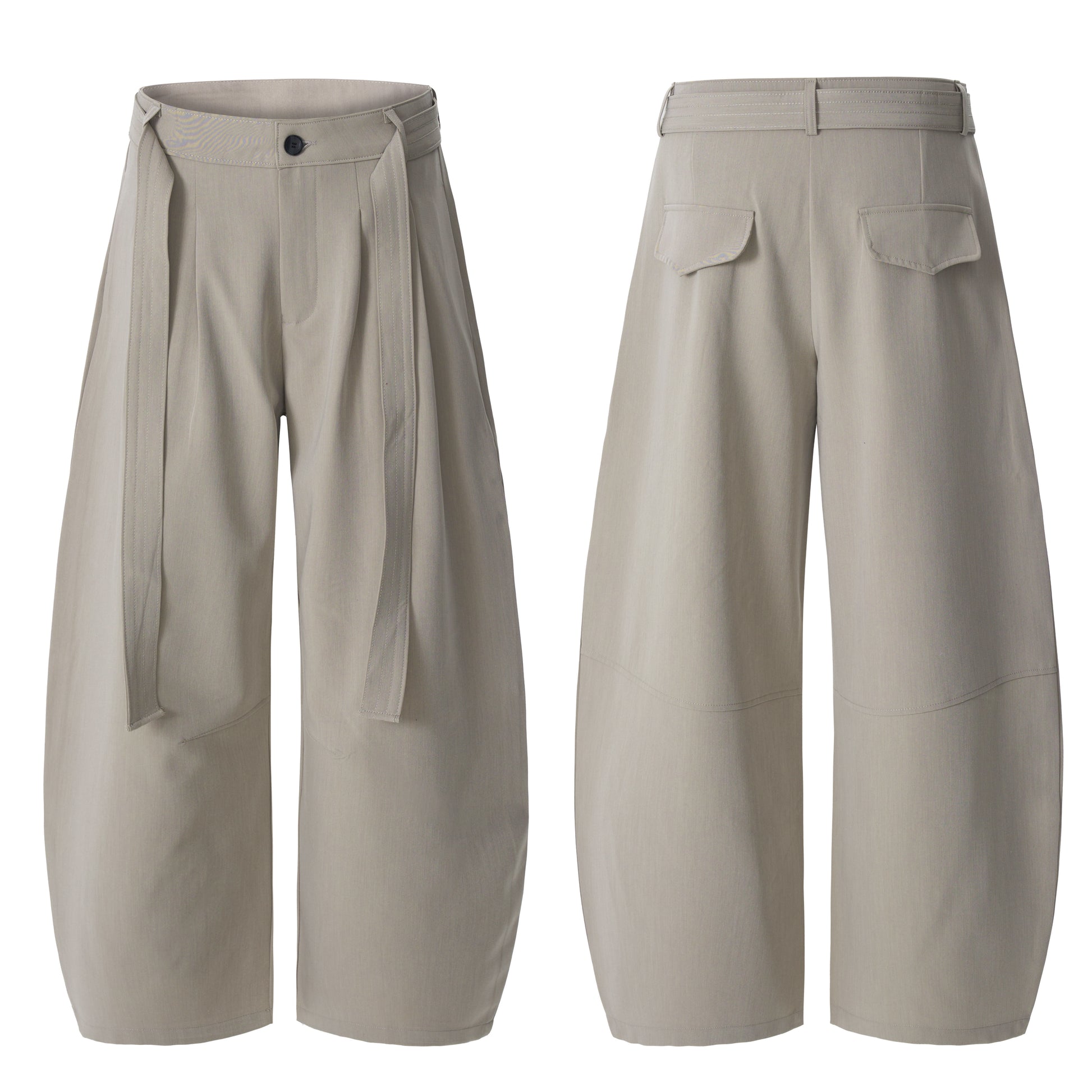 The Omirad Structured Belted Barrel Pants redefine modern streetwear minimalism. Featuring a unique barrel silhouette with clean front pleats and integrated side straps, these pants combine architectural structure with a relaxed flow. Made from a premium blended fabric, they offer both crisp shape and comfortable stretch—ideal for pairing with oversized tops or cropped jackets.