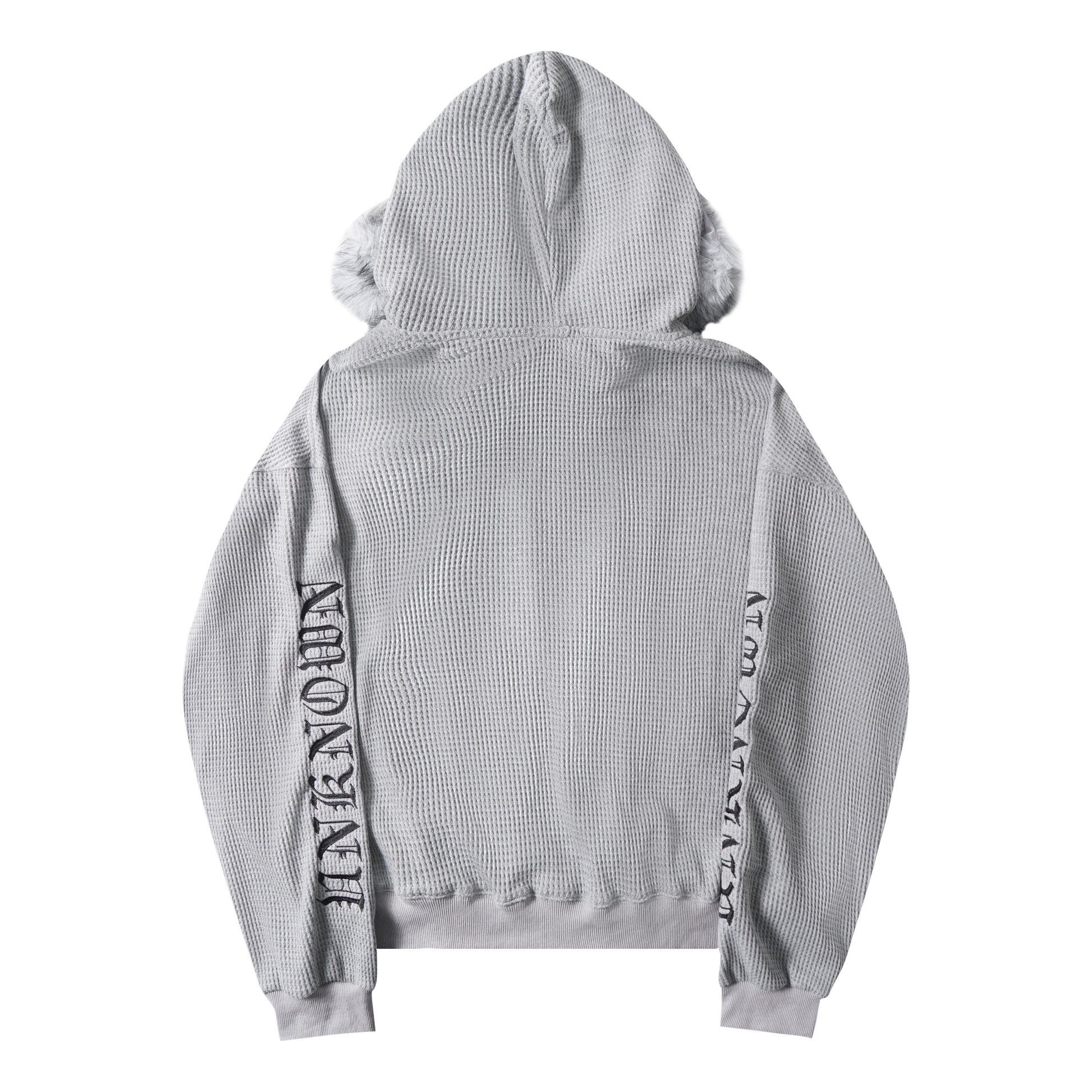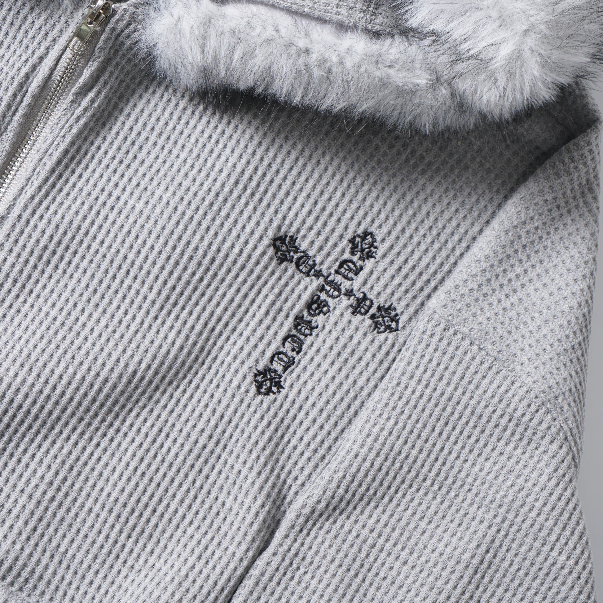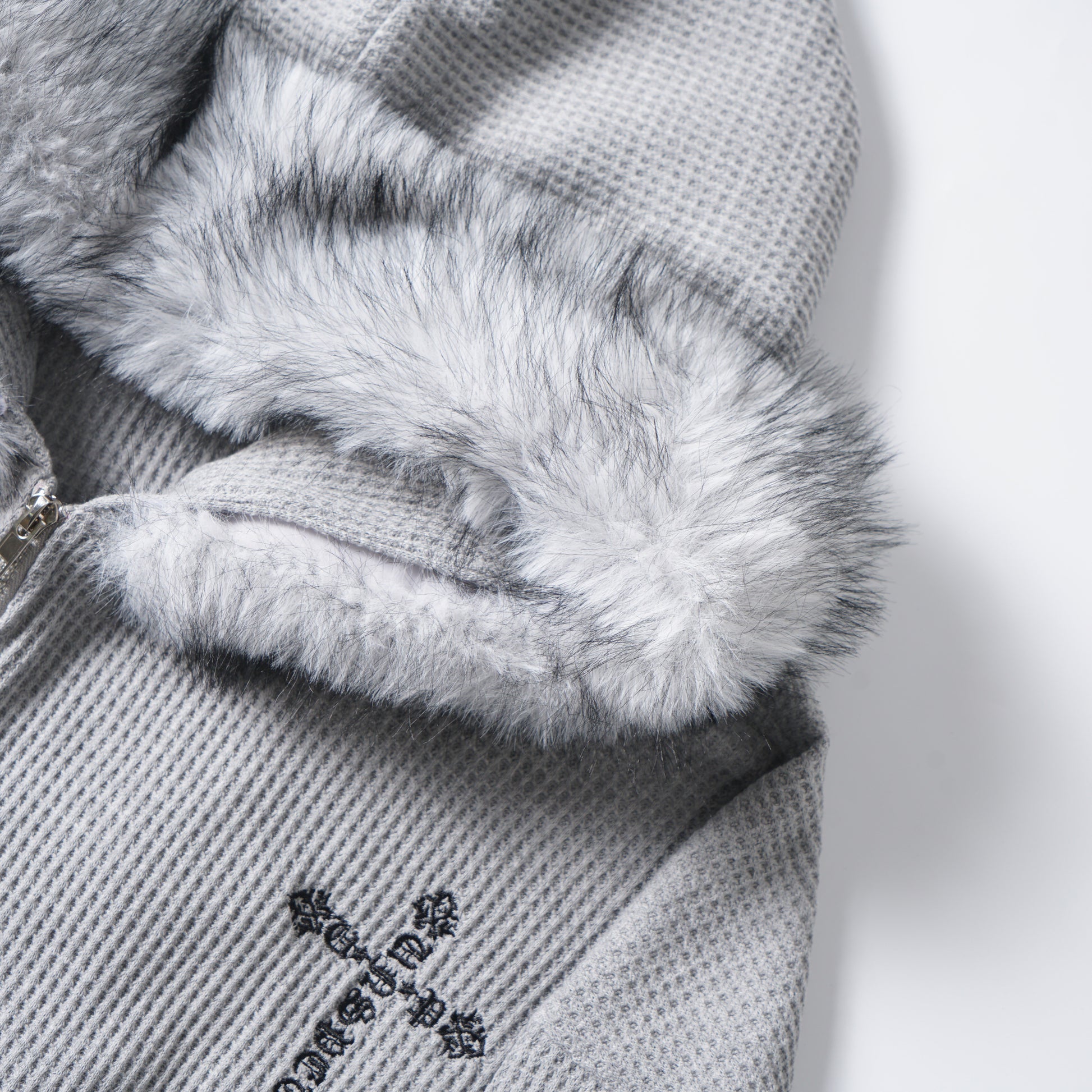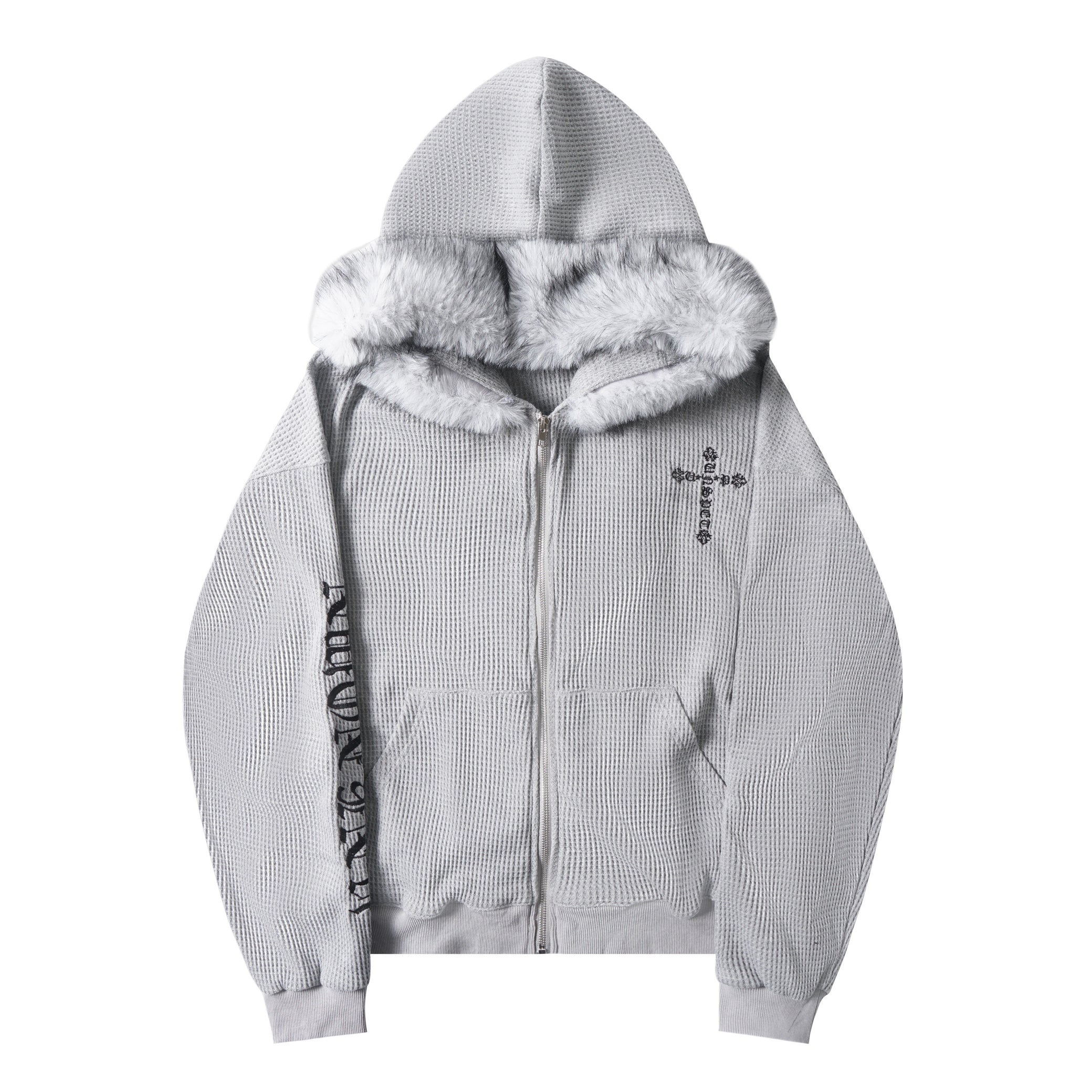 Retro American Faux Fur Collar Embroidered Zip Hoodie