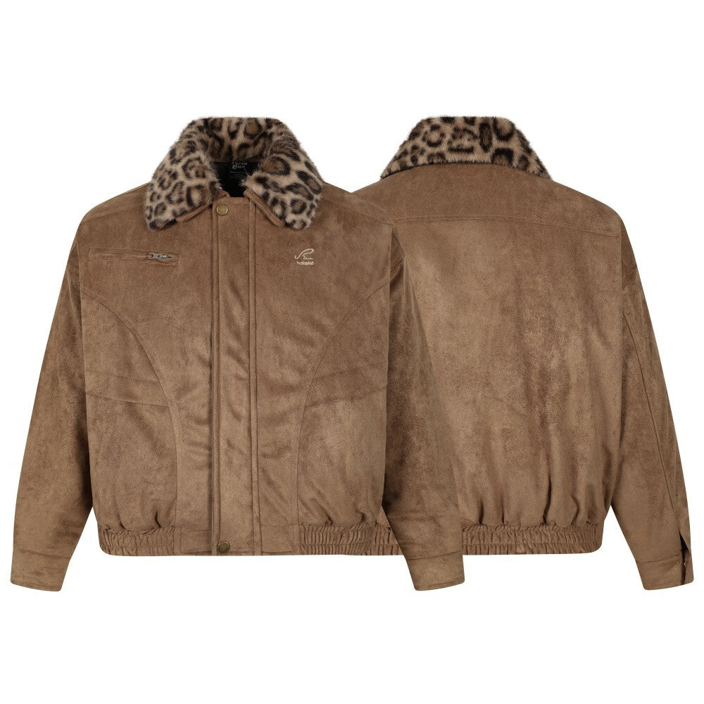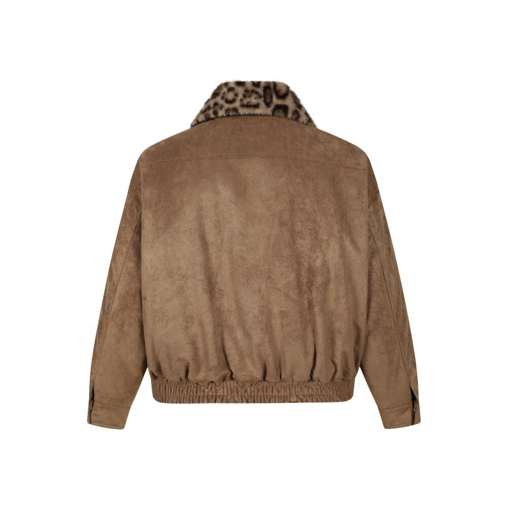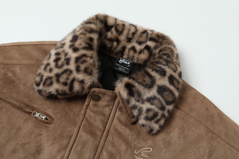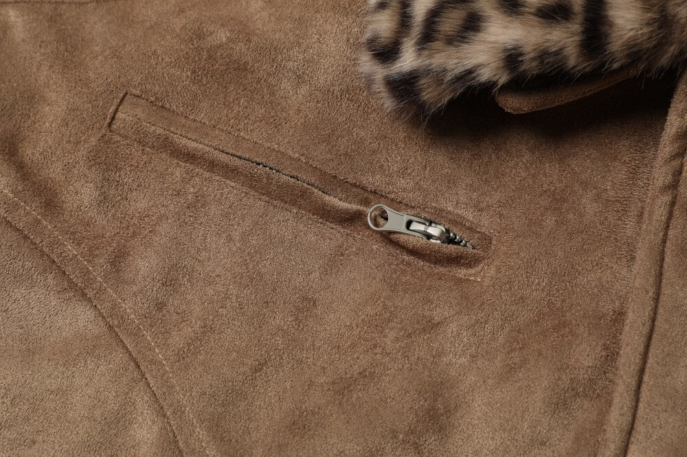 Retro American Faux Leopard Detachable Collar Quilted Jacket