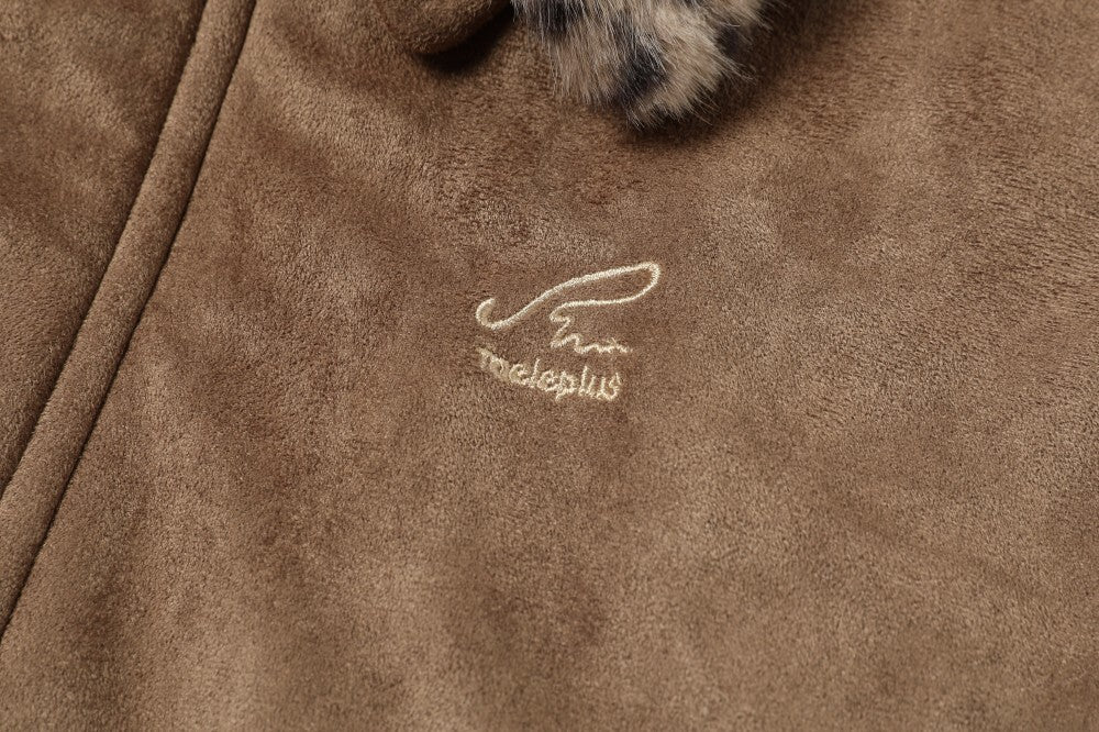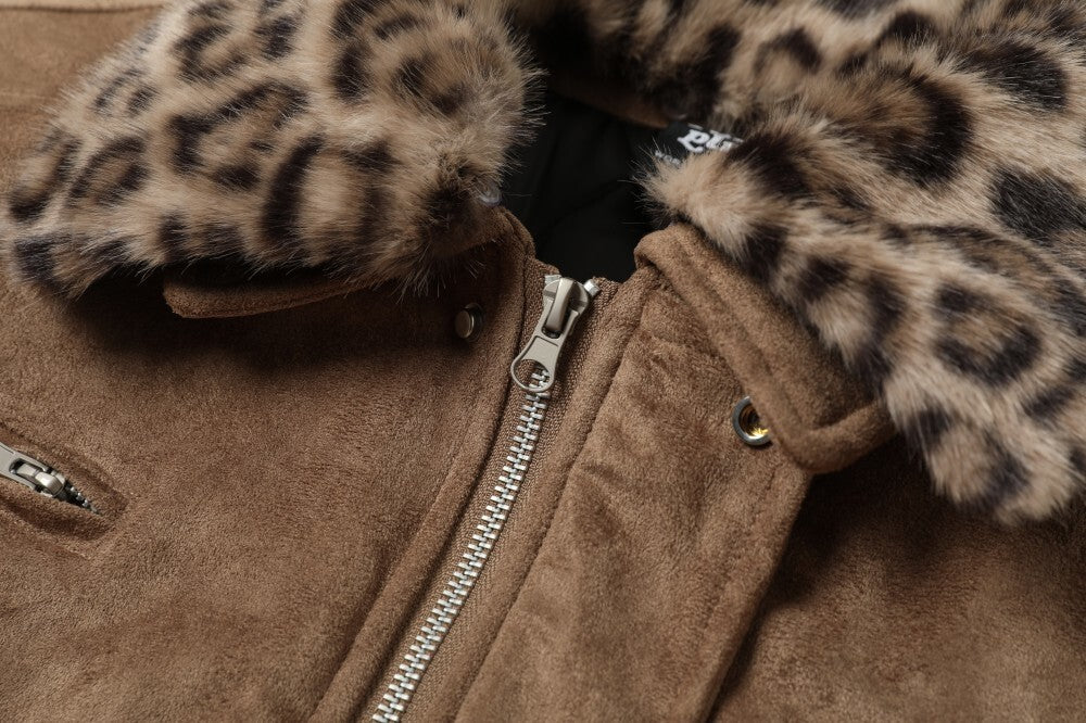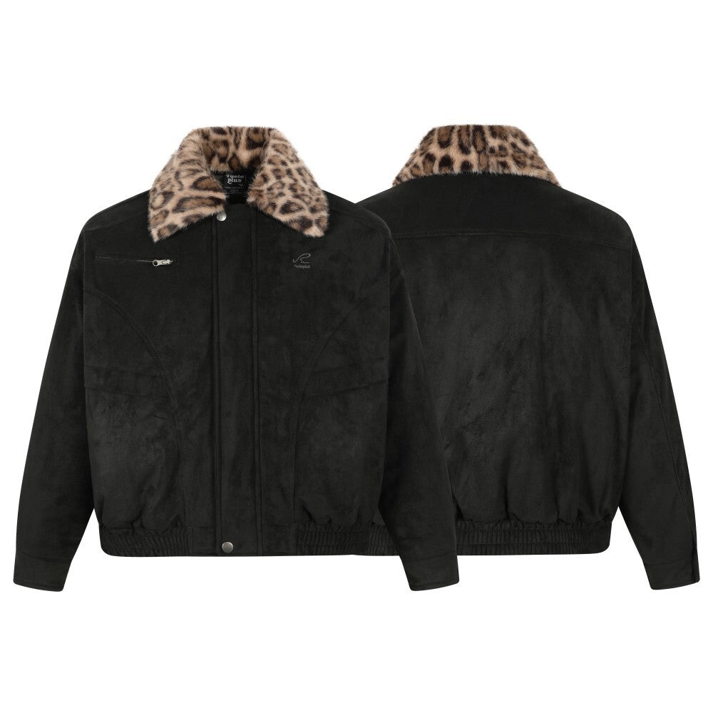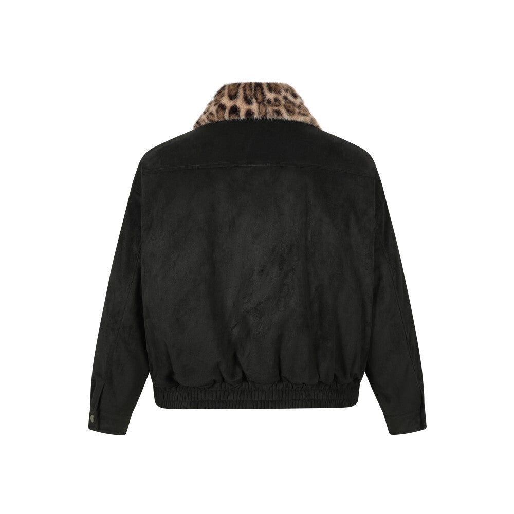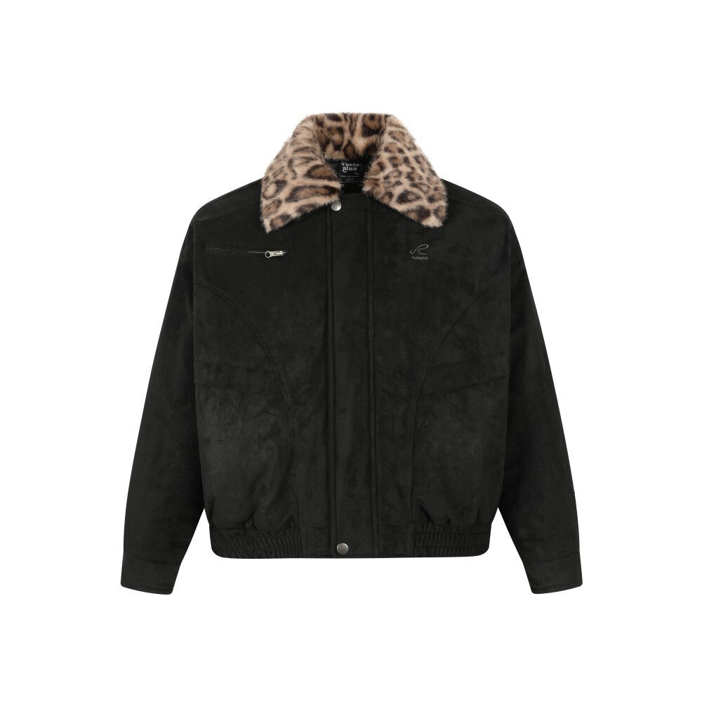 Retro American Faux Leopard Detachable Collar Quilted Jacket