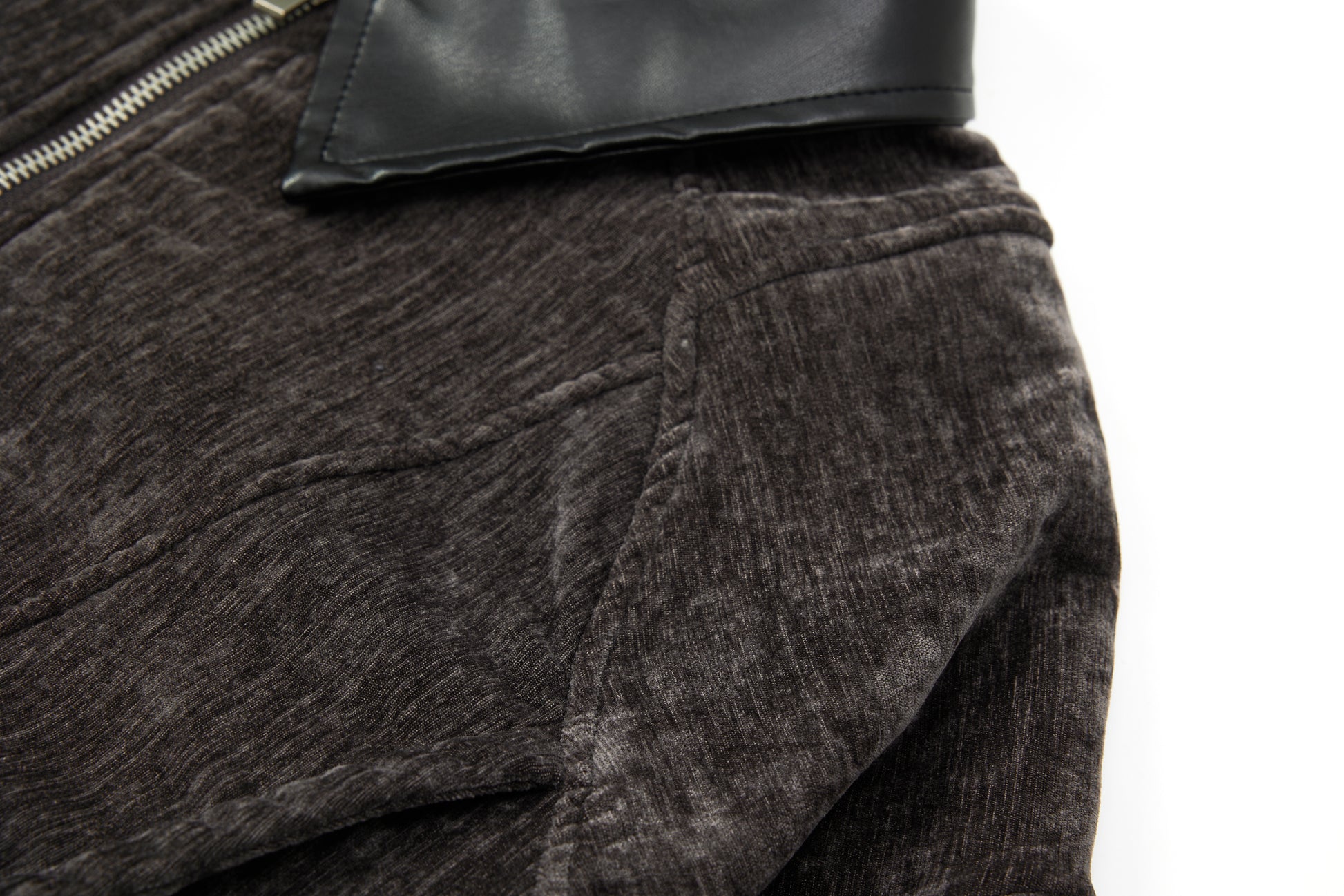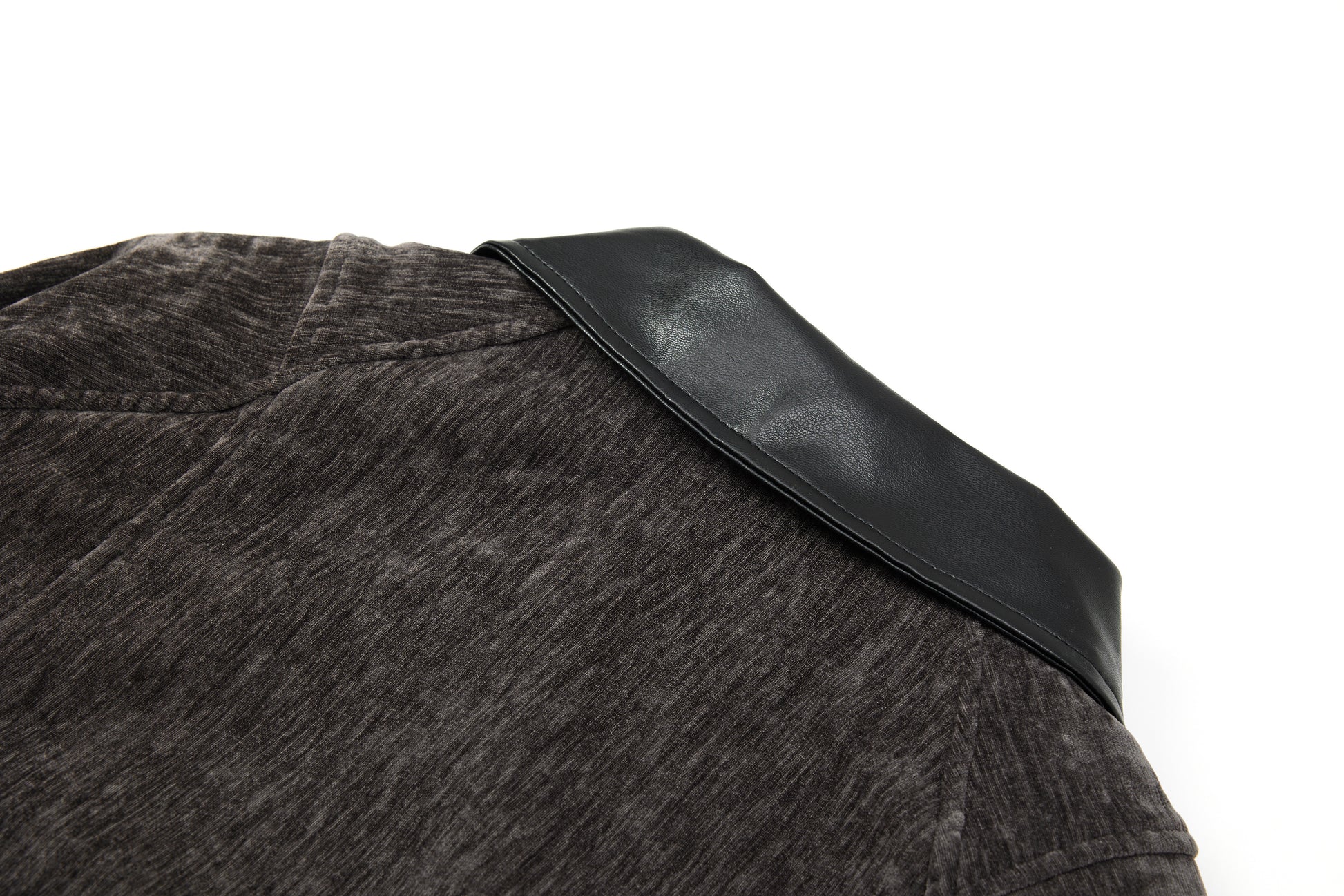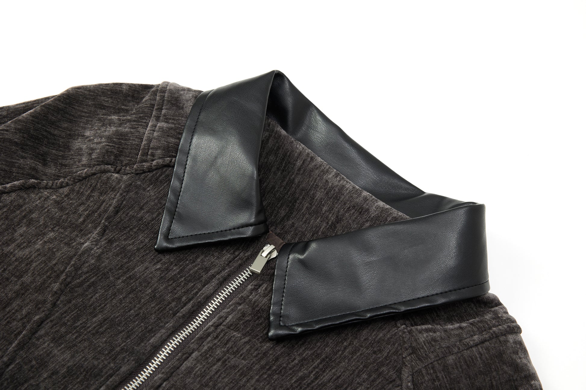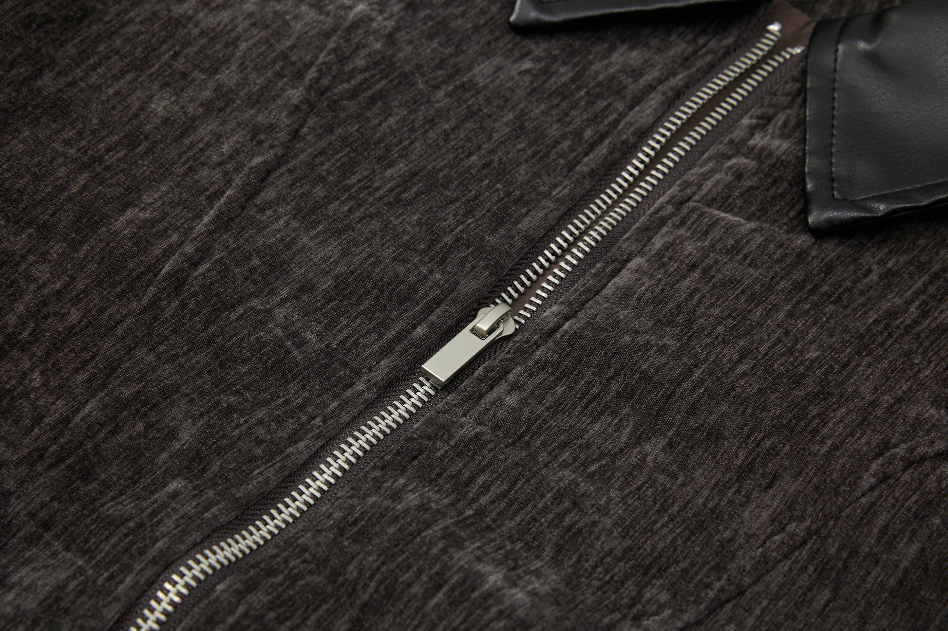 Retro American Leather-Collar Color-Block Workwear Jacket