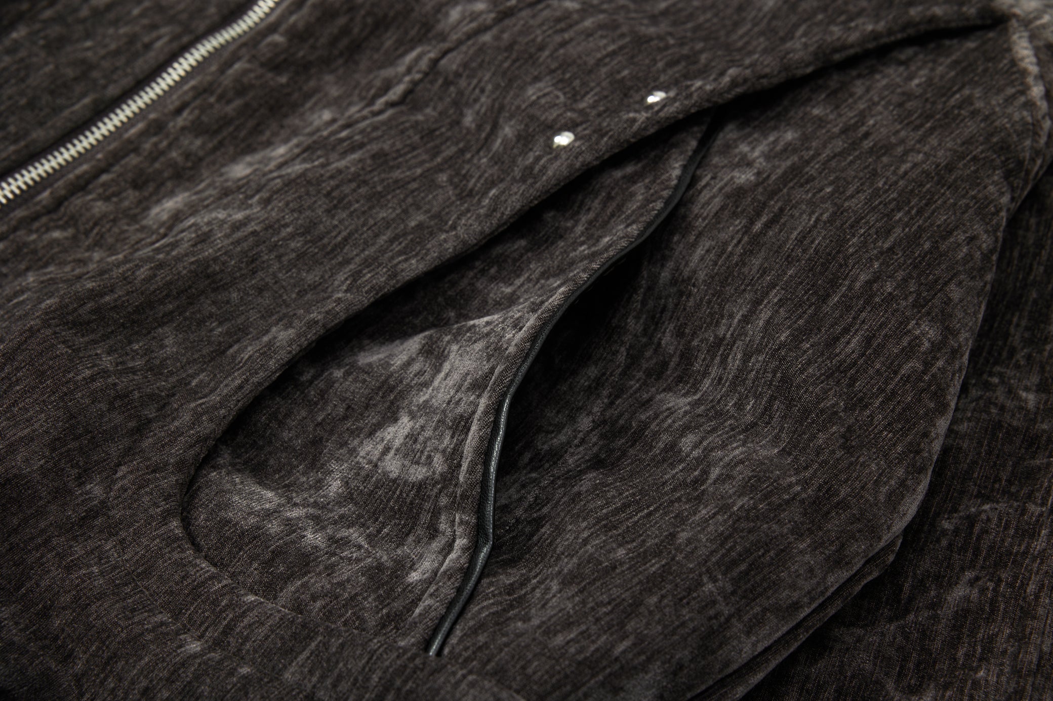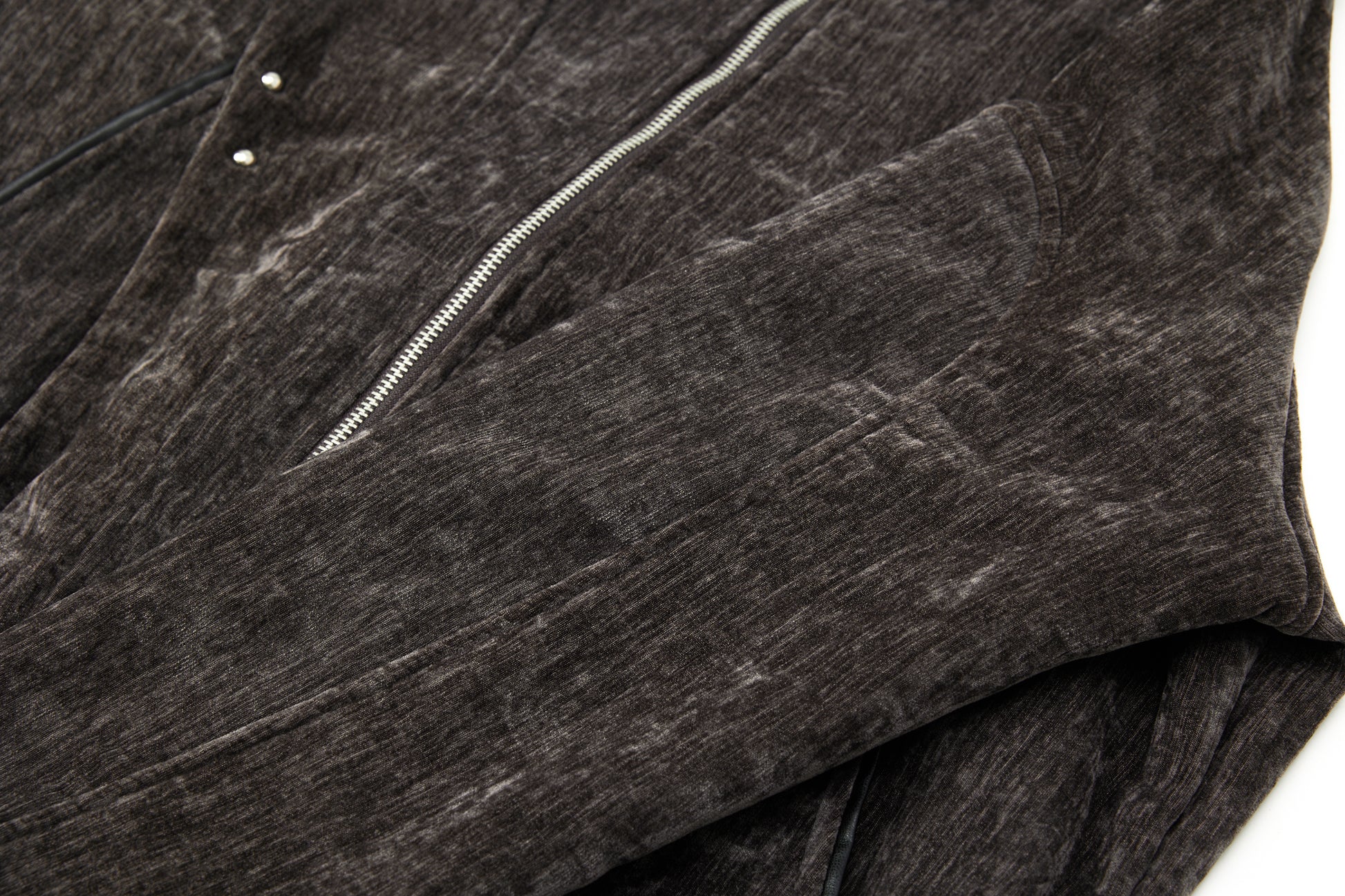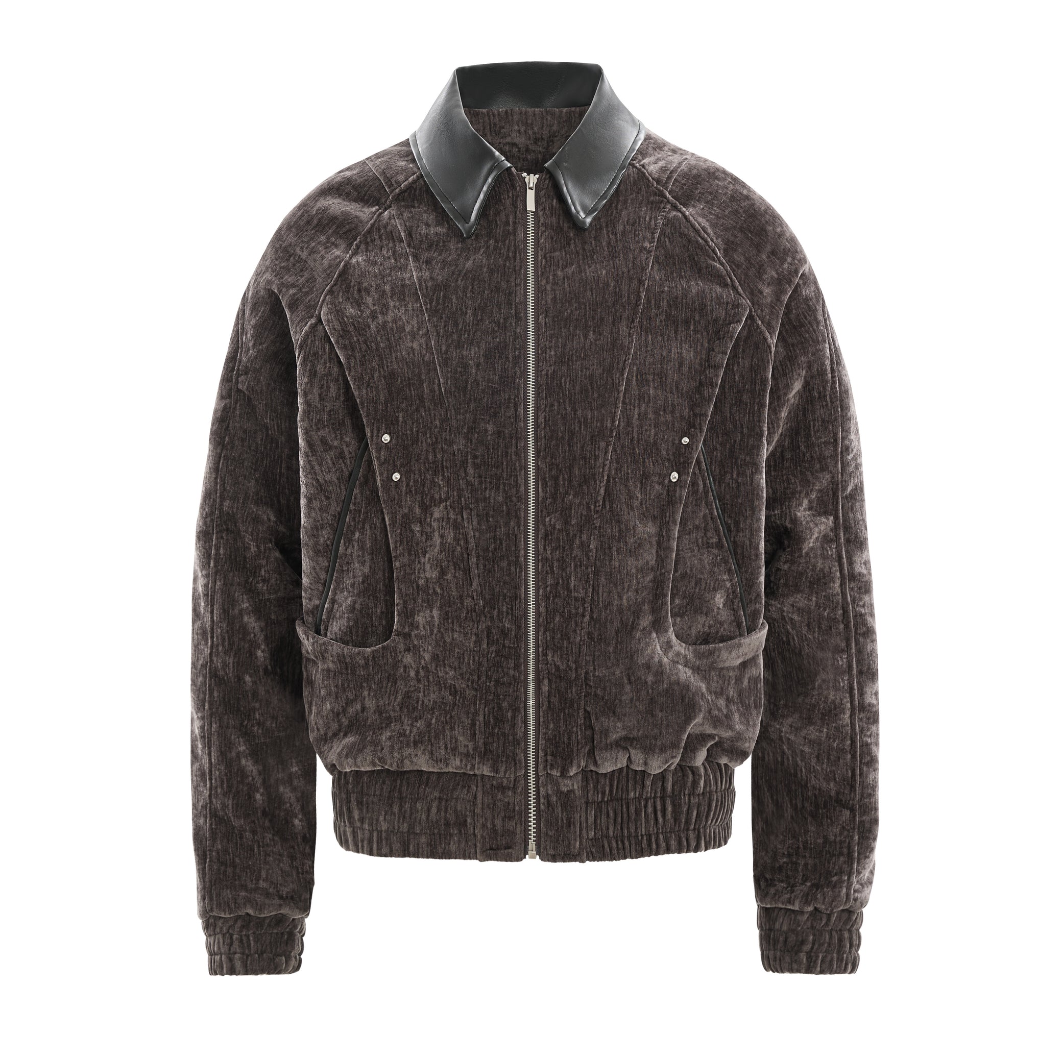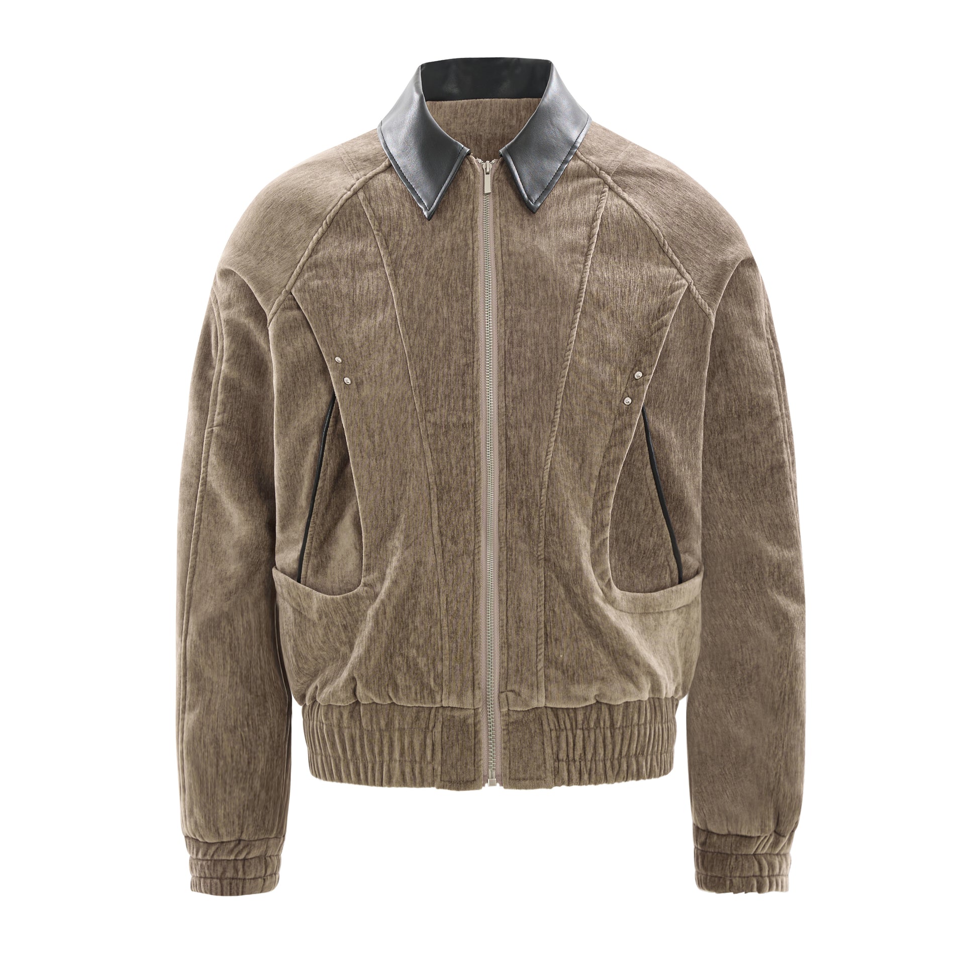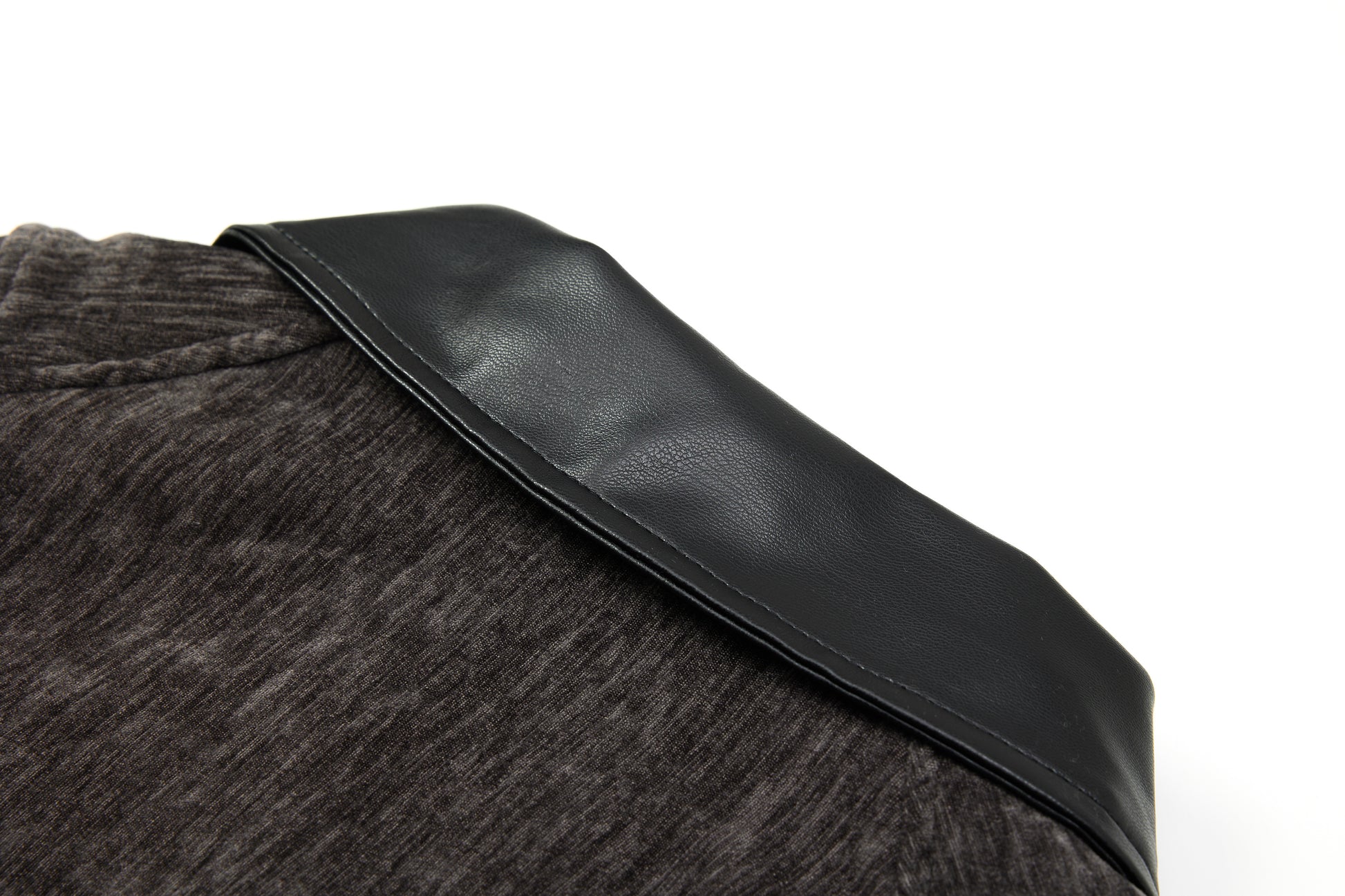 Retro American Leather-Collar Color-Block Workwear Jacket