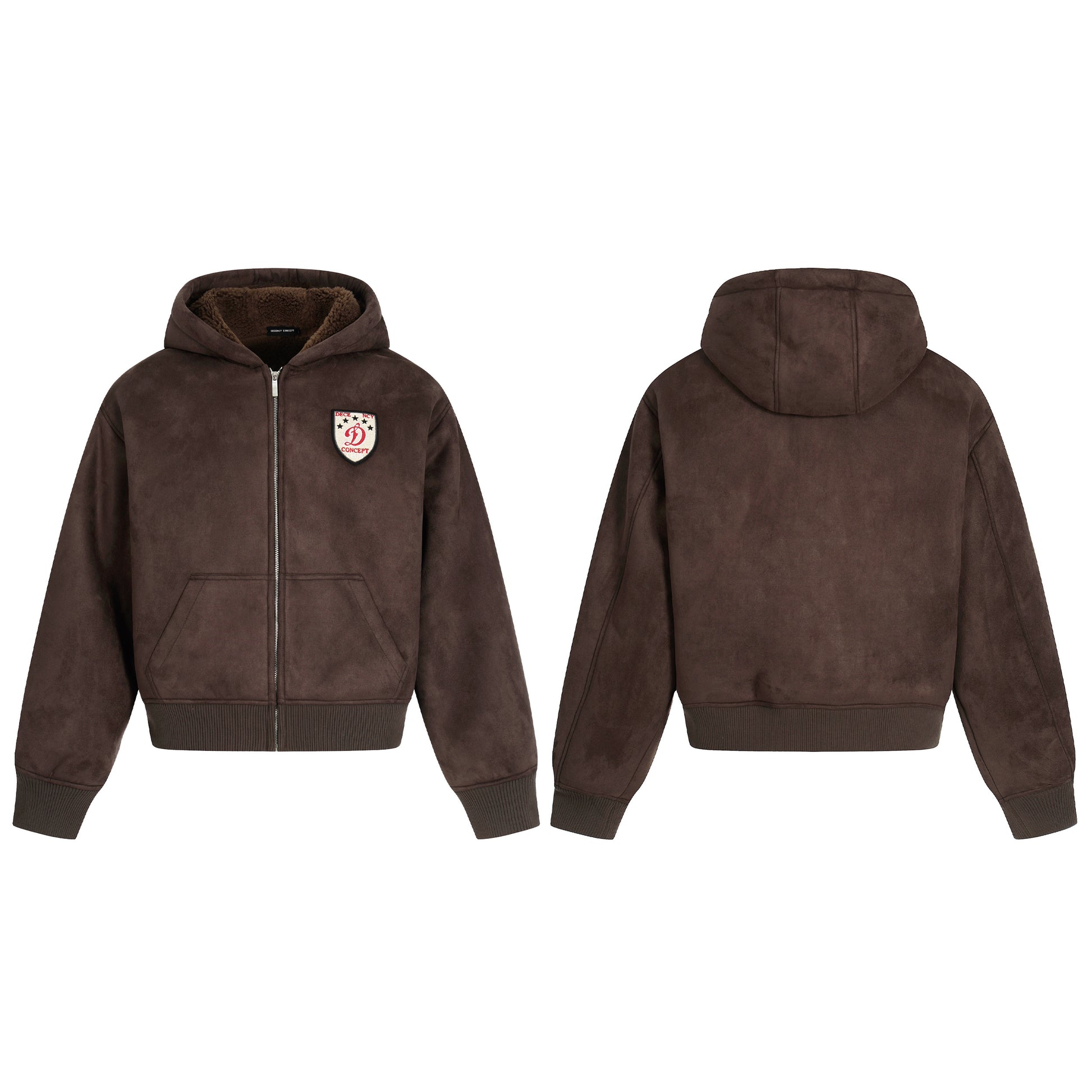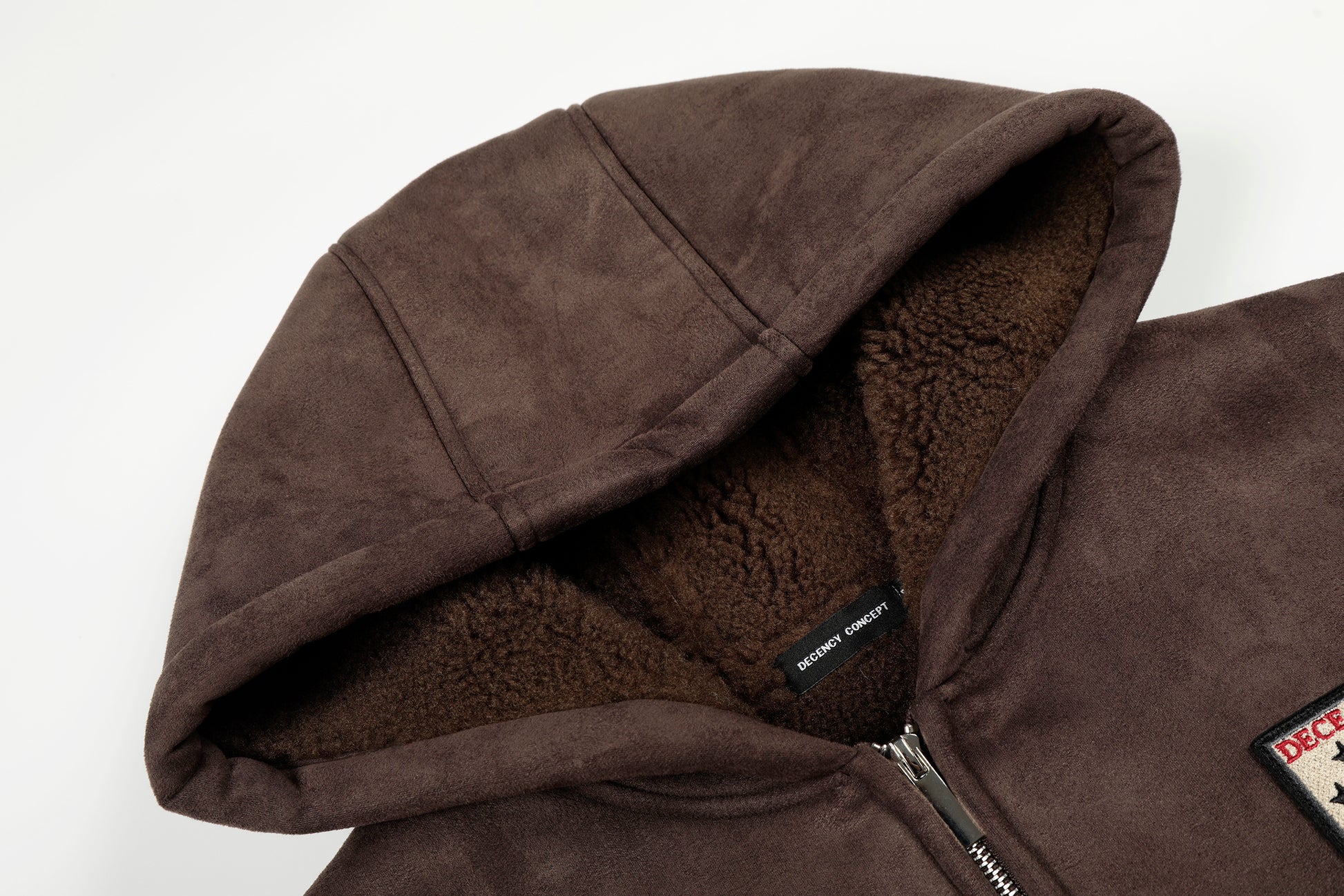 Vintage-Inspired Fleece Interior Zip-Up Hooded Jacket