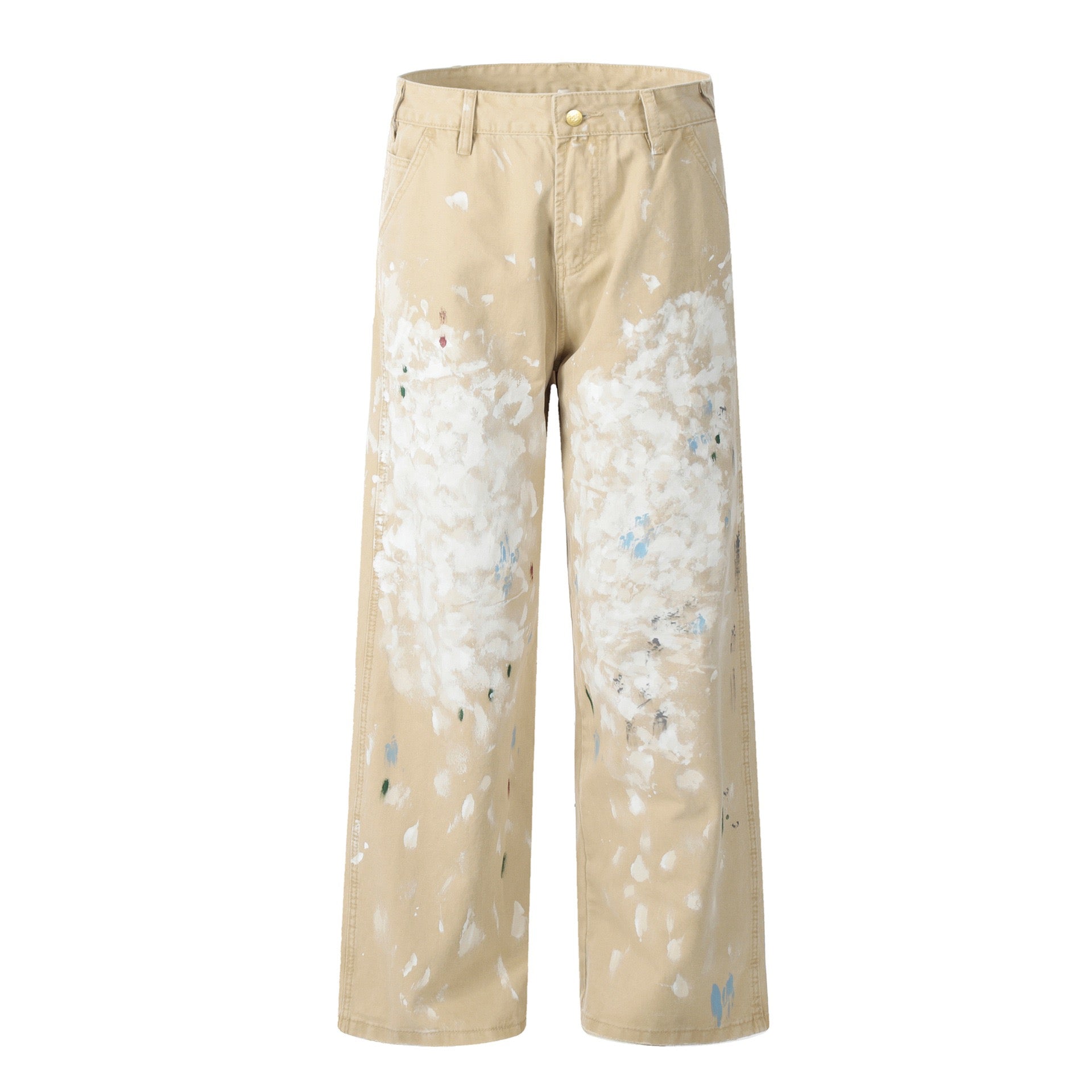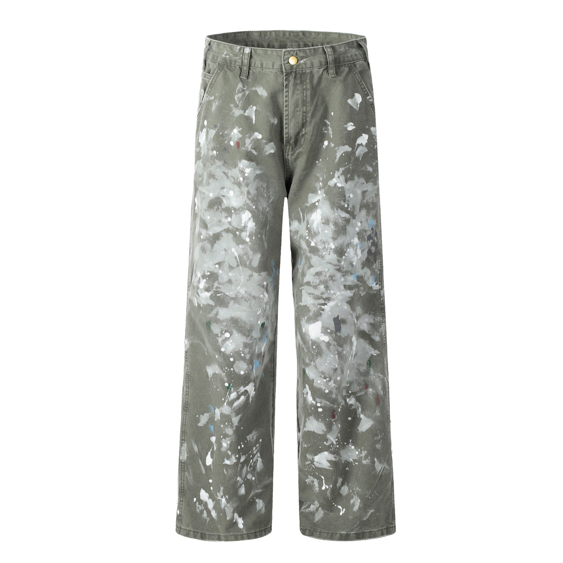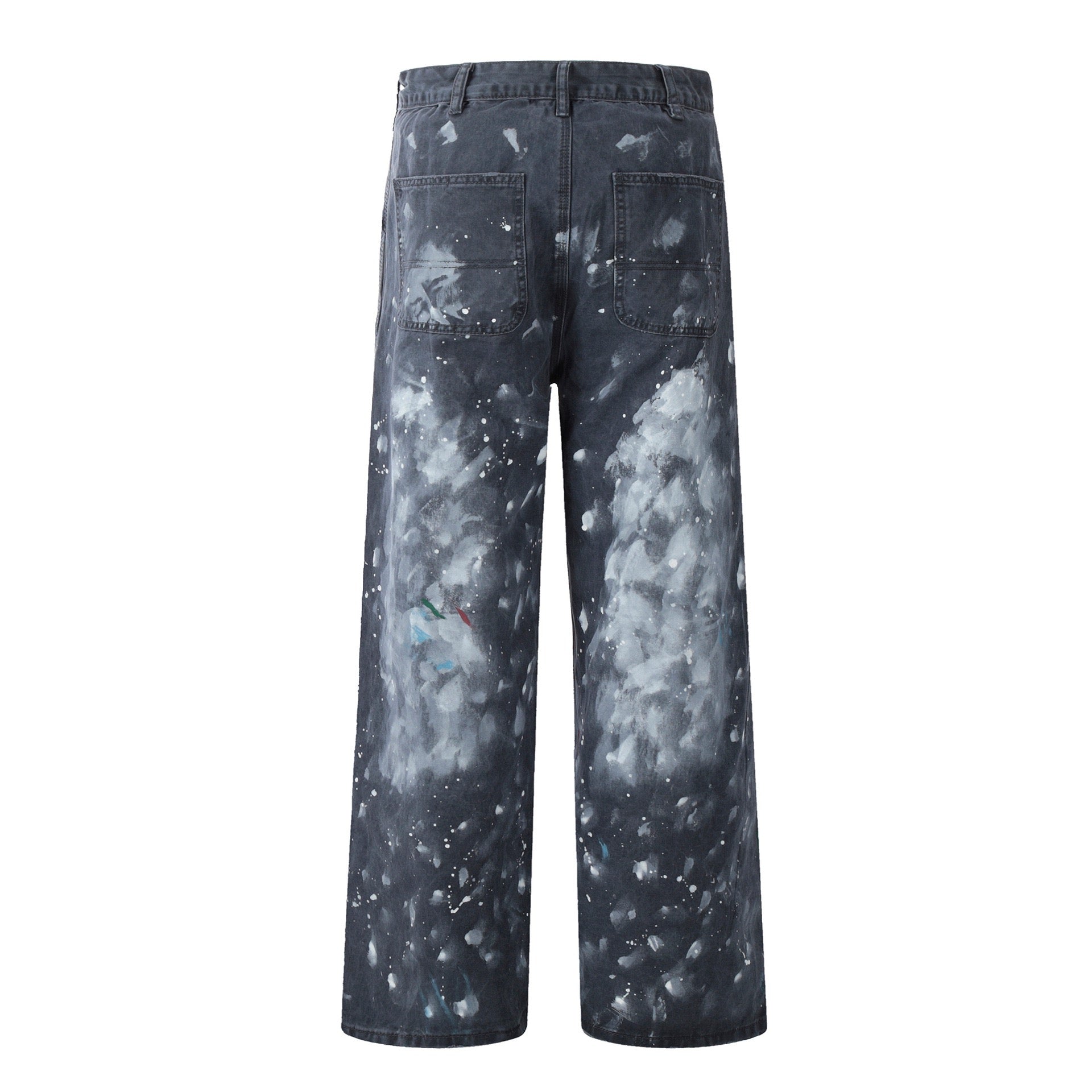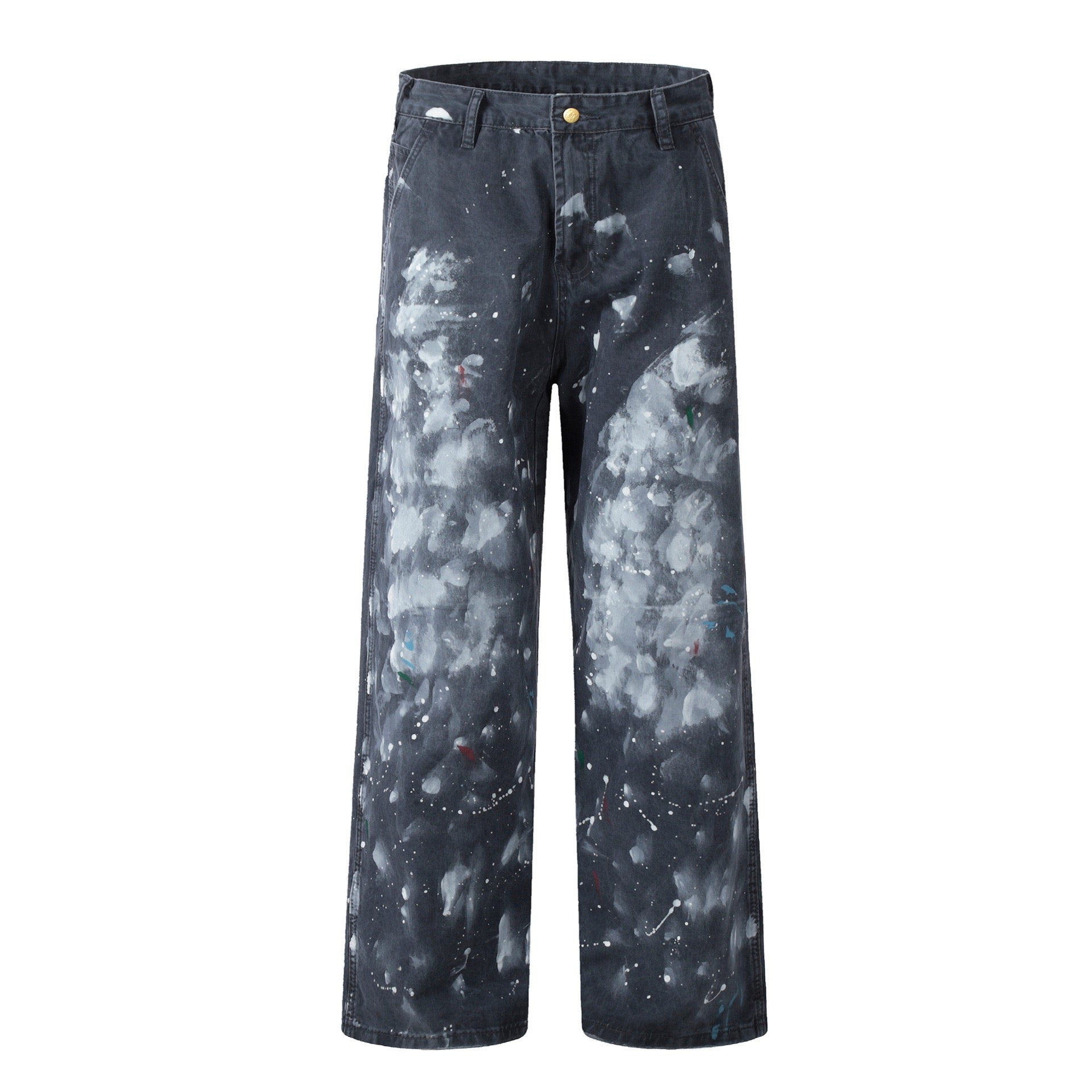 Retro Loose Fit Straight-Leg Splattered Jeans