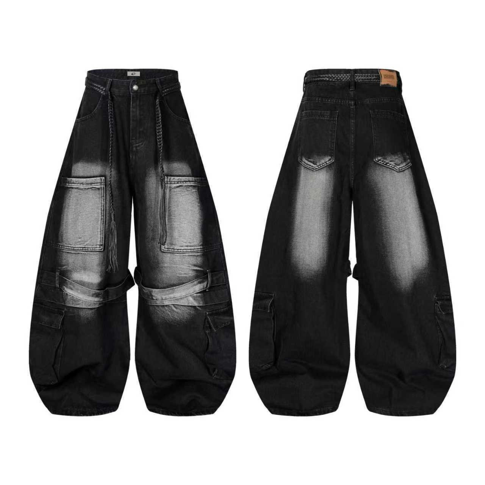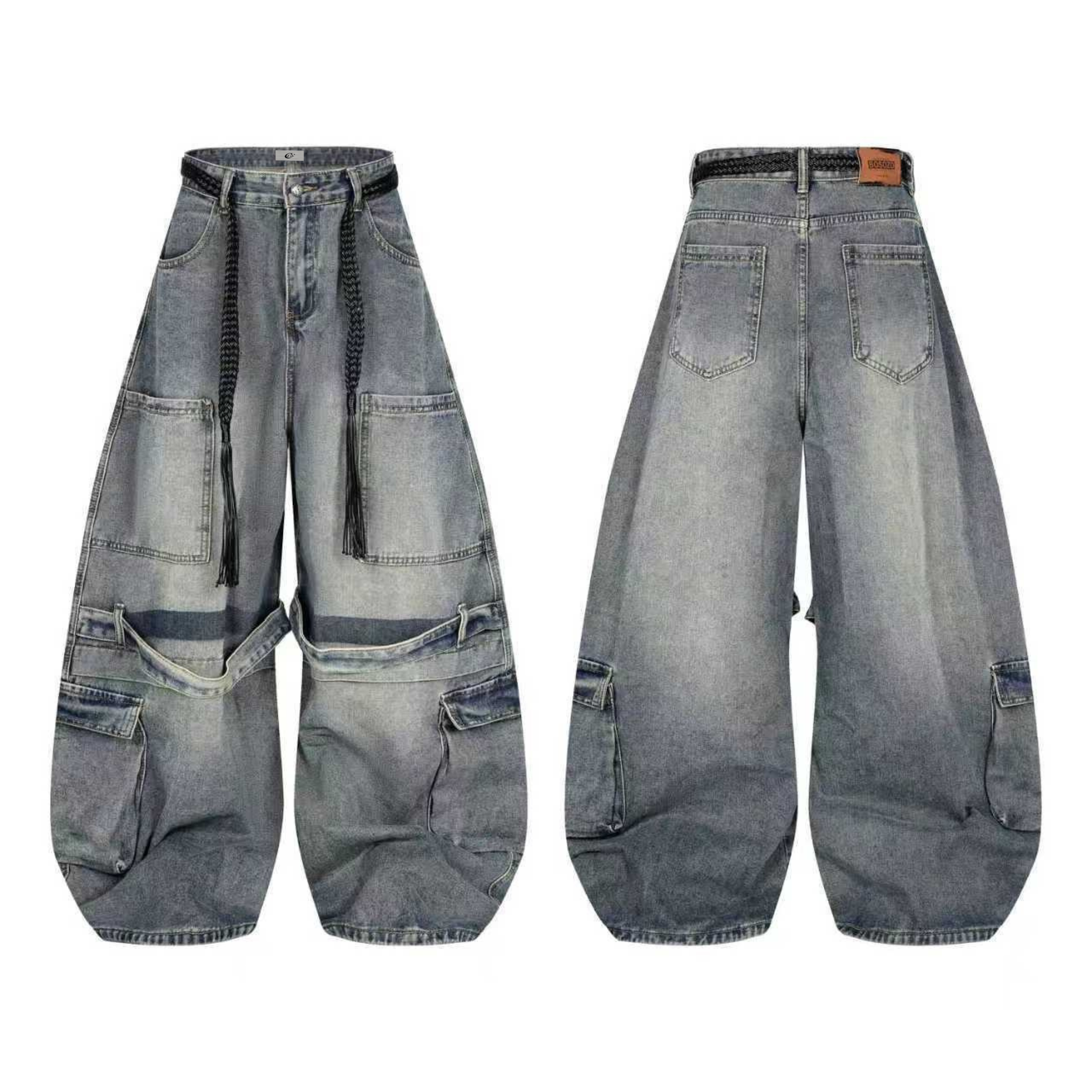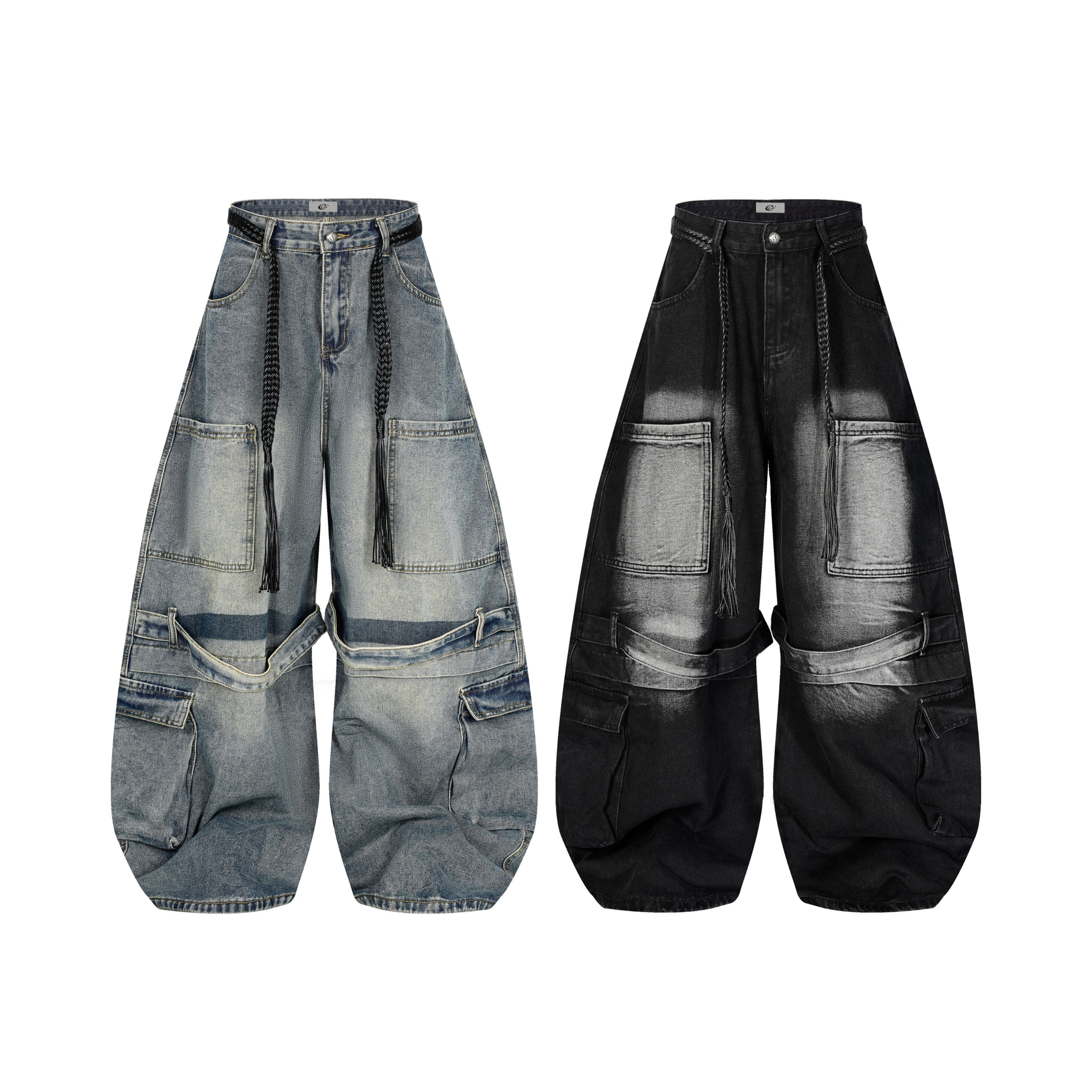 The Omirad Layered Cargo Arc Jeans redefine streetwear proportions with a bold curved silhouette and double-layer pocket design. Featuring exaggerated volume, contrast fade wash, and detachable braided drawstrings, these jeans capture an avant-garde, post-Y2K aesthetic. Perfect for creating standout fits that blend structure, detail, and rebellion.