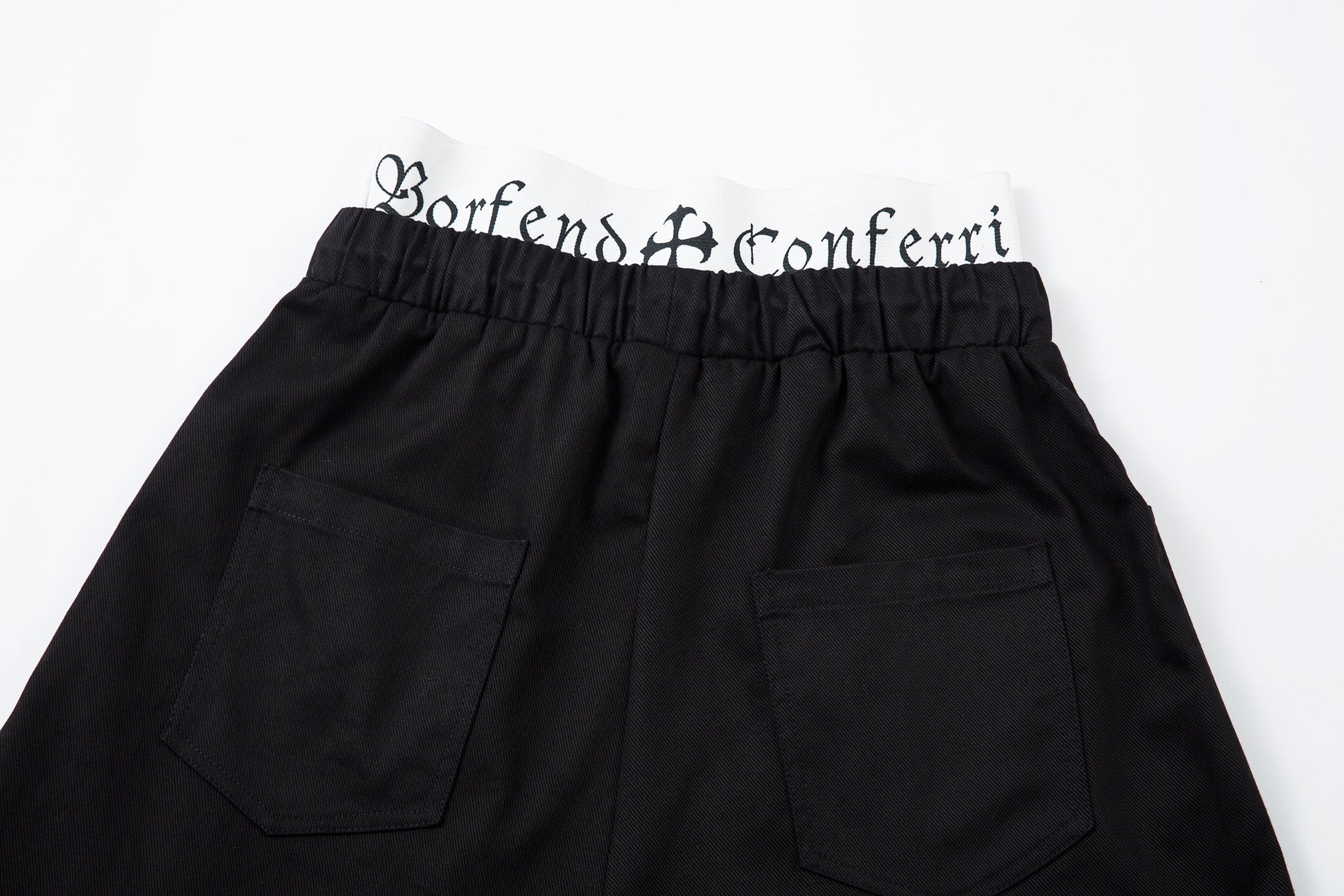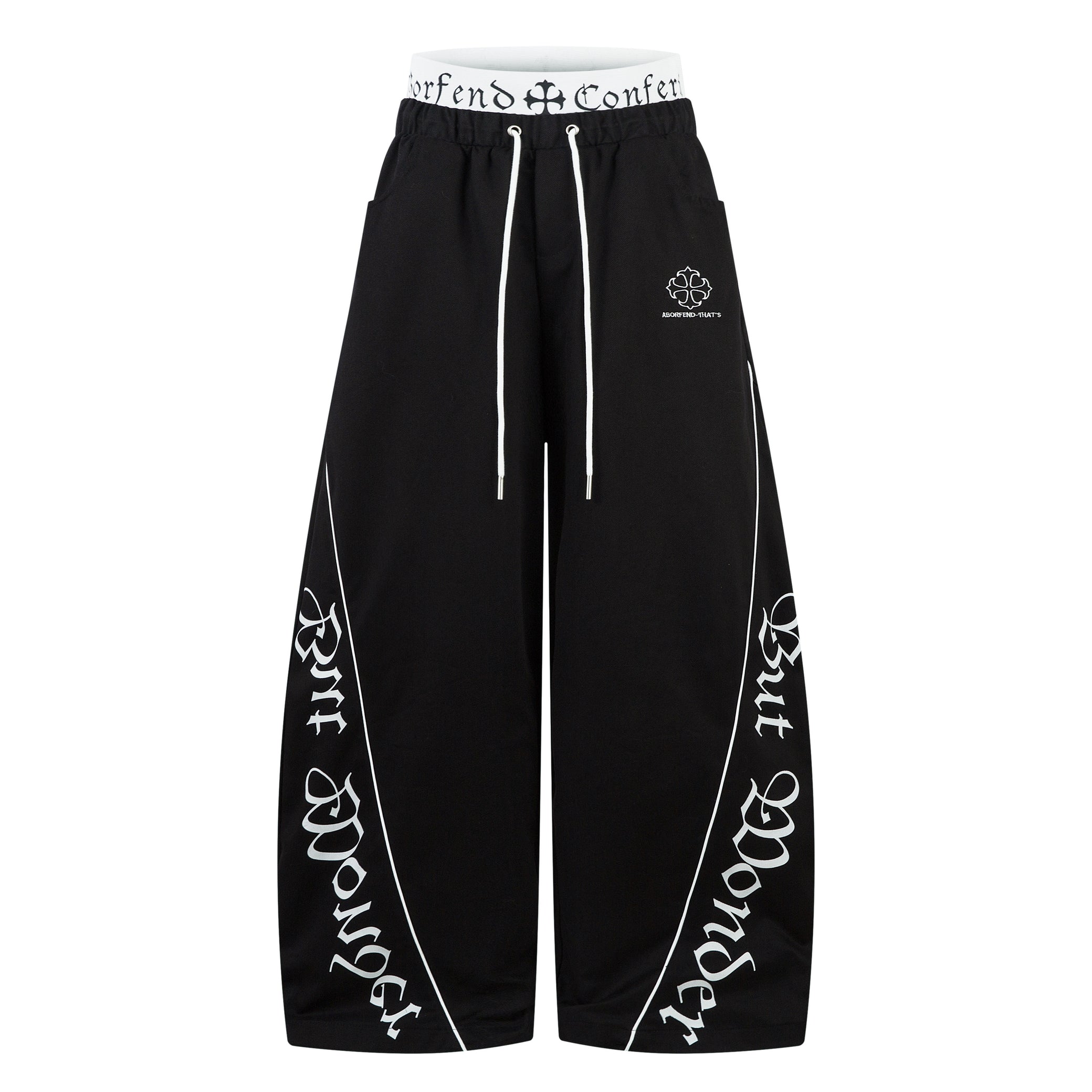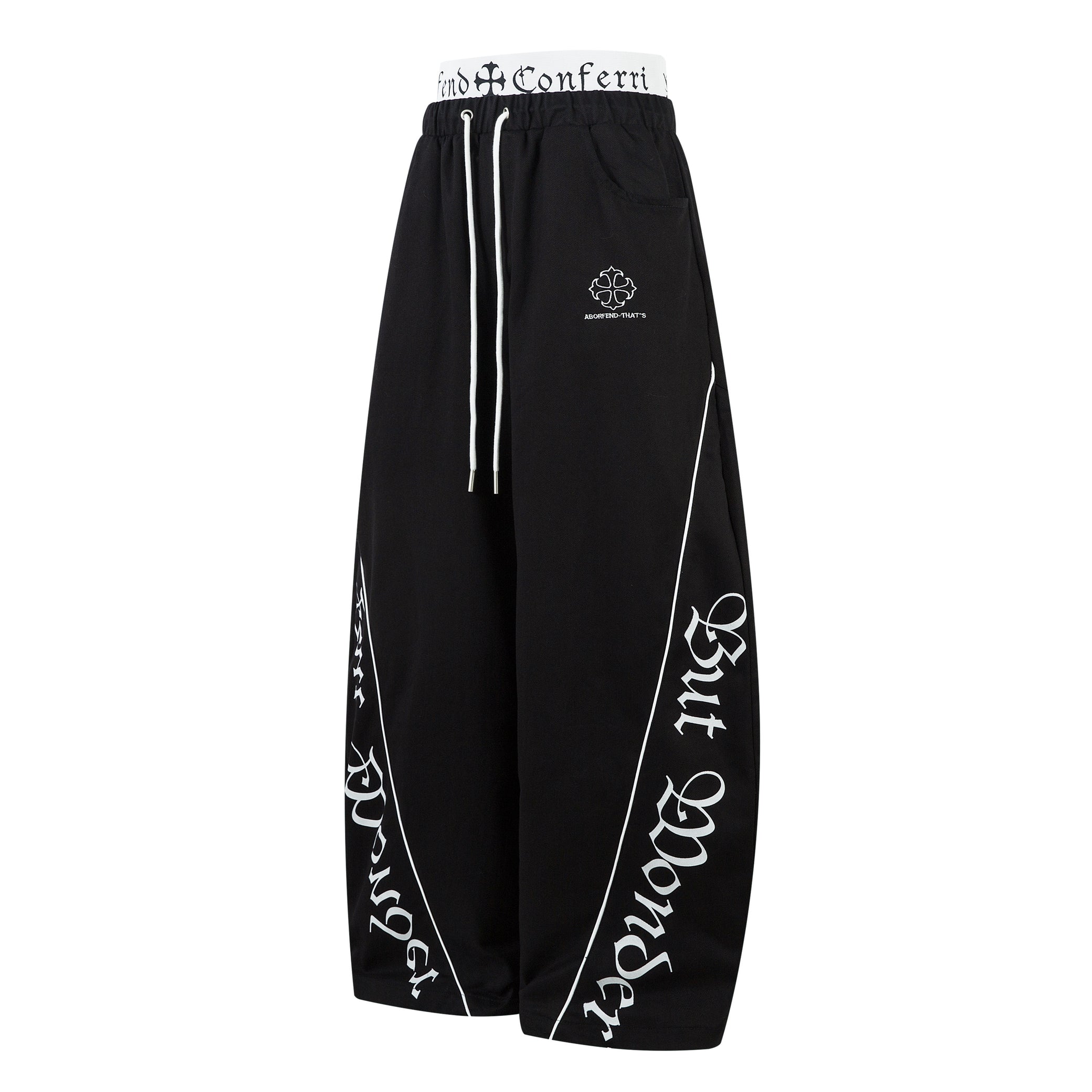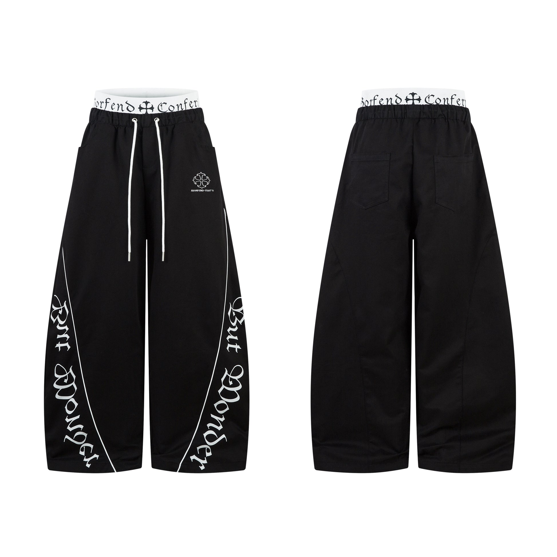 Streetwear Double-Waistband Gothic Typography Scimitar Pants