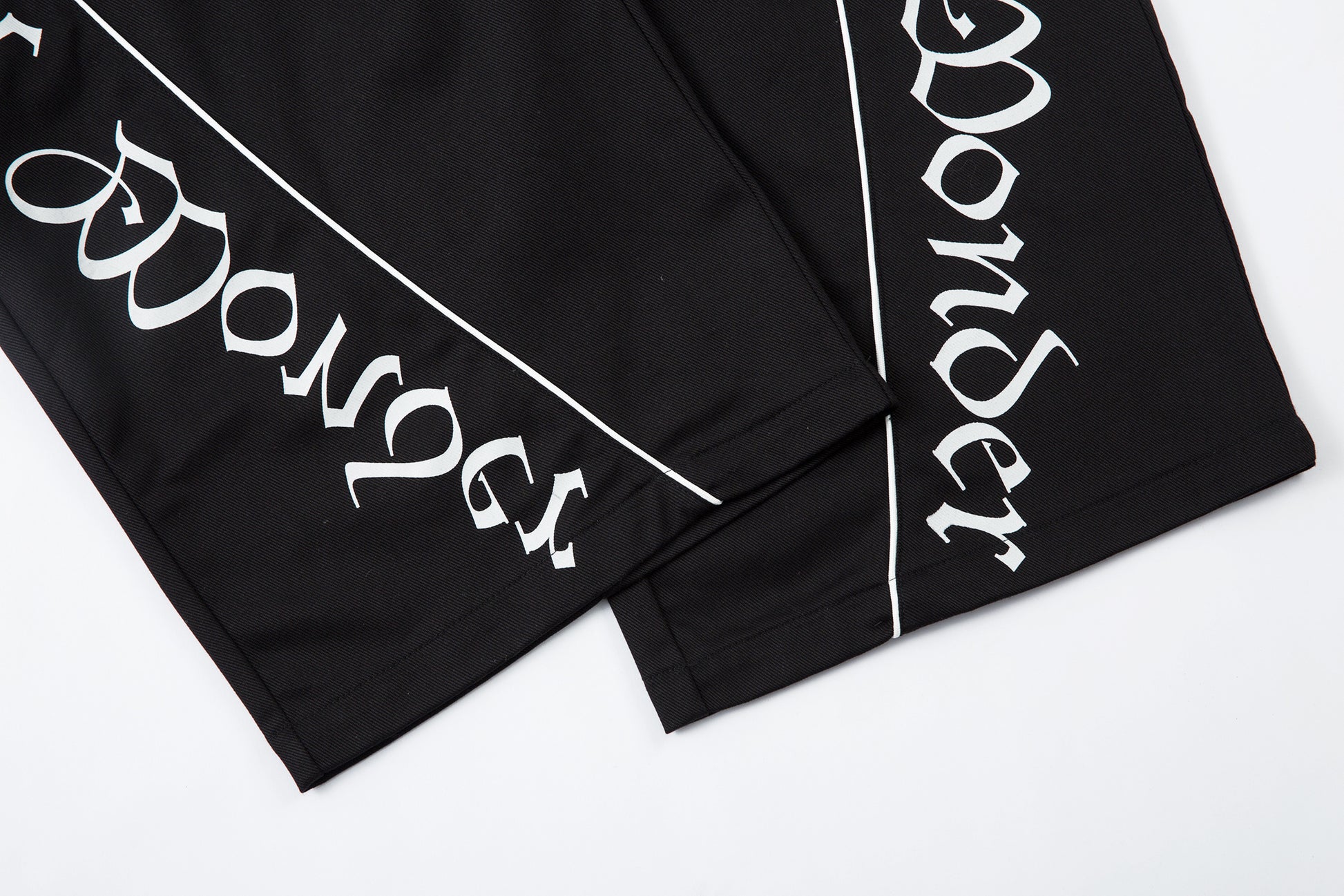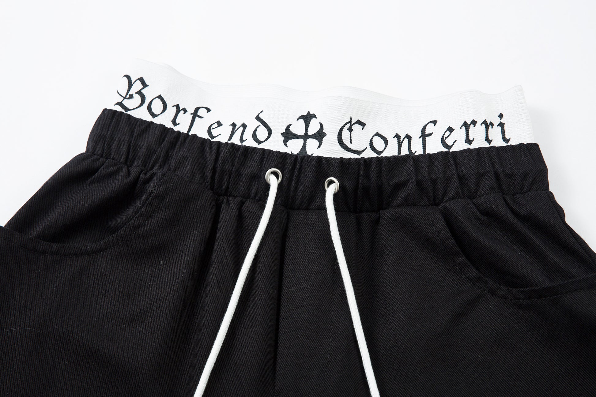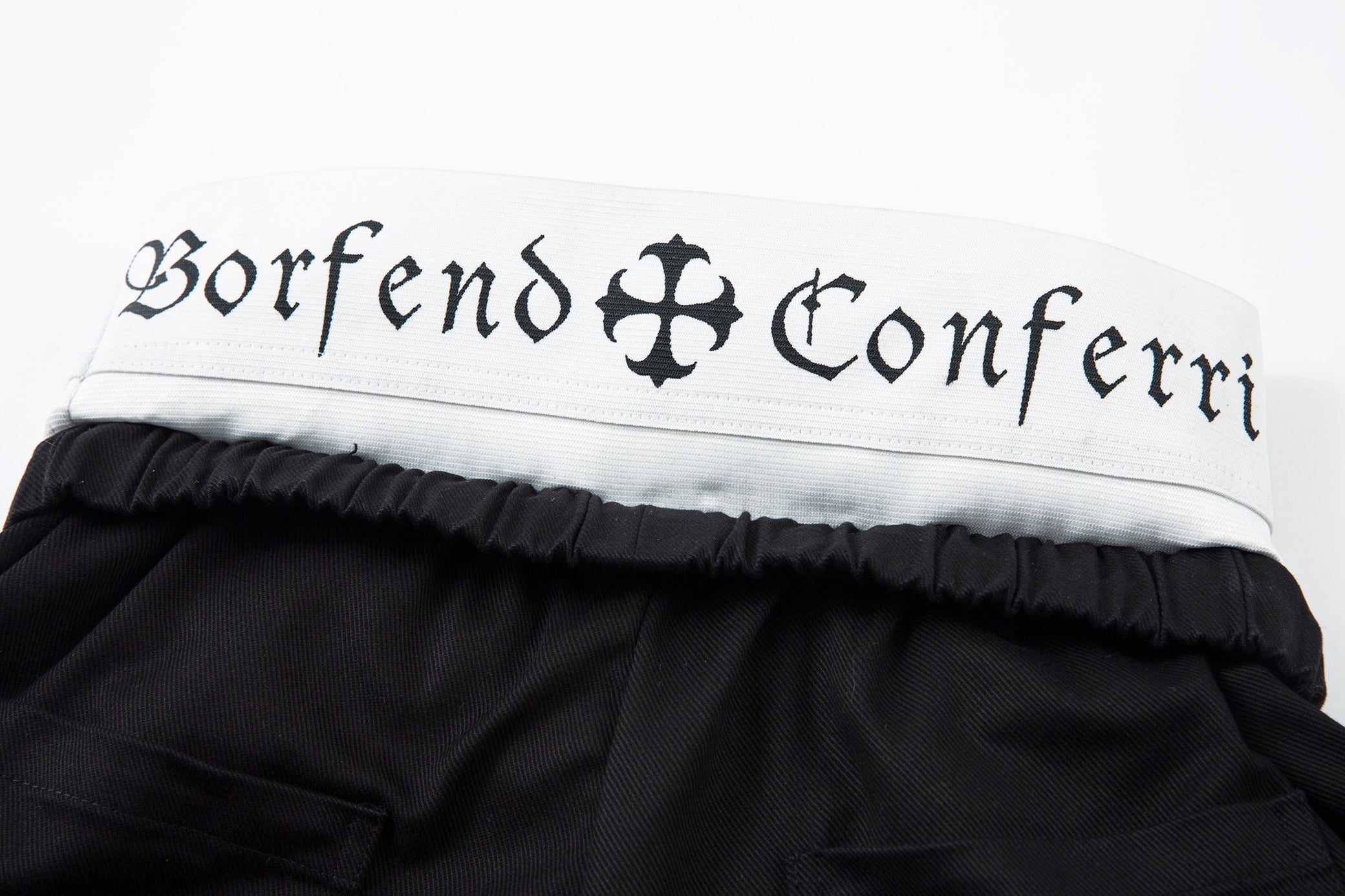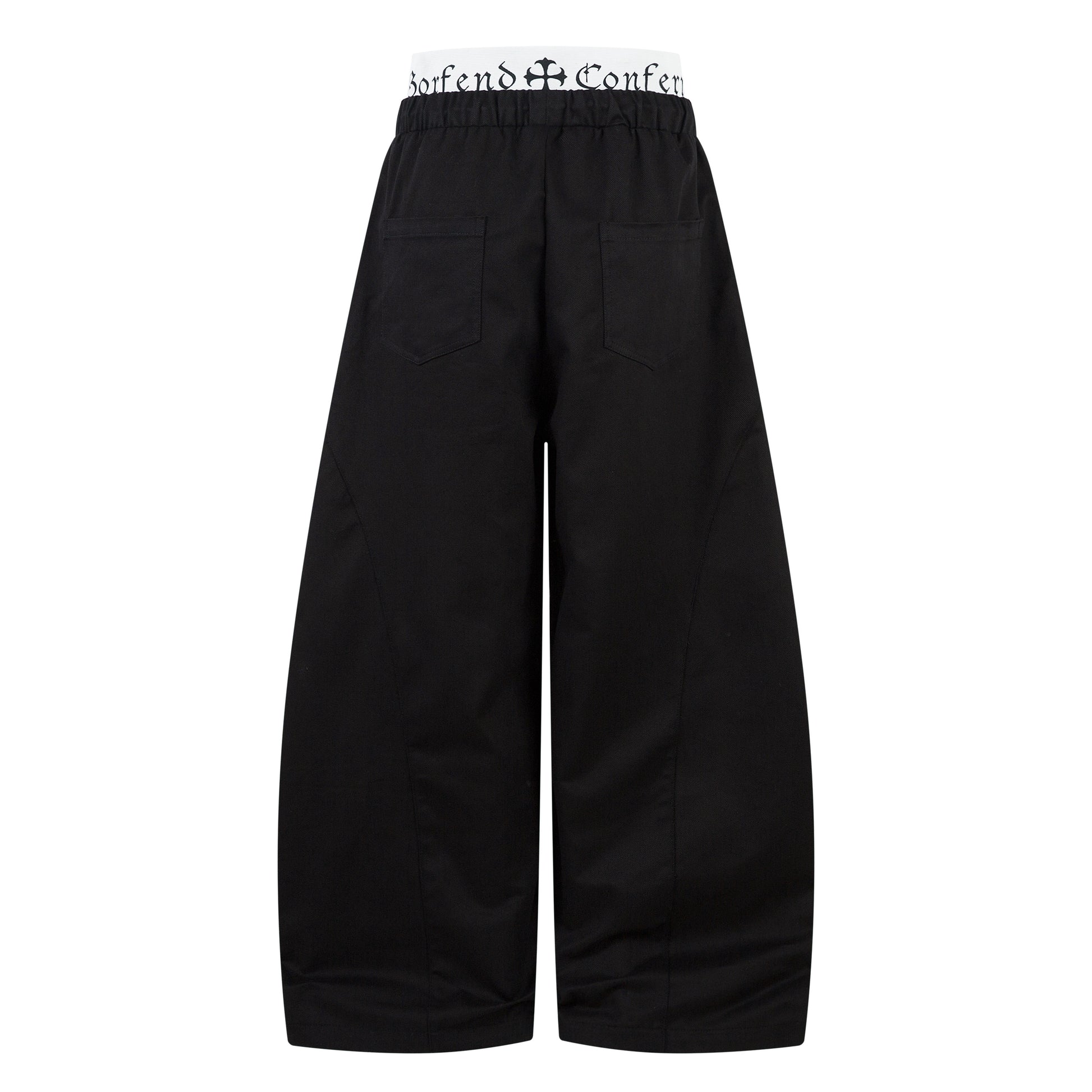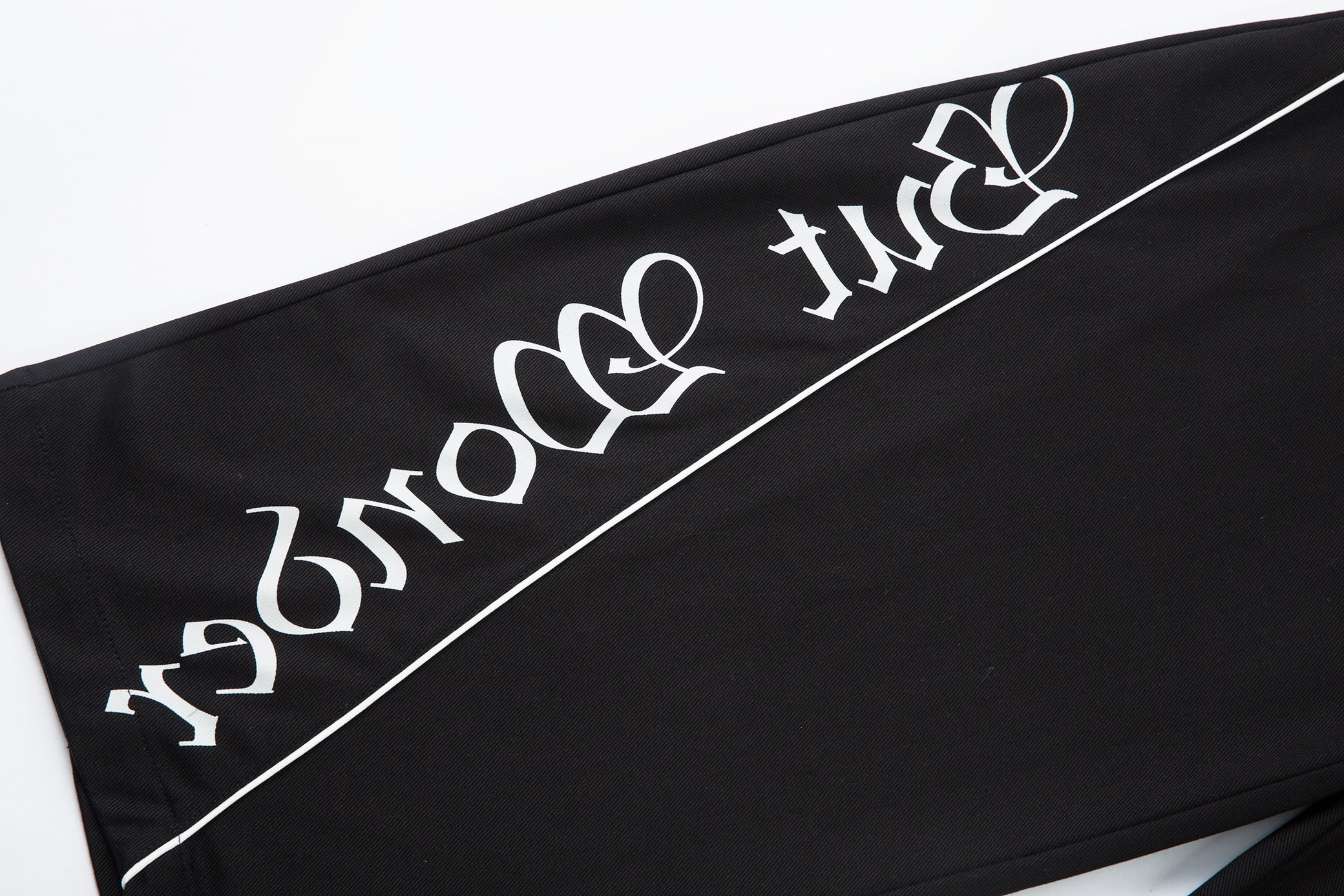 Streetwear Double-Waistband Gothic Typography Scimitar Pants
