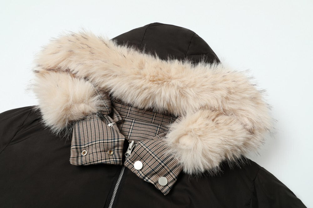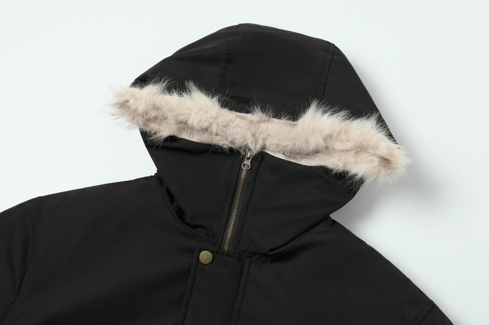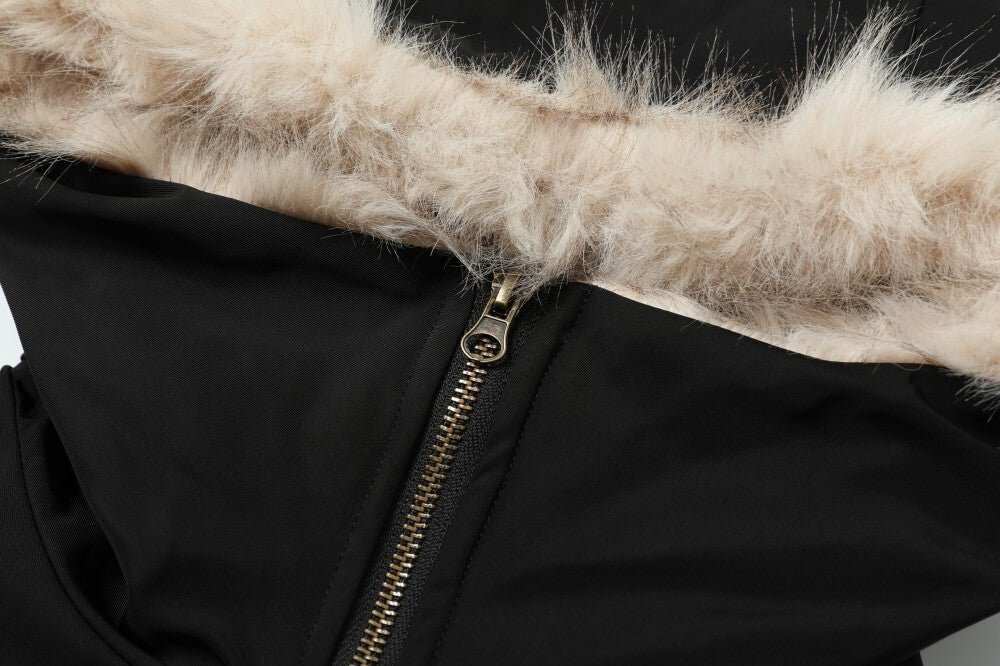 Streetwear Leopard Faux Fur Collar Hooded Aviator Padded Jacket