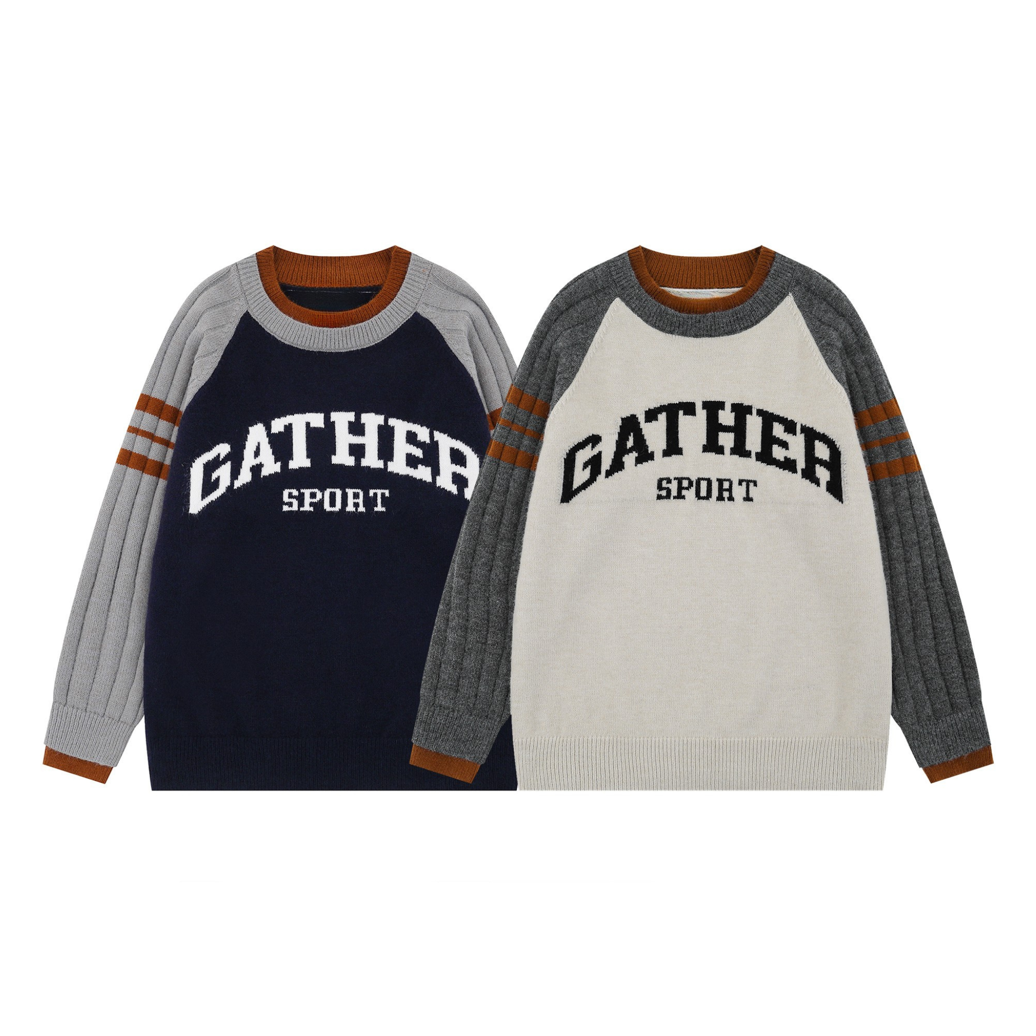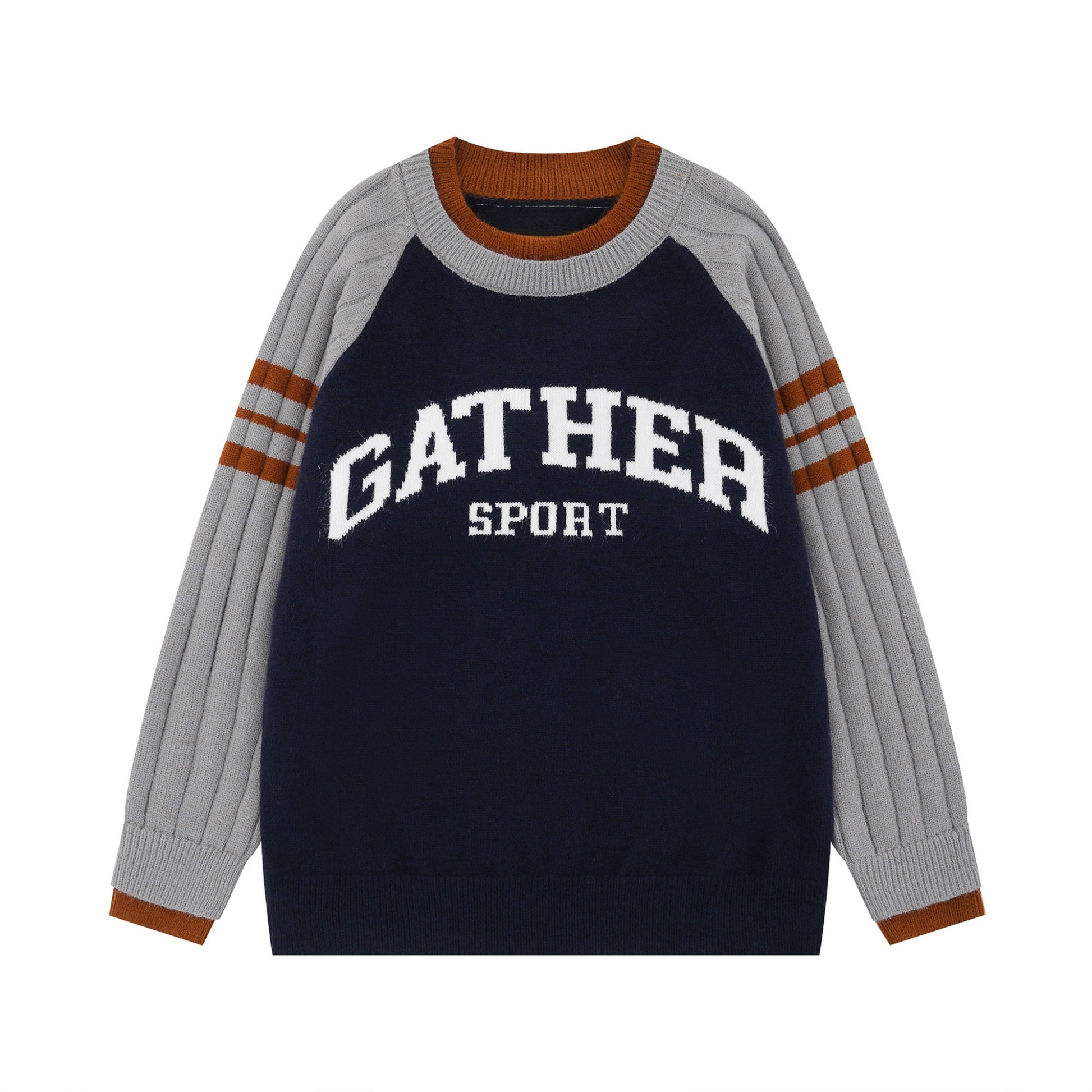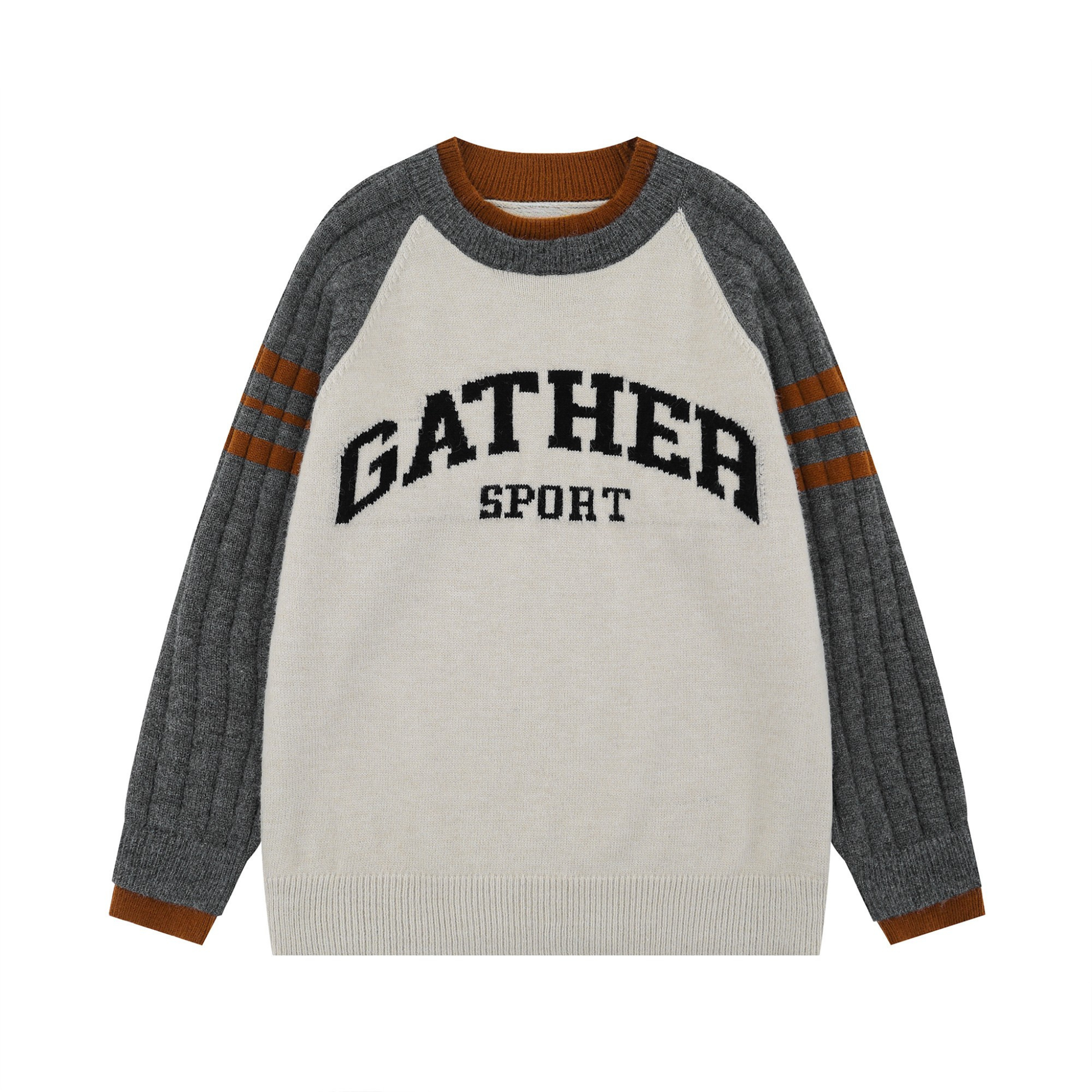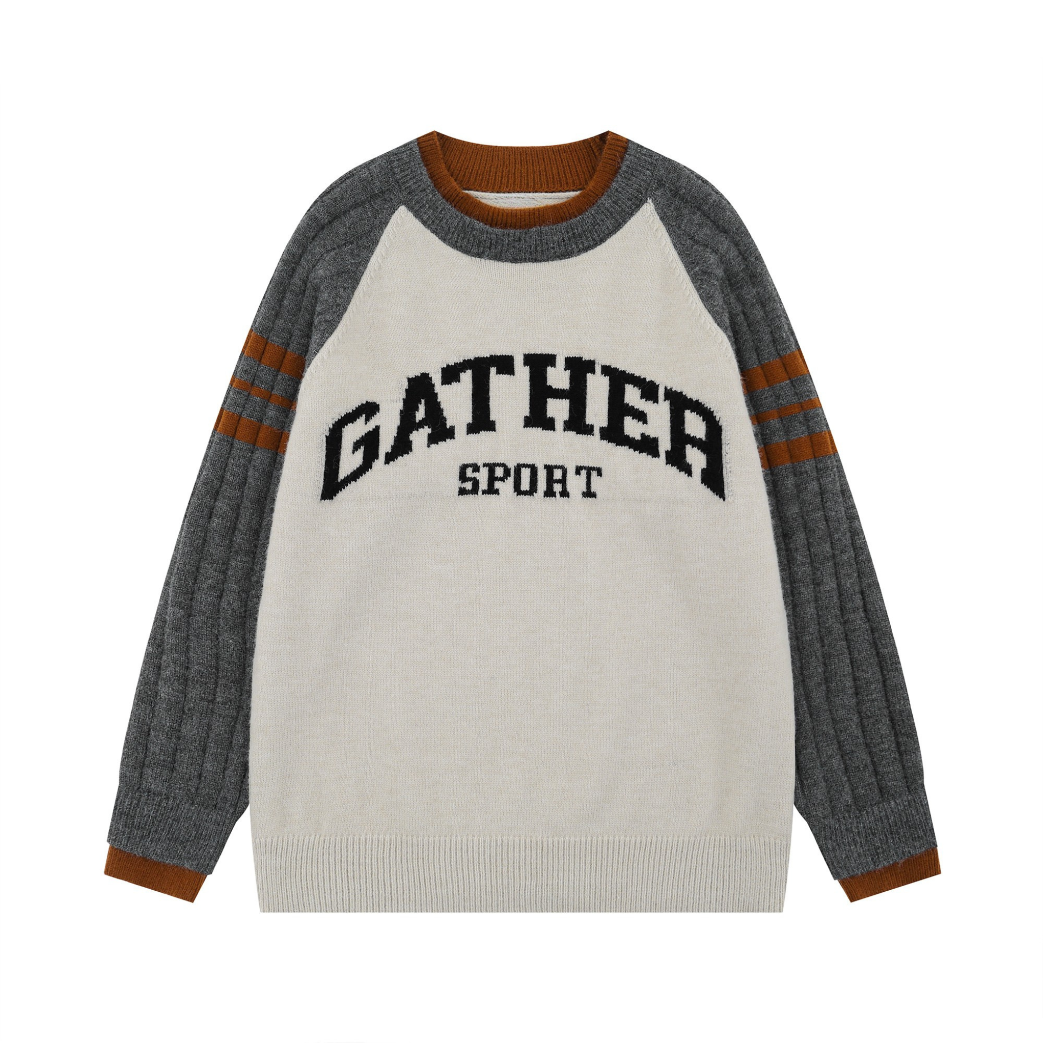 The Omirad Gather Sport Knit Sweater channels classic varsity energy with bold collegiate lettering and retro athletic color contrasts. Ribbed raglan sleeves with double-stripe detailing add dimension and nostalgia, while the soft knit build gives it a cozy yet structured silhouette—perfect for fall street layering.