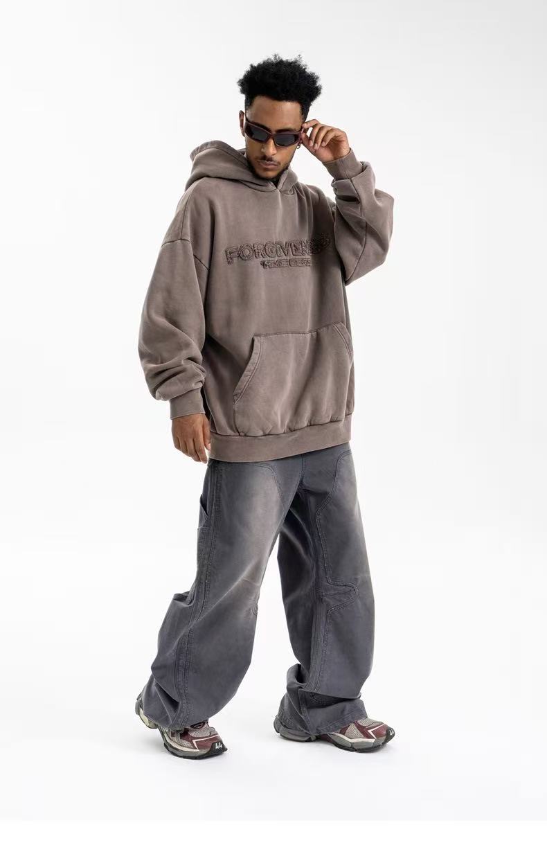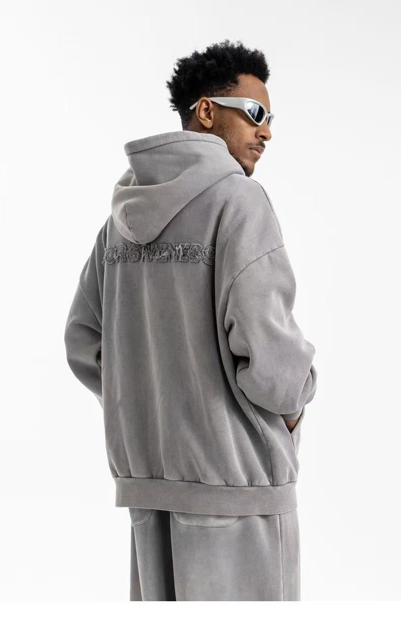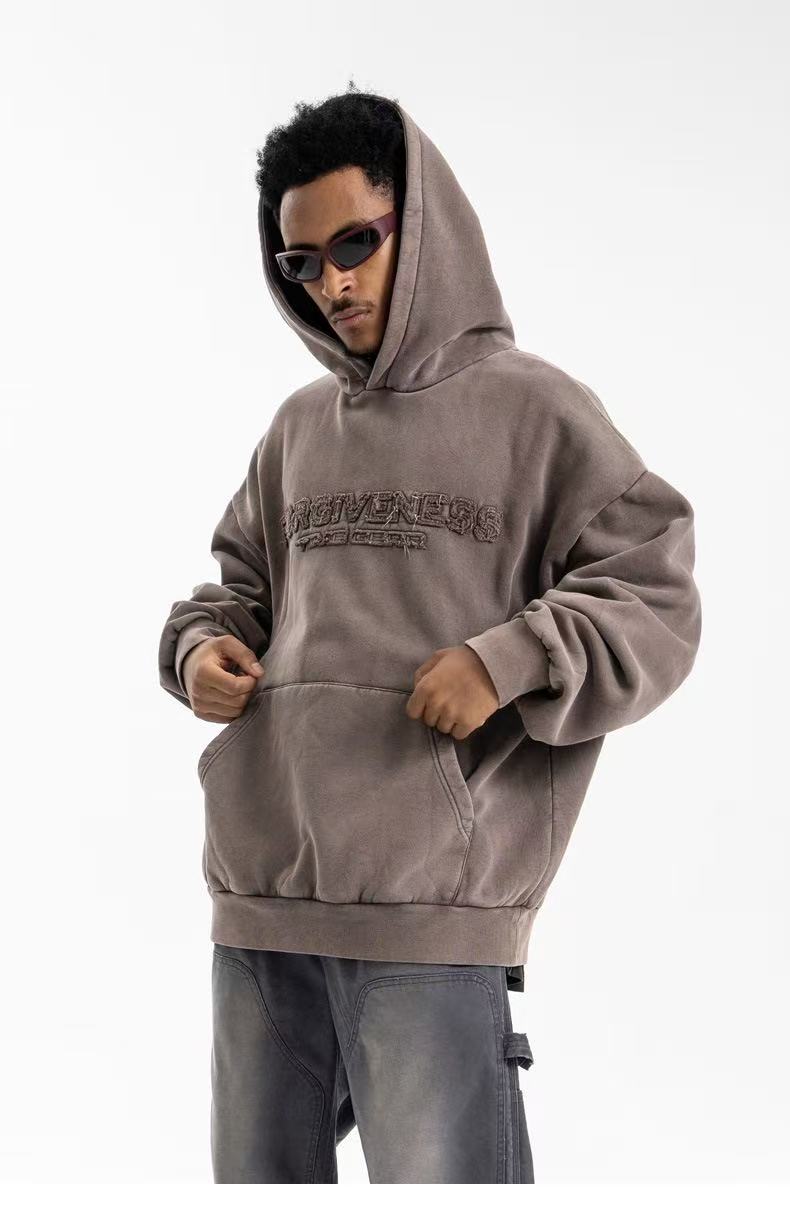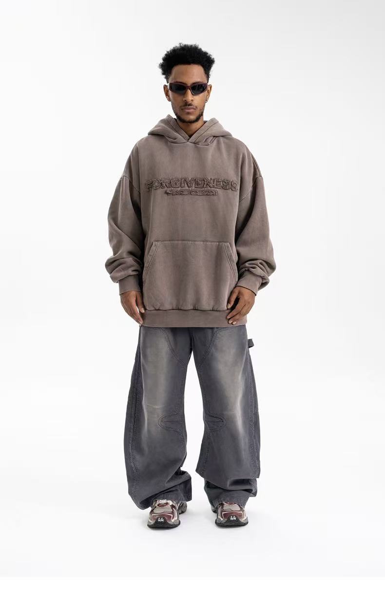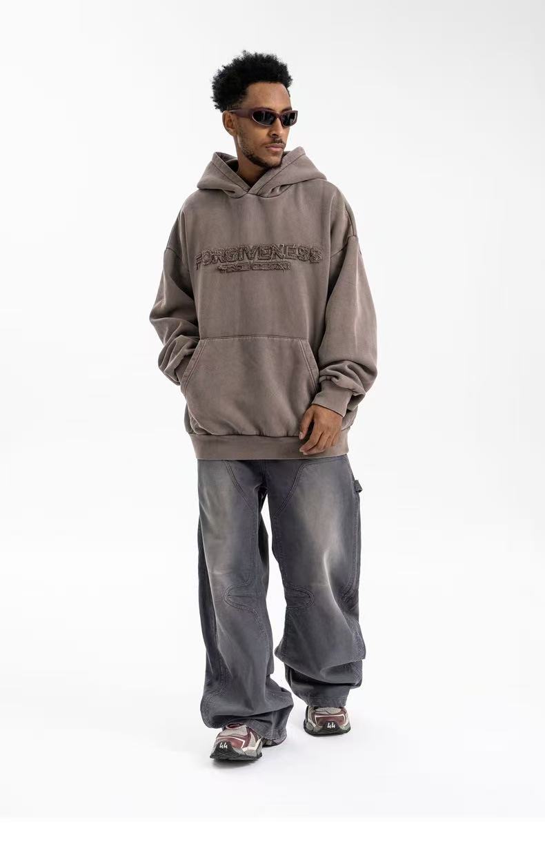 Streetwear Minimalist Fringe Embroidered Letter Hoodie