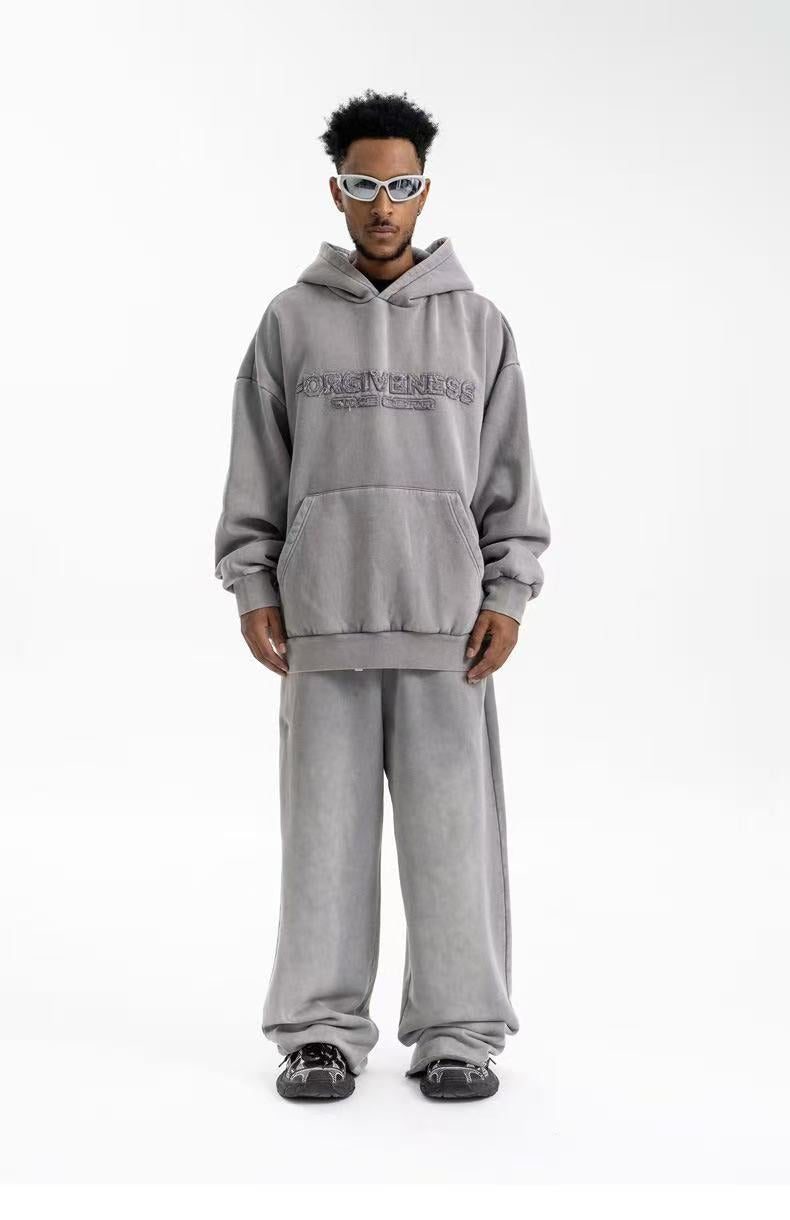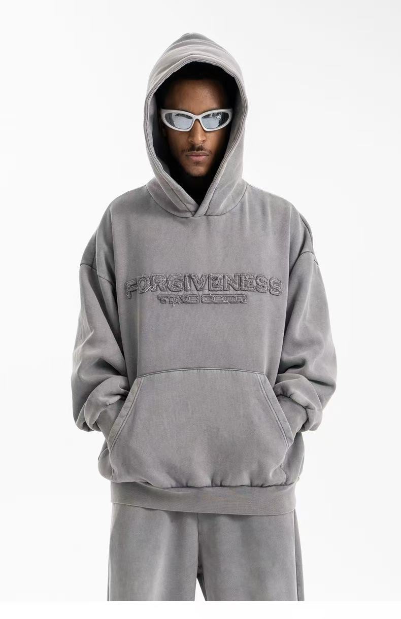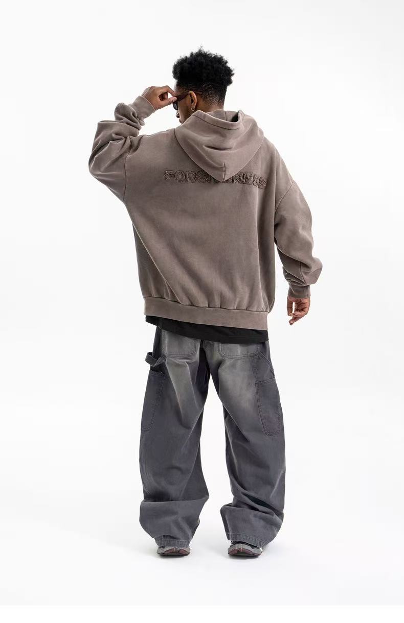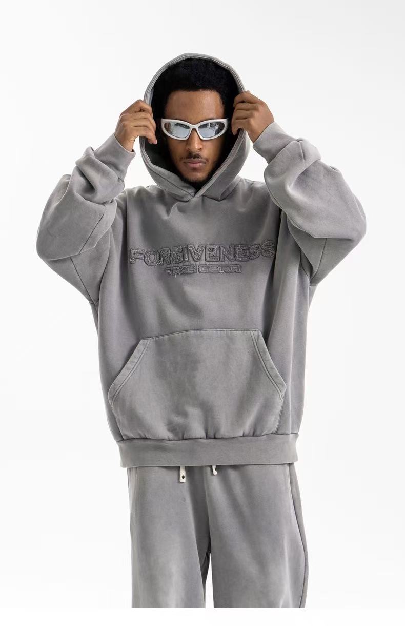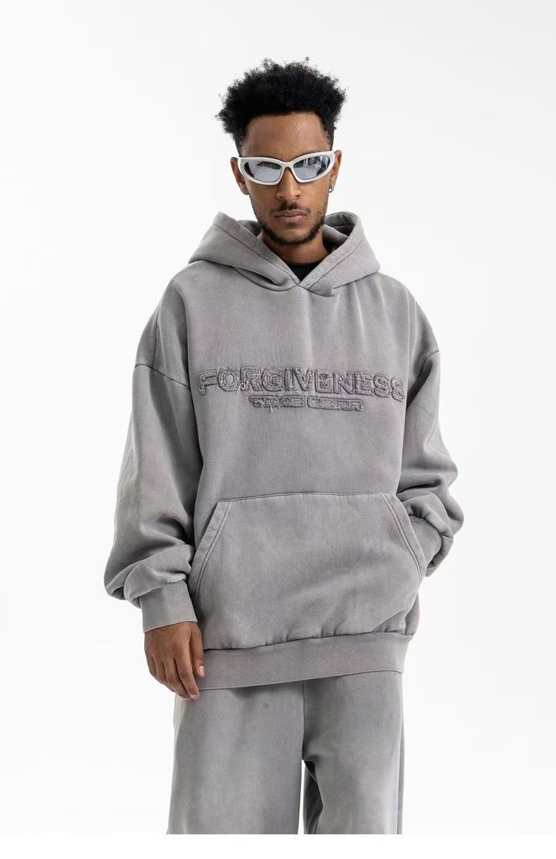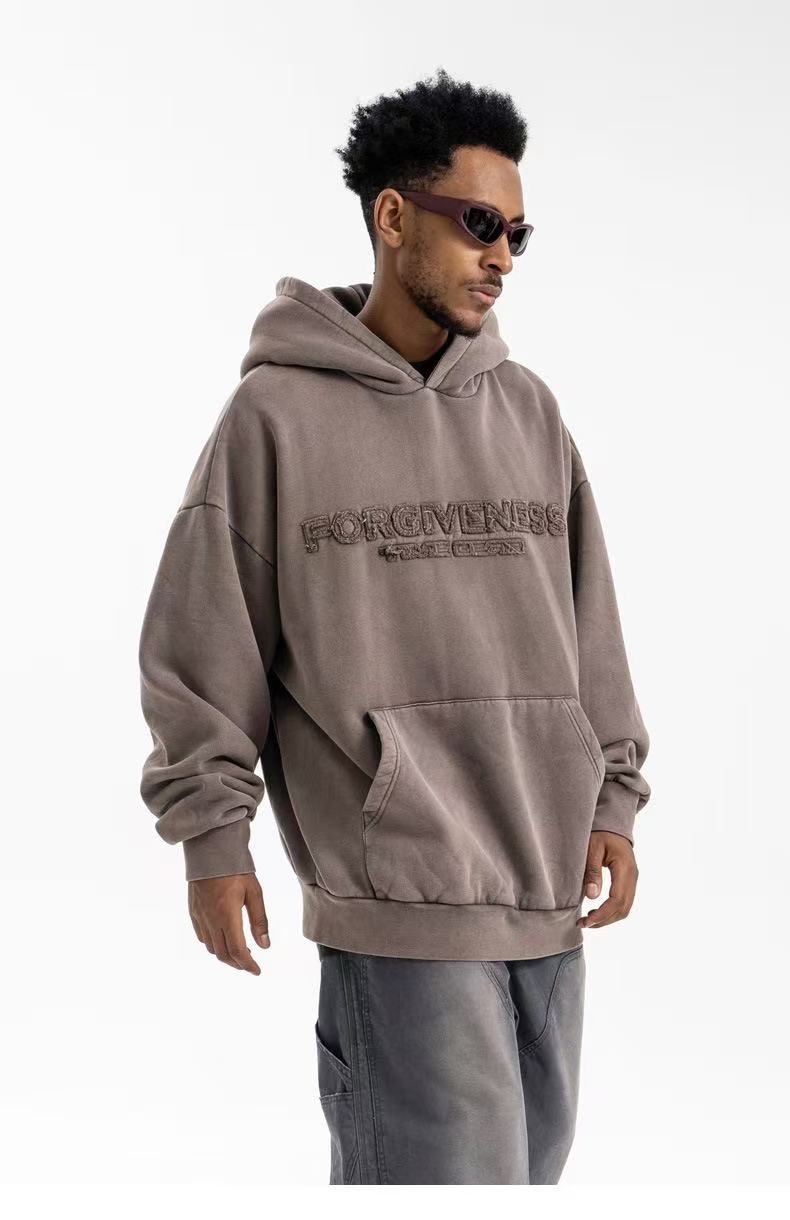 Streetwear Minimalist Fringe Embroidered Letter Hoodie