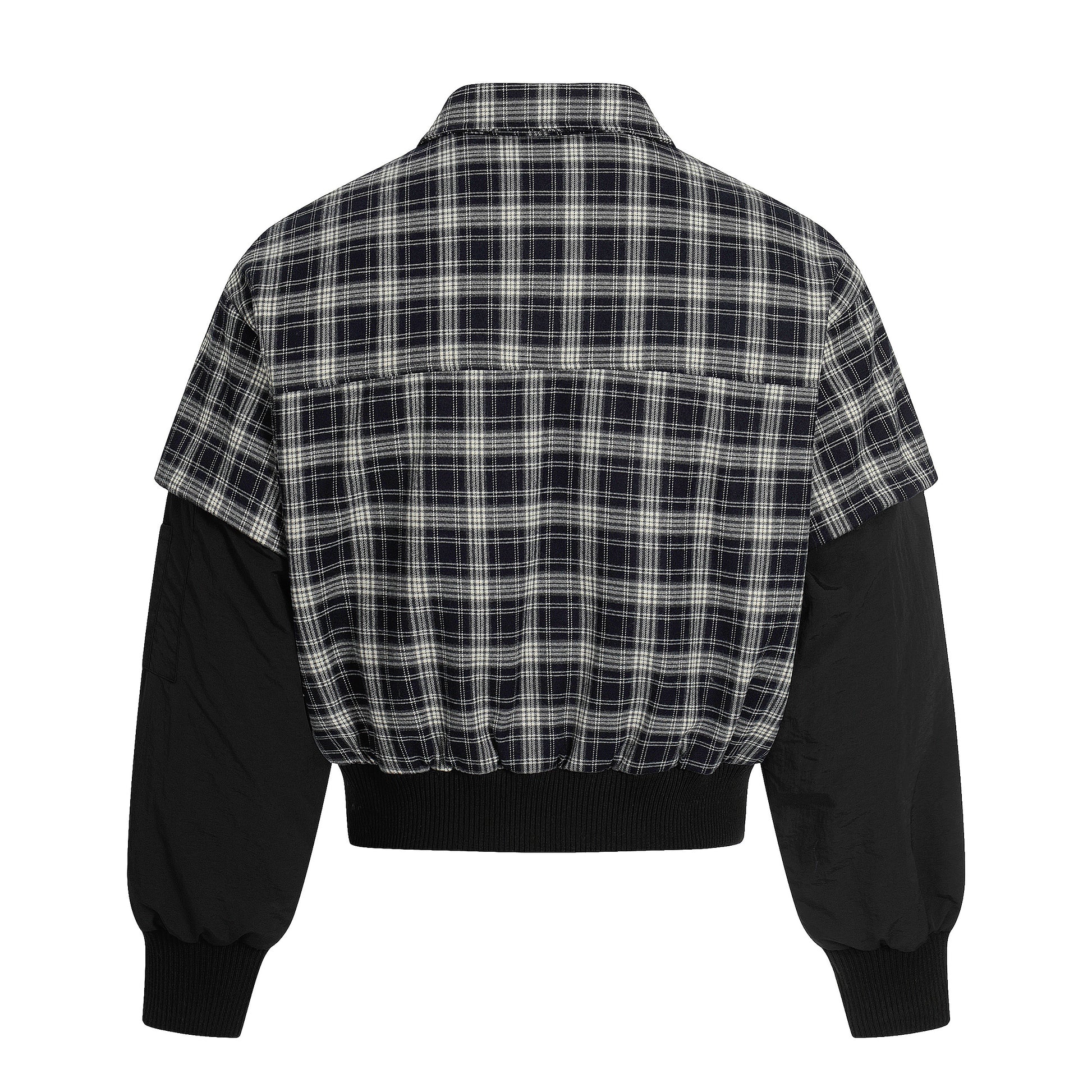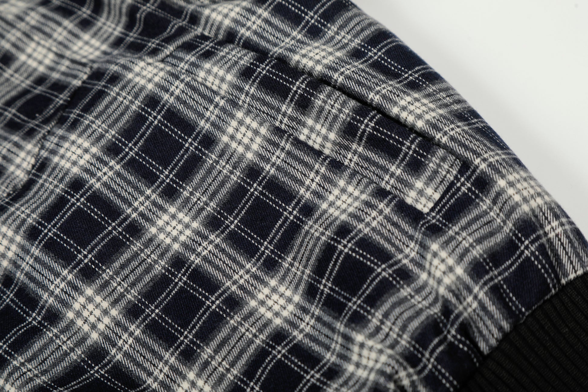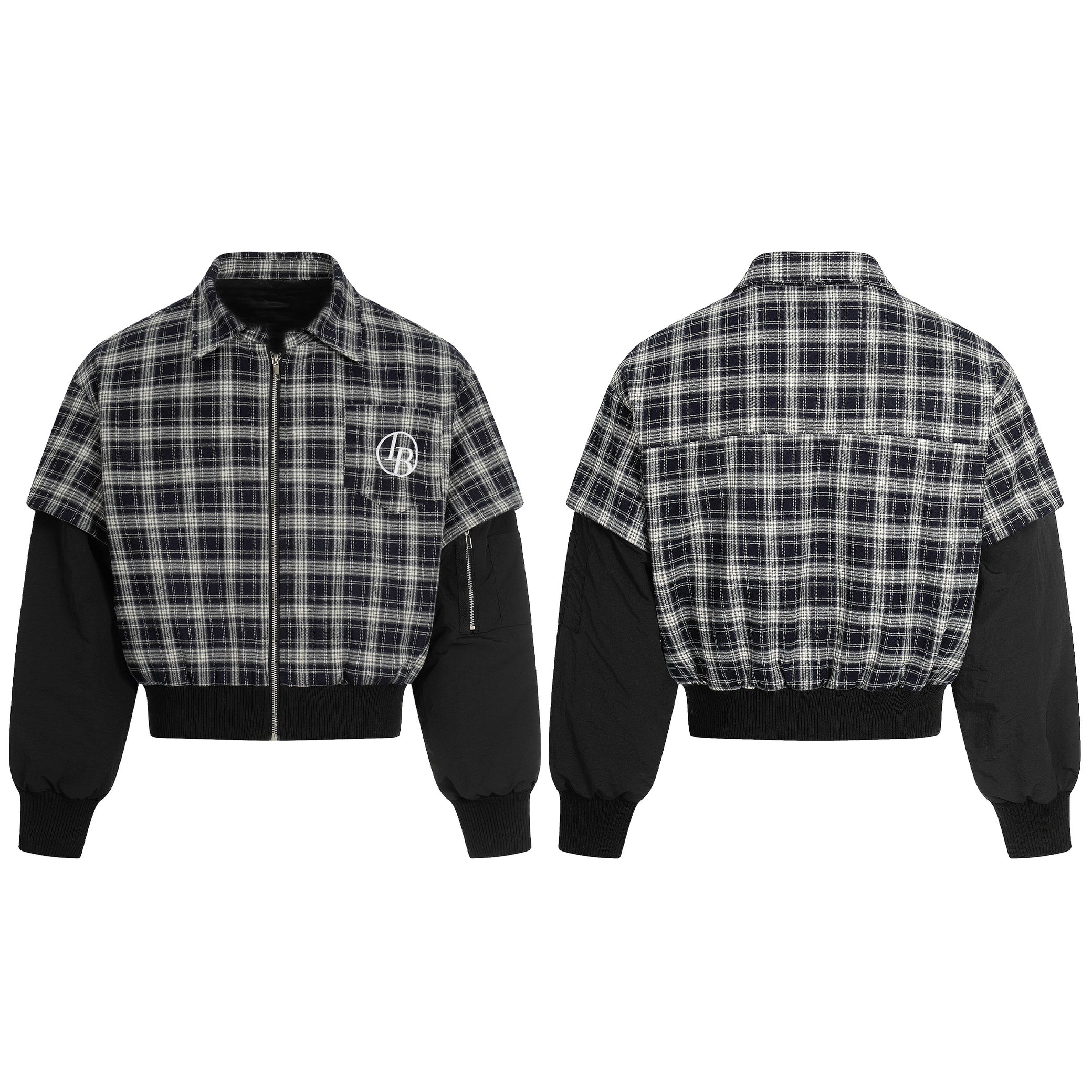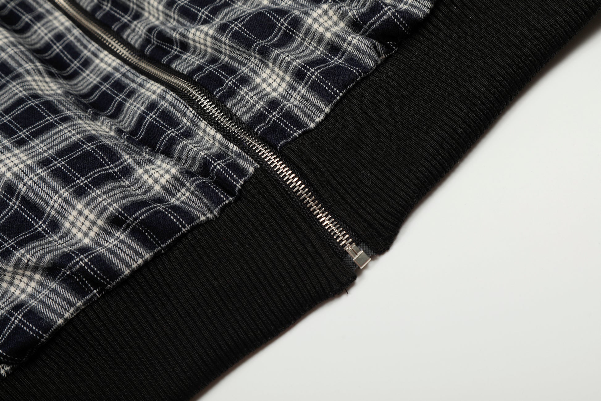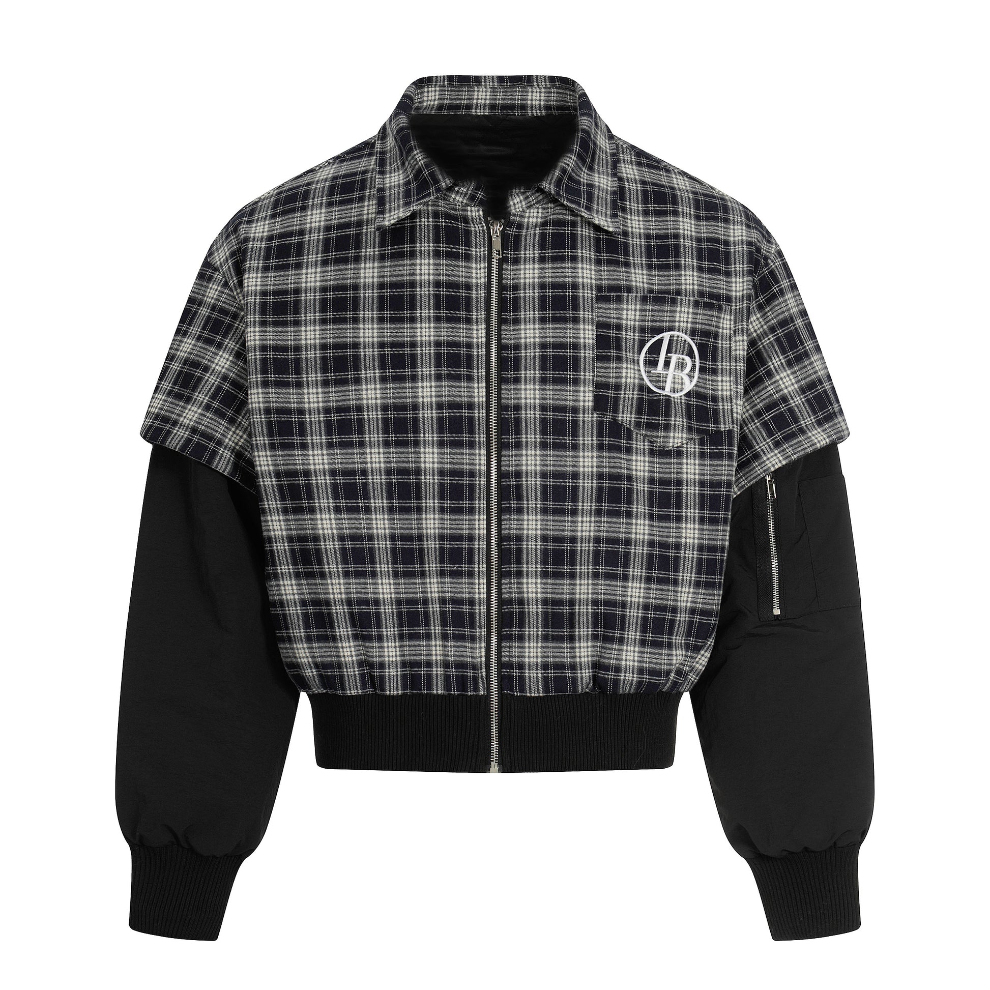 The Omirad Plaid Hybrid Bomber Jacket fuses classic plaid with a modern streetwear silhouette. Featuring contrast black sleeves, ribbed hem, and a cropped cut, it delivers a balance of vintage workwear charm and urban energy. The embroidered OB logo on the chest adds a signature Omirad touch.