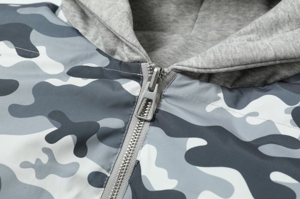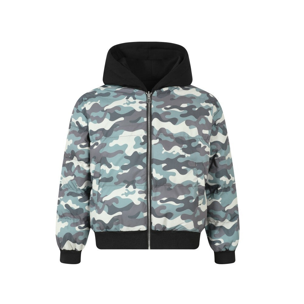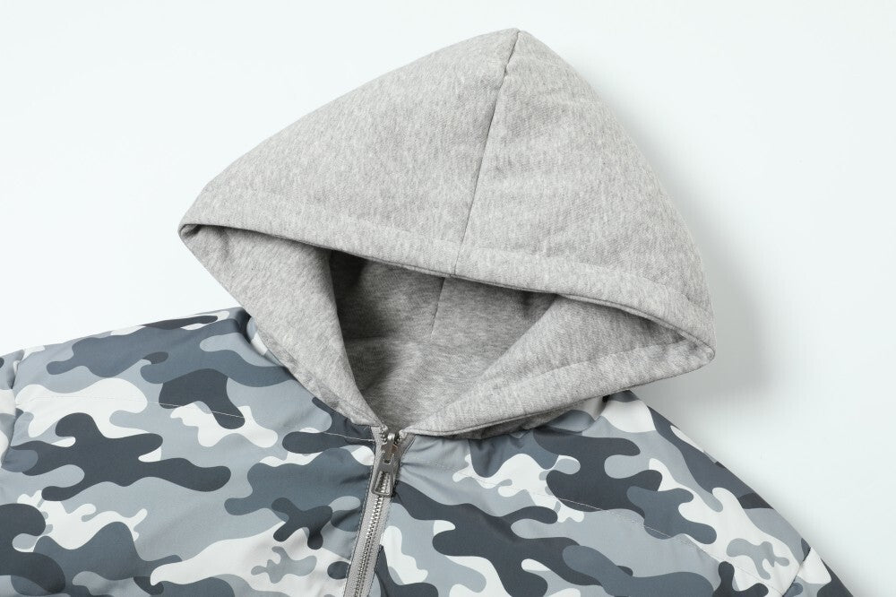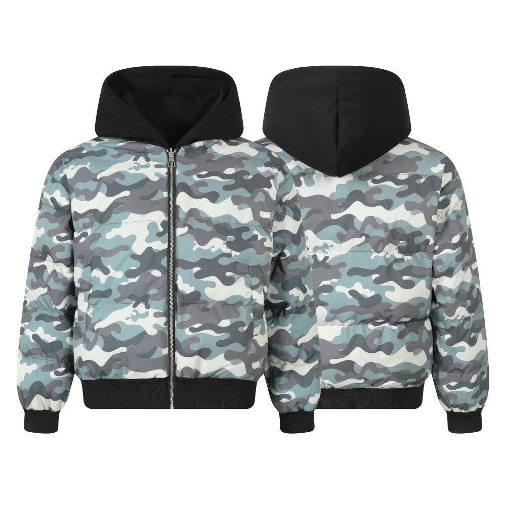 Streetwear Retro Reversible Camouflage Hooded Quilted Jacket