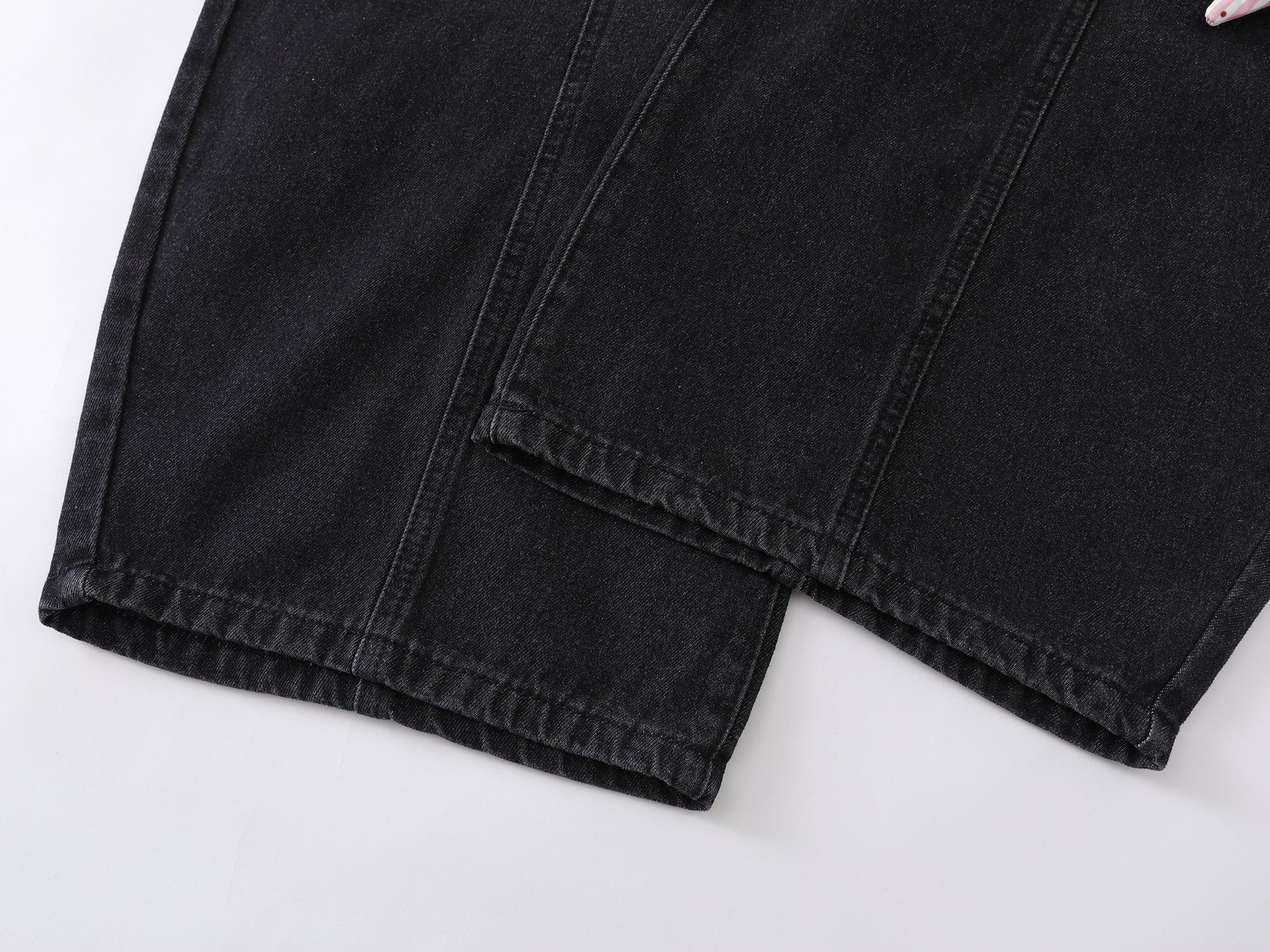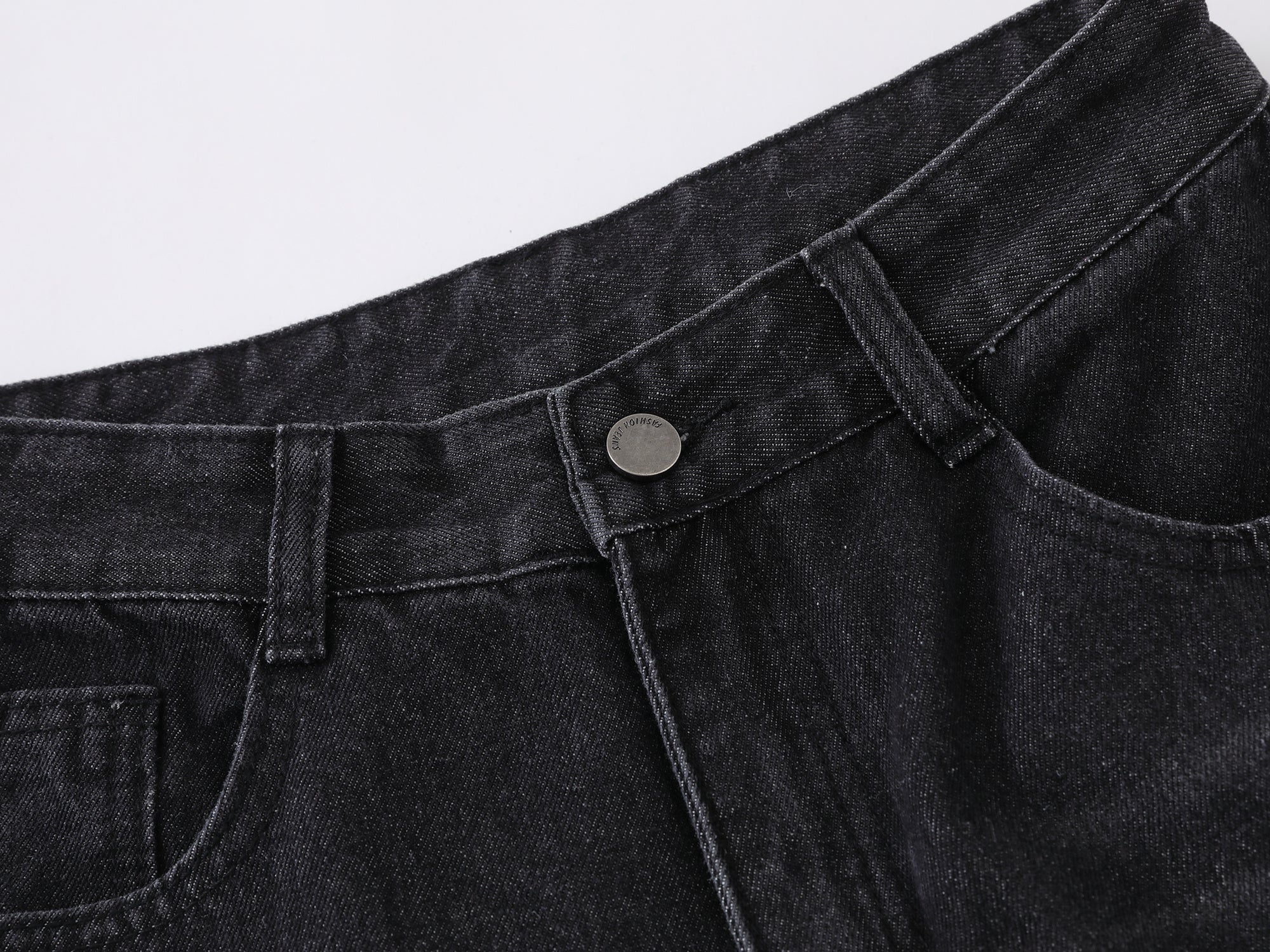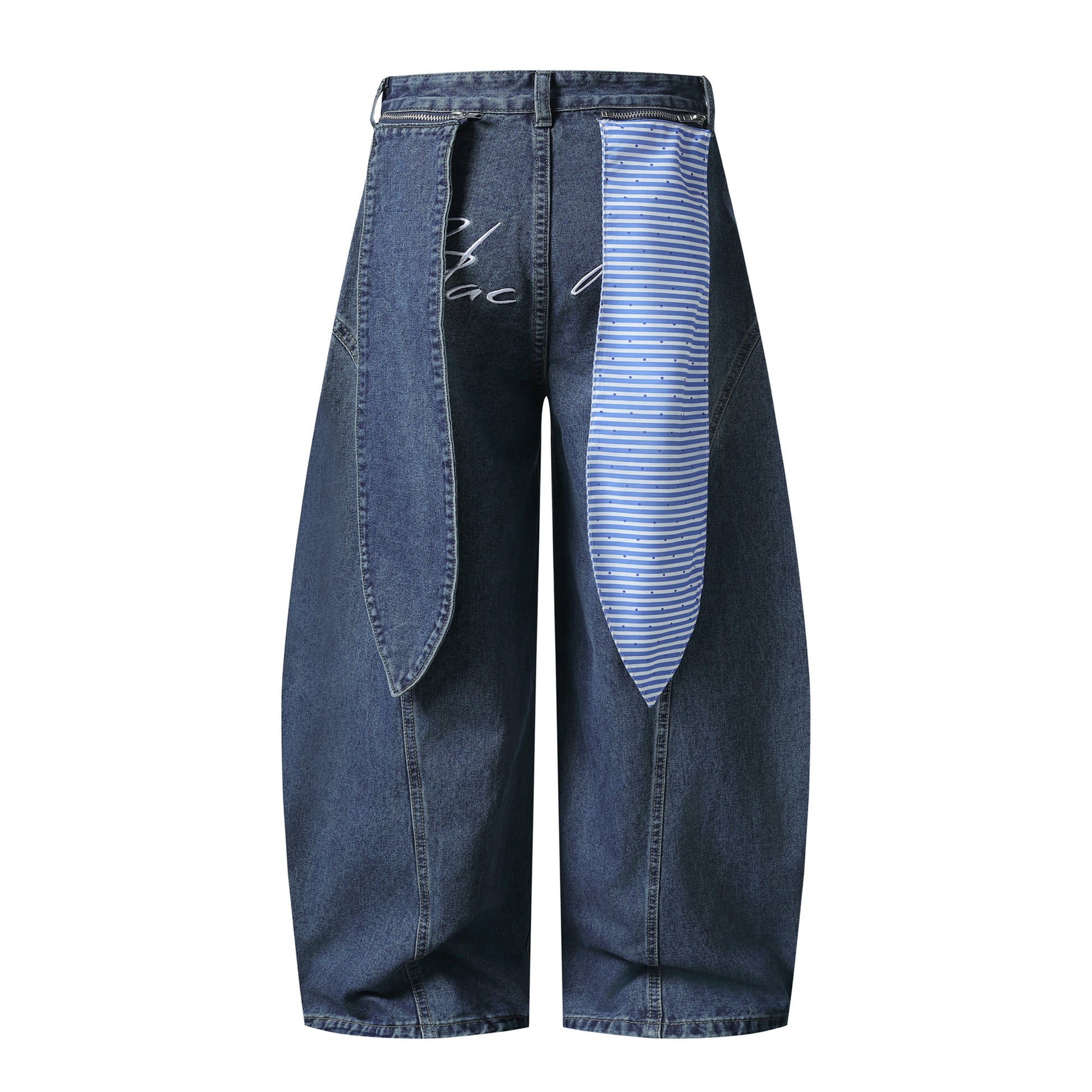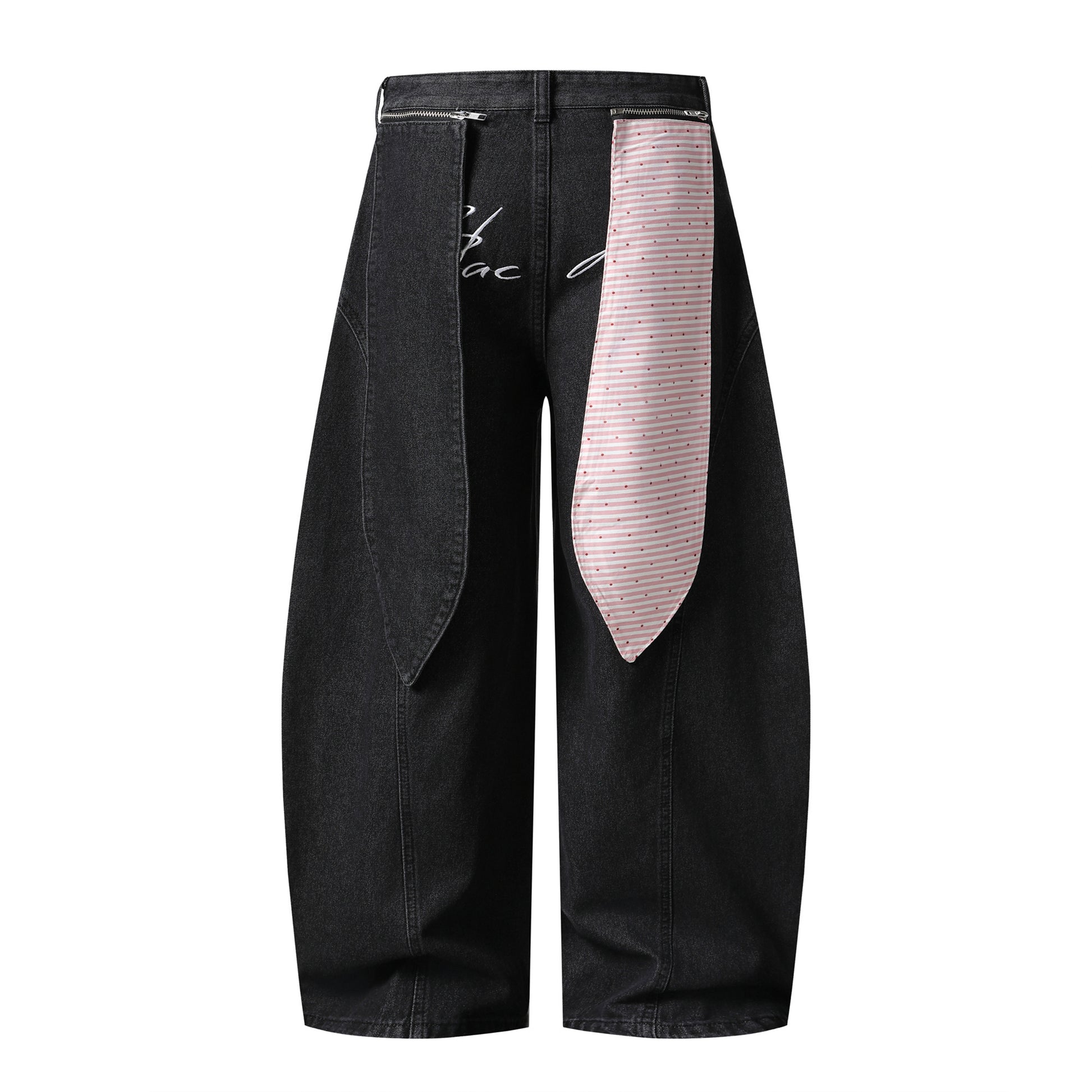 Clothing details: Star patch design, detachable stripe panel, wide-leg silhouette, washed finish, relaxed street fit.