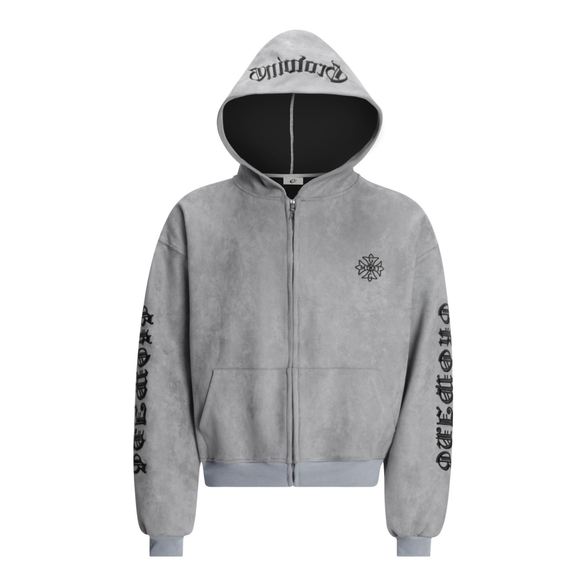 Omirad Gothic Embroidered Suede Zip Hoodie