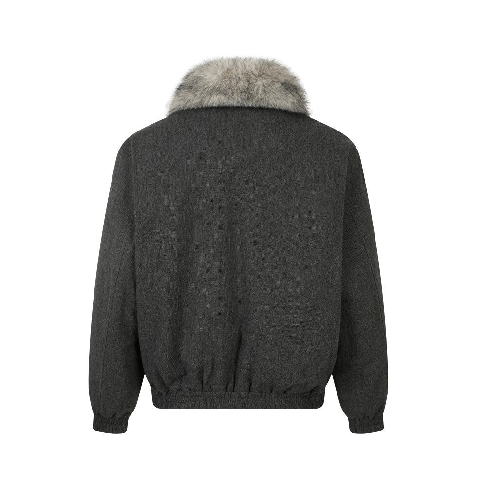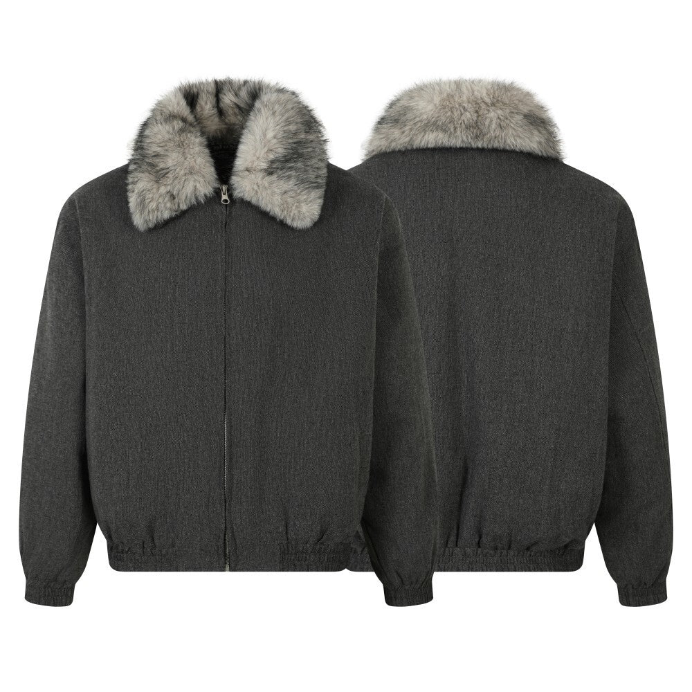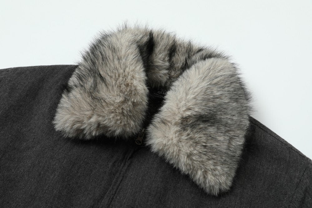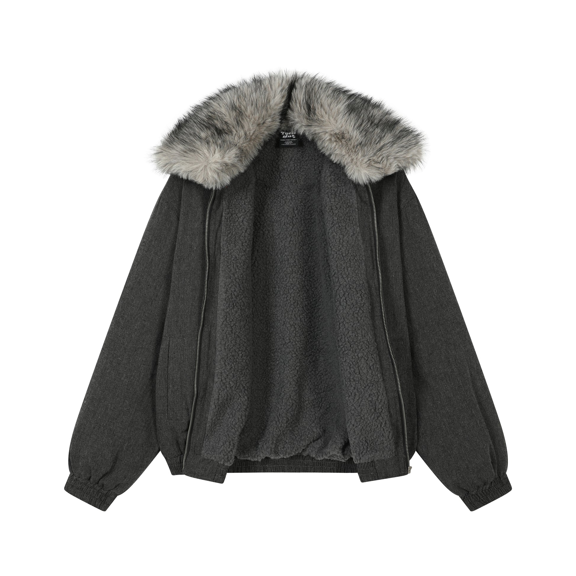 Streetwear Vintage Sherpa Tweed Detachable Fur Collar Padded Jacket