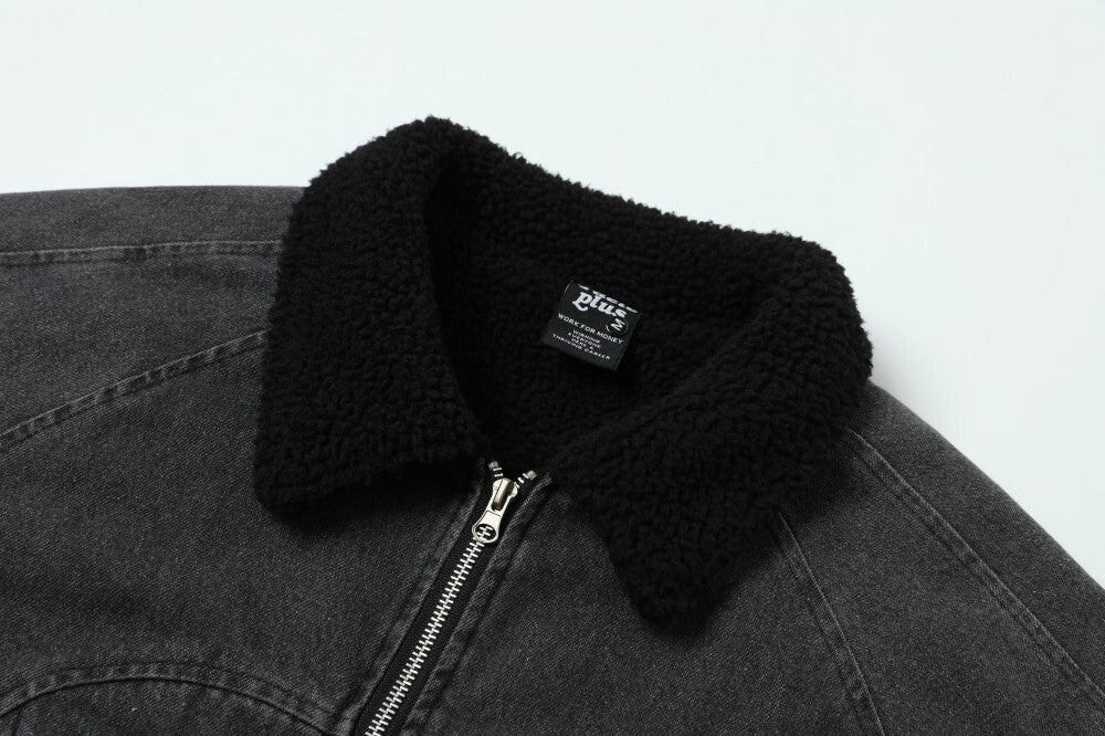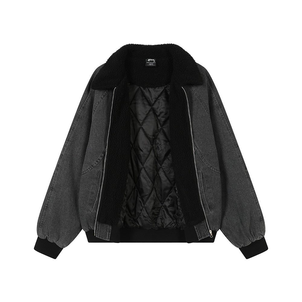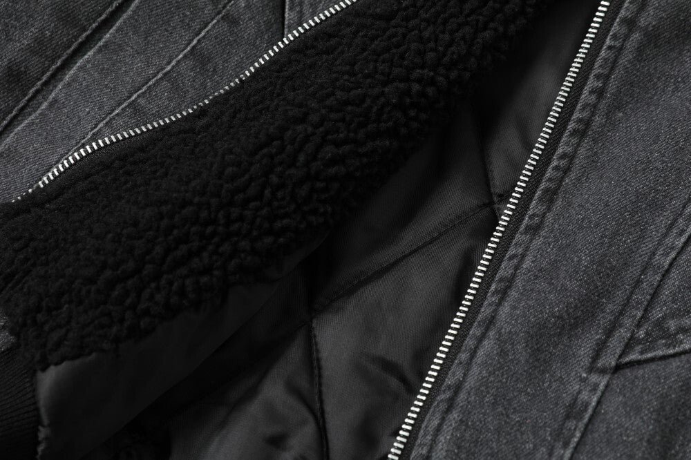Streetwear Vintage Washed Sherpa Denim Padded Jacket