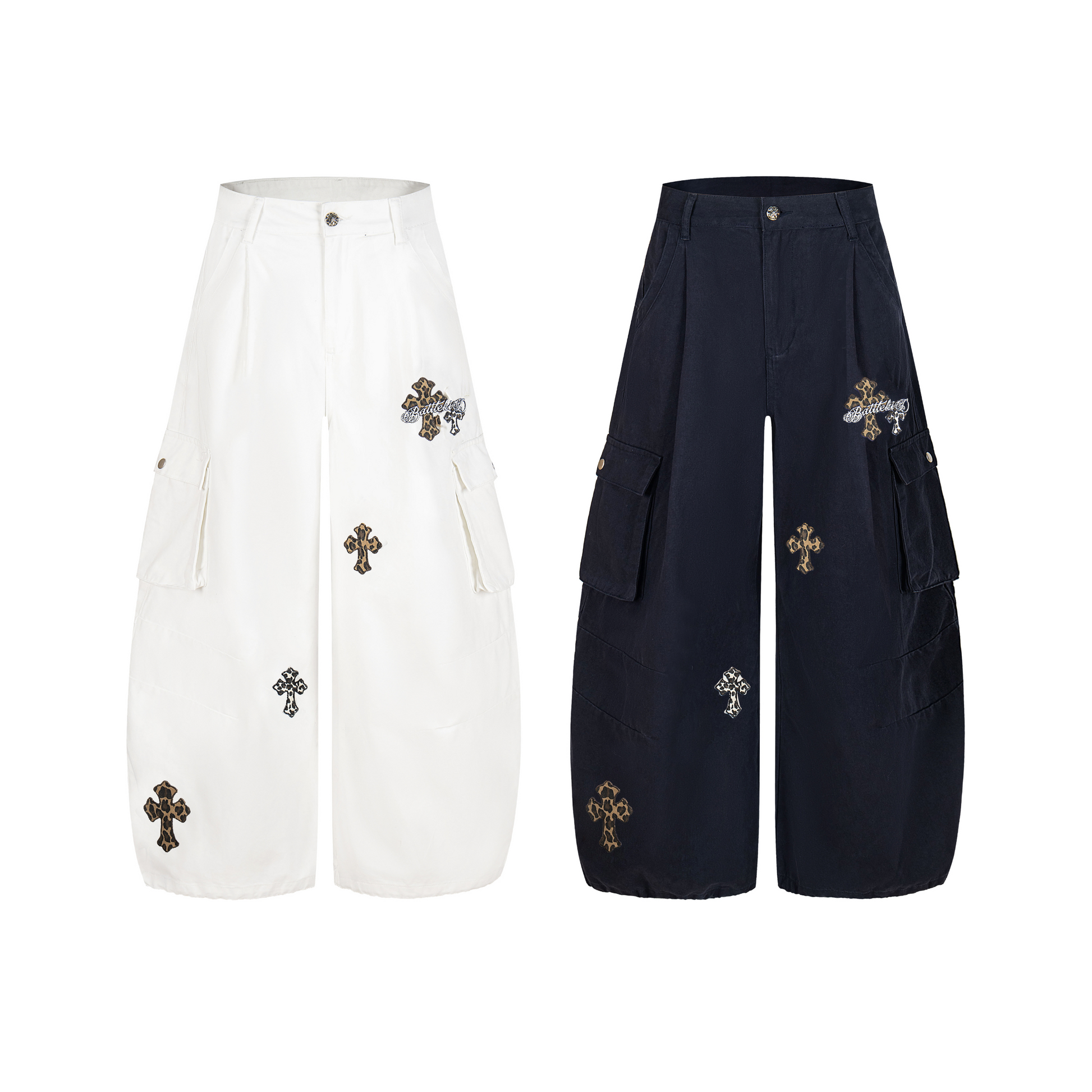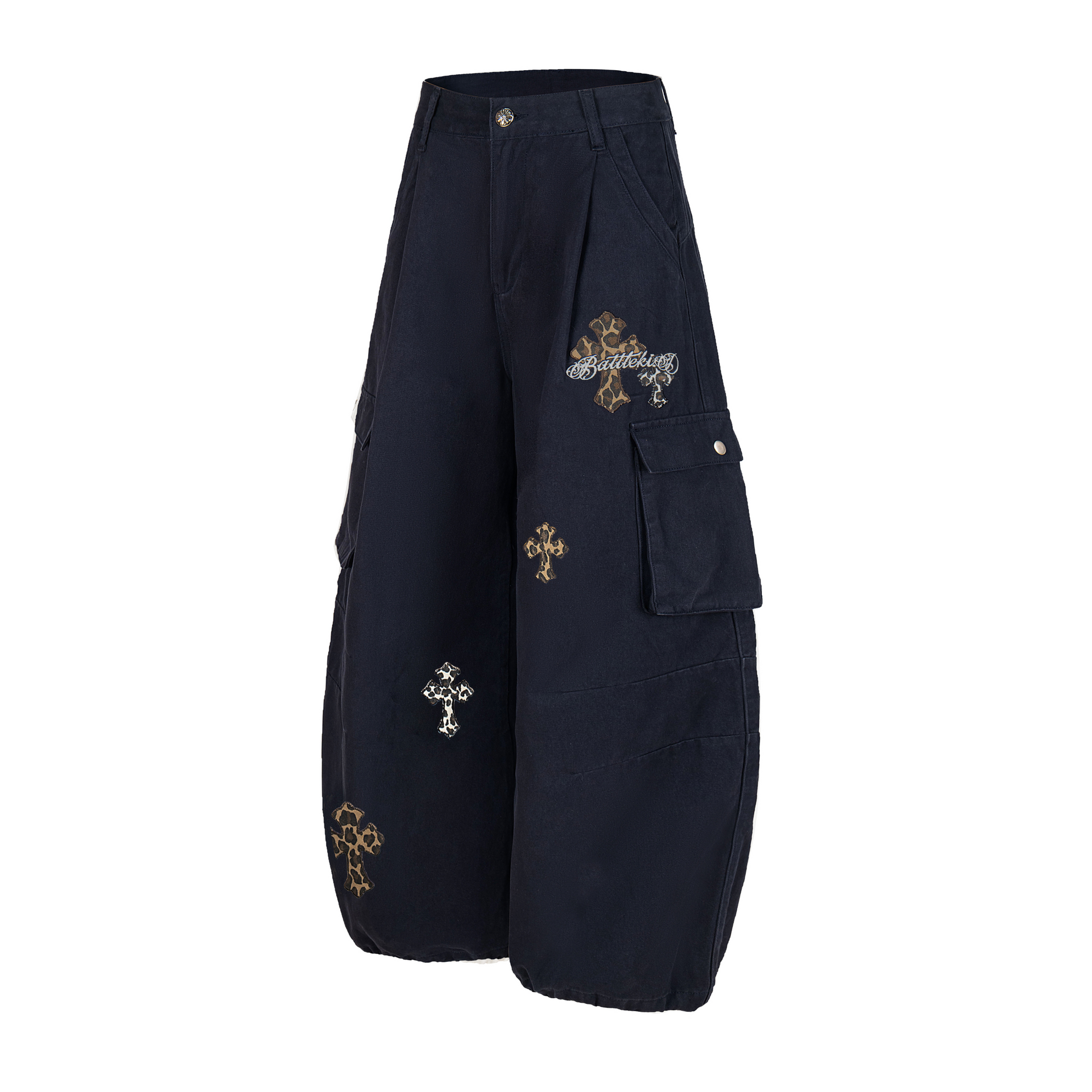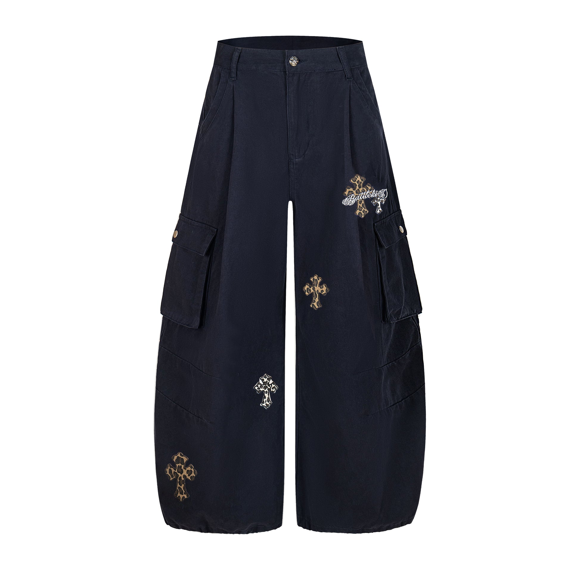 Streetwear Washed Curved-Cut Cargo Jeans