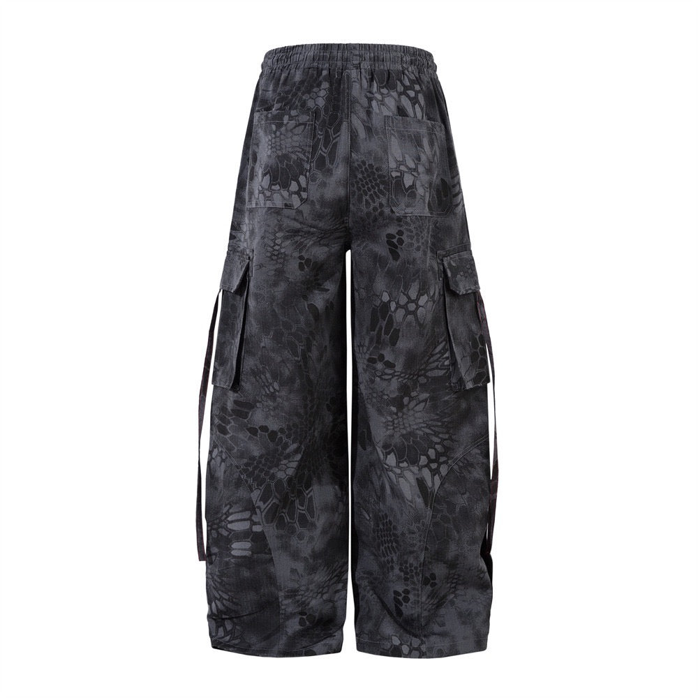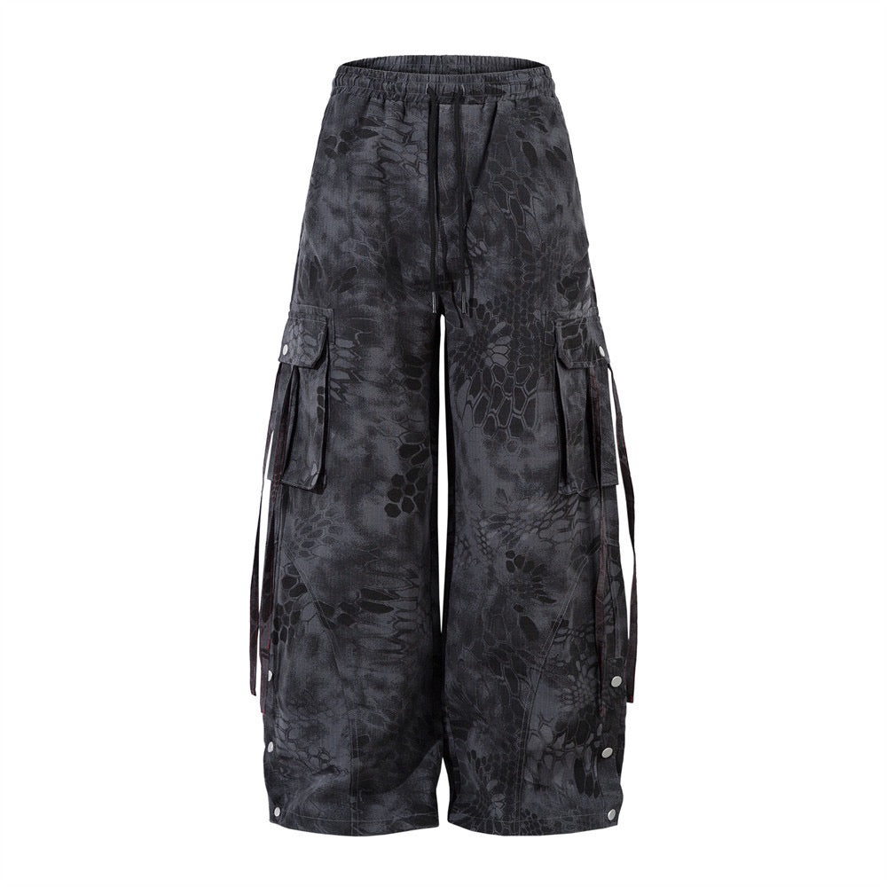 Tie-Dye Color Block Wide-Leg Cargo Pants