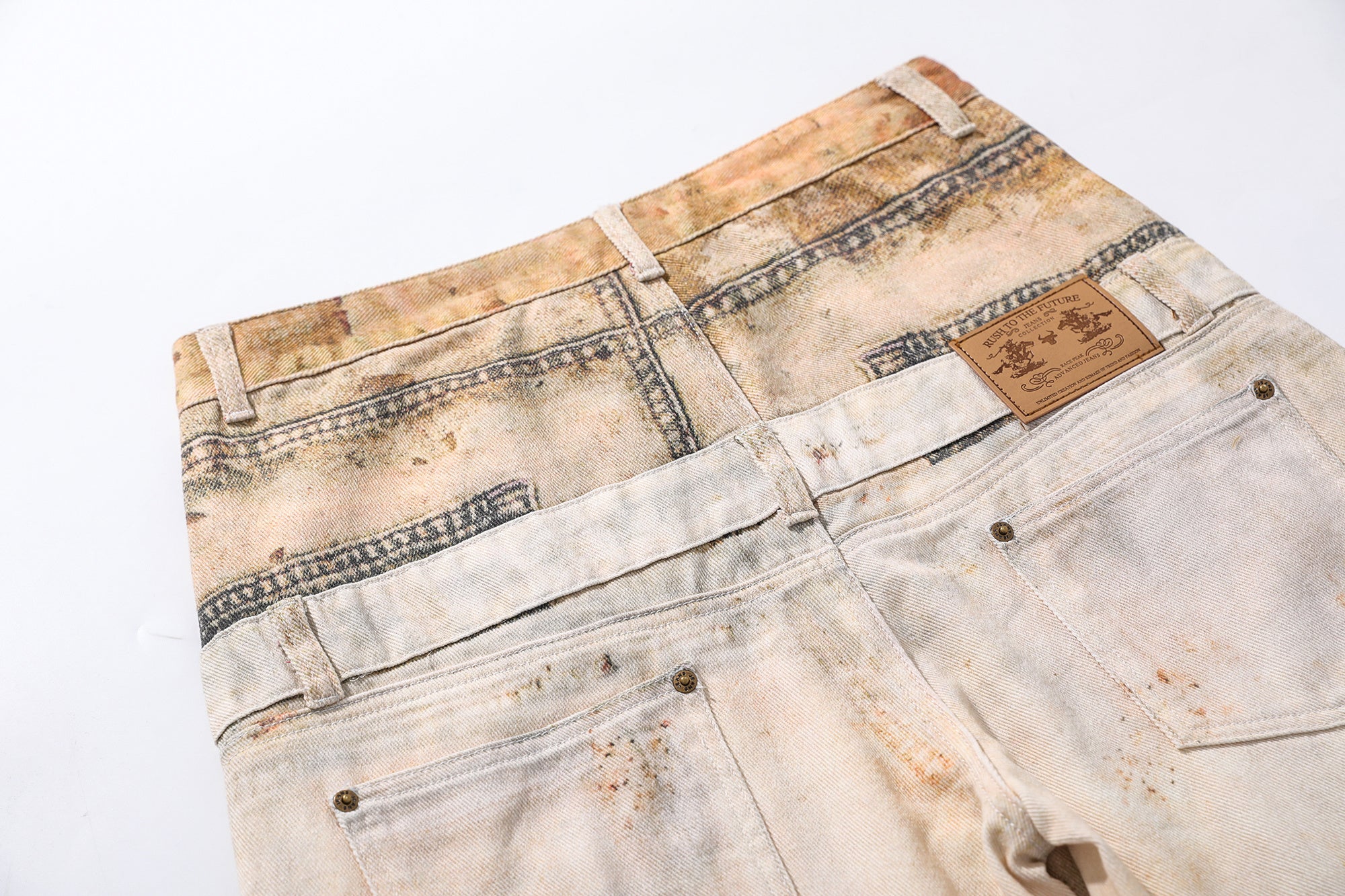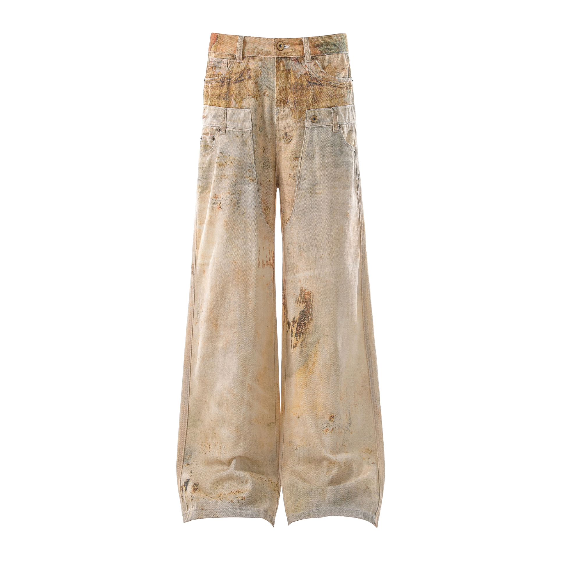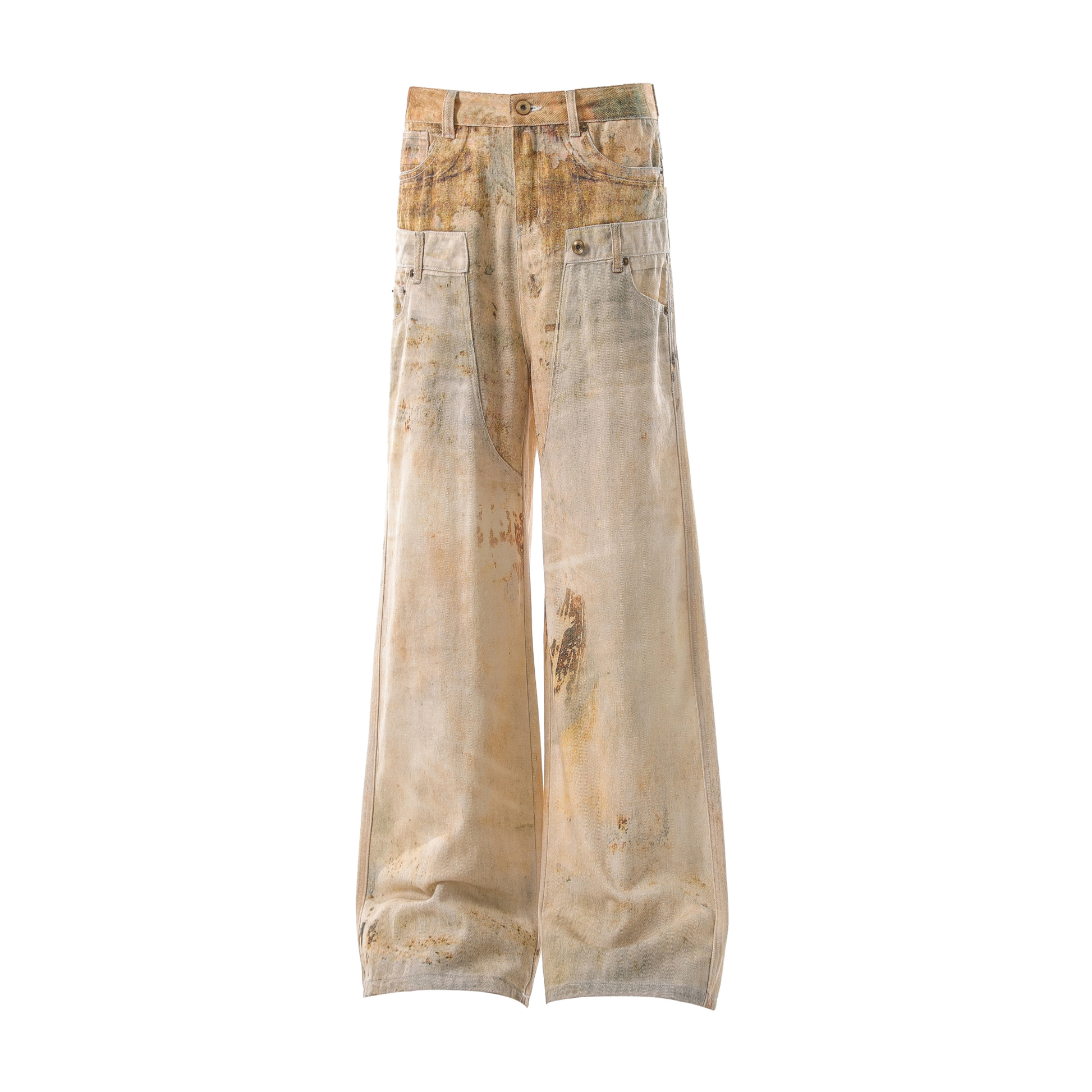 The Omirad Vintage Washed Workwear Jeans feature a distressed, time-worn finish inspired by industrial utility wear. Each pair is individually treated to achieve a unique aged patina, delivering that authentic vintage feel. The wide-leg silhouette and heavy cotton fabric ensure comfort, durability, and unmistakable street presence.