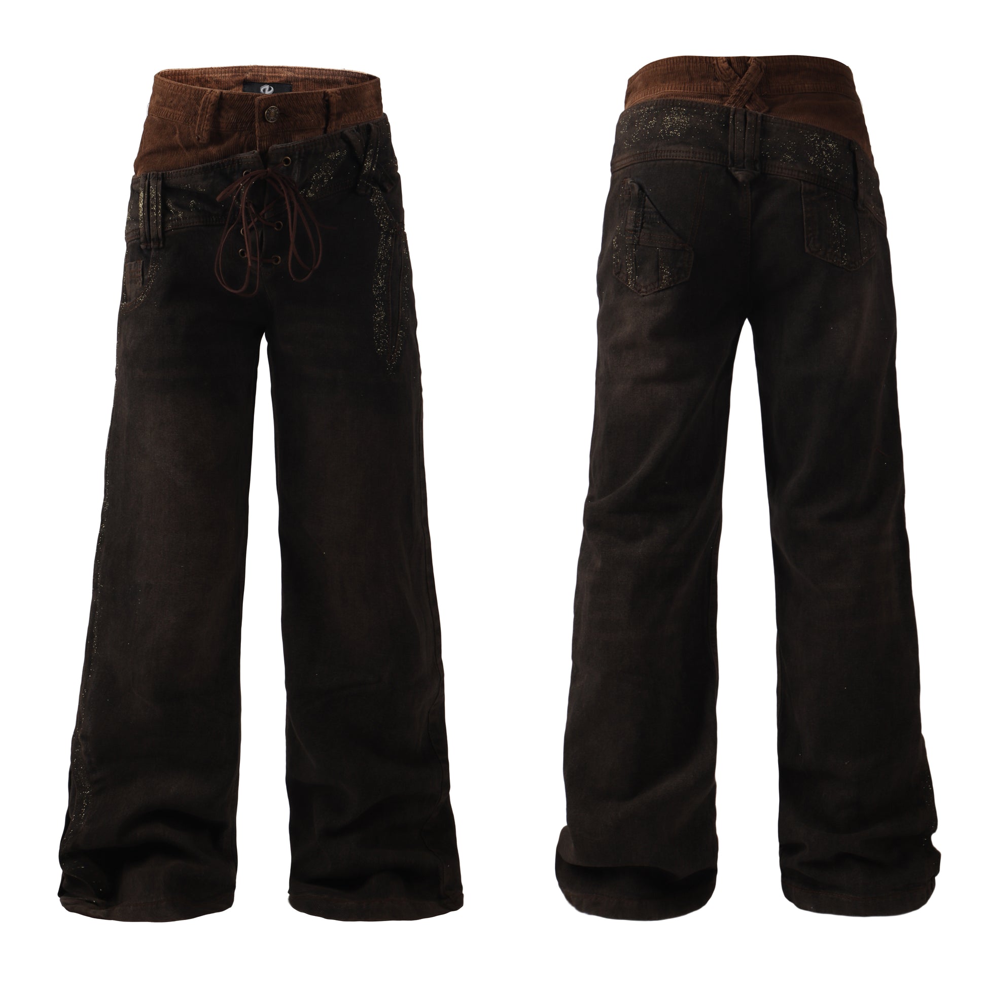 Vintage American Double-Waist Gold-Washed Jeans