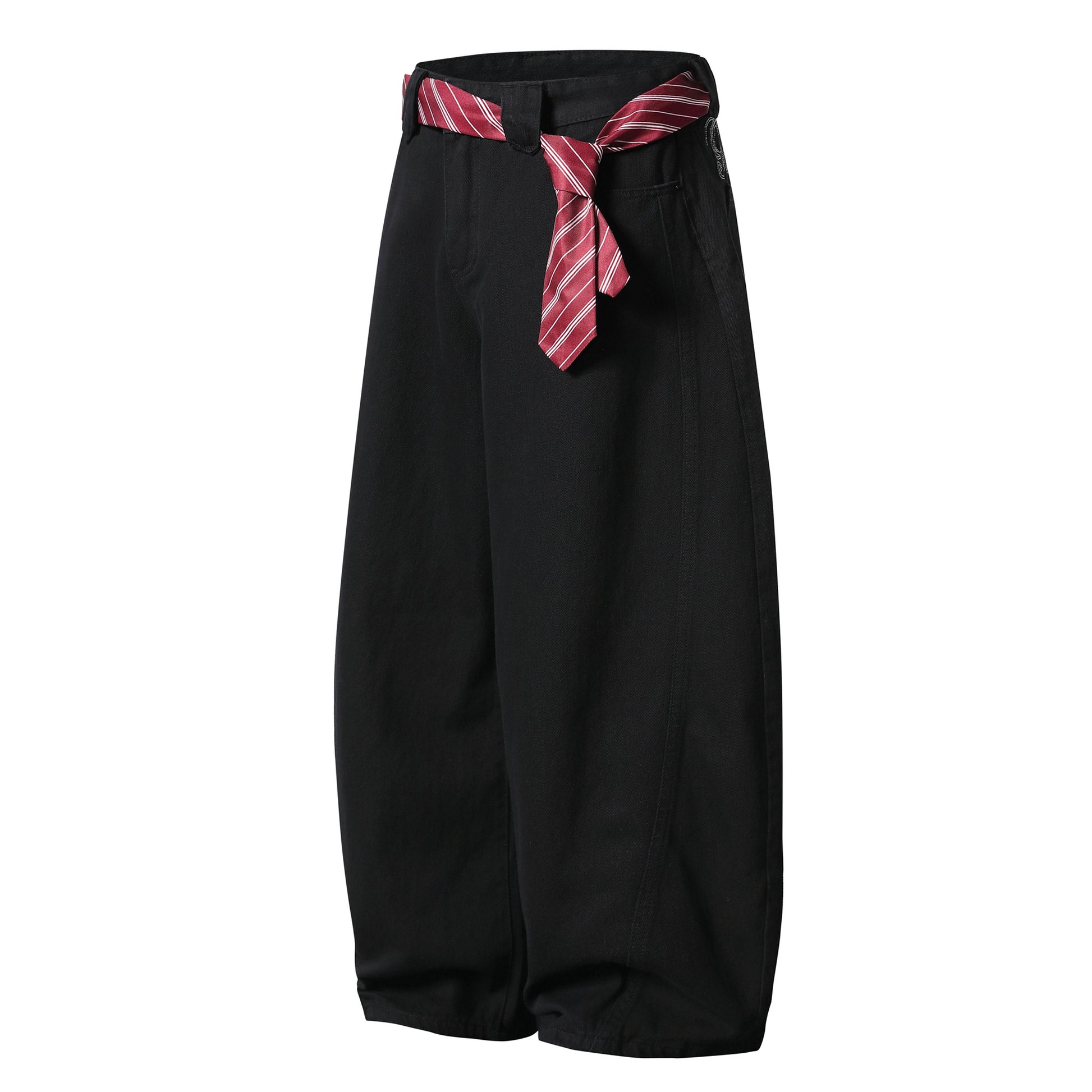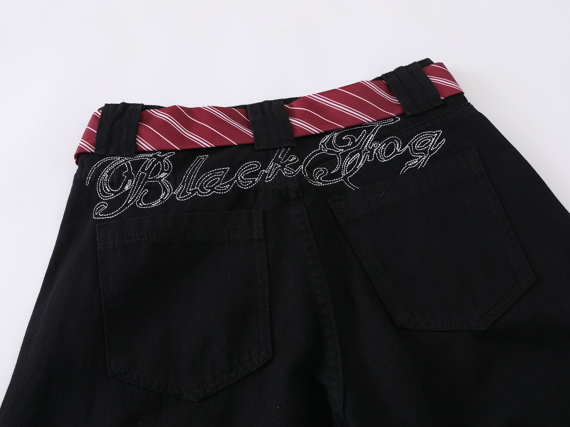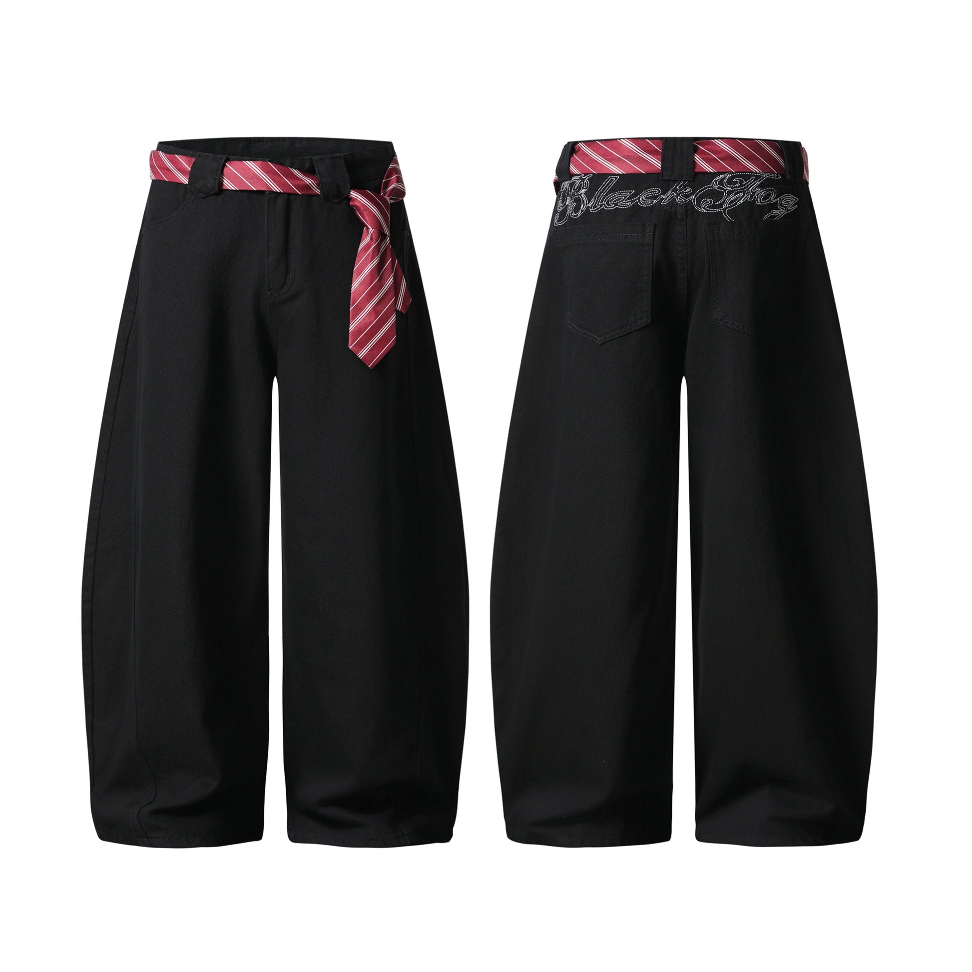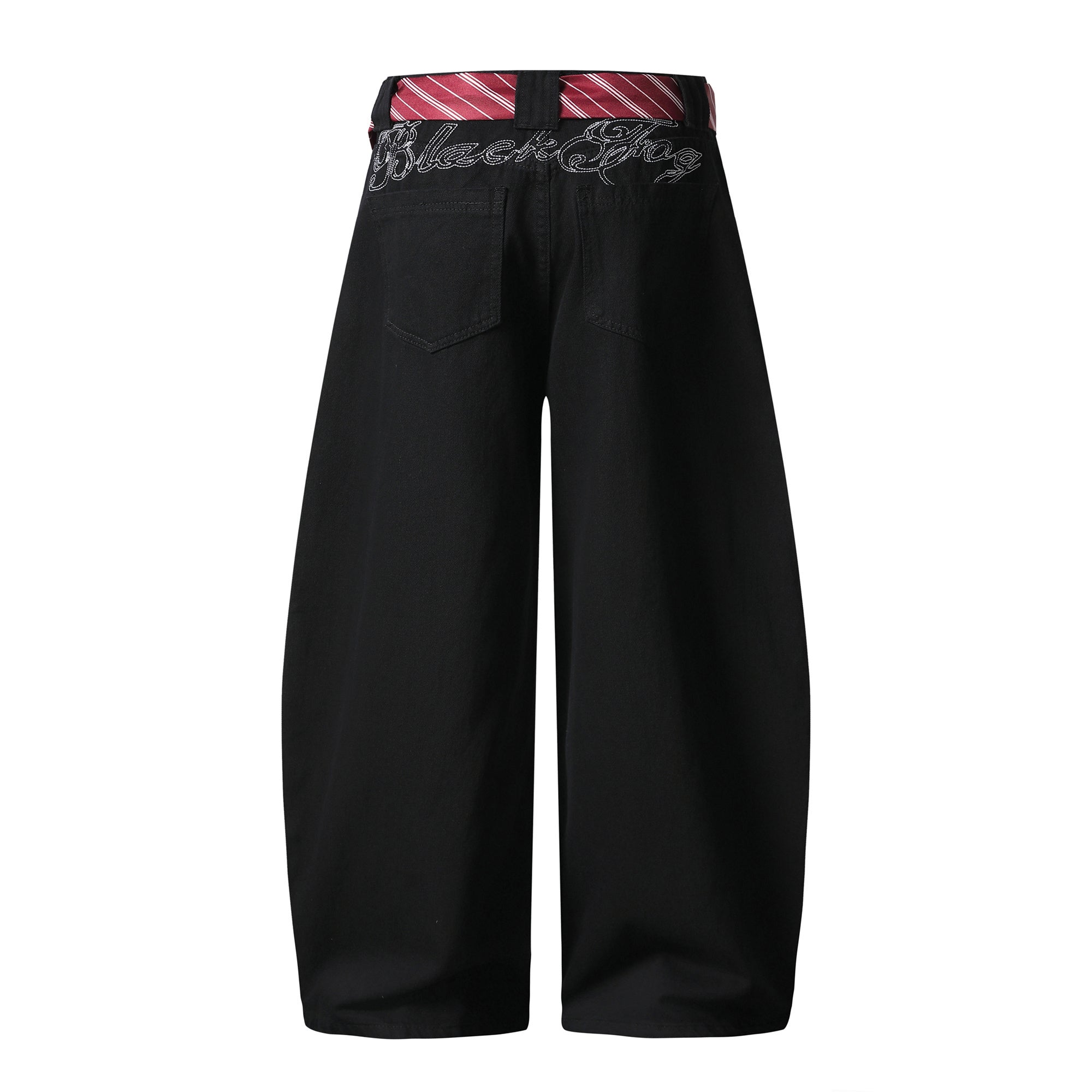 Vintage American Embroidered Plaid-Belt Curved-Cut Jeans