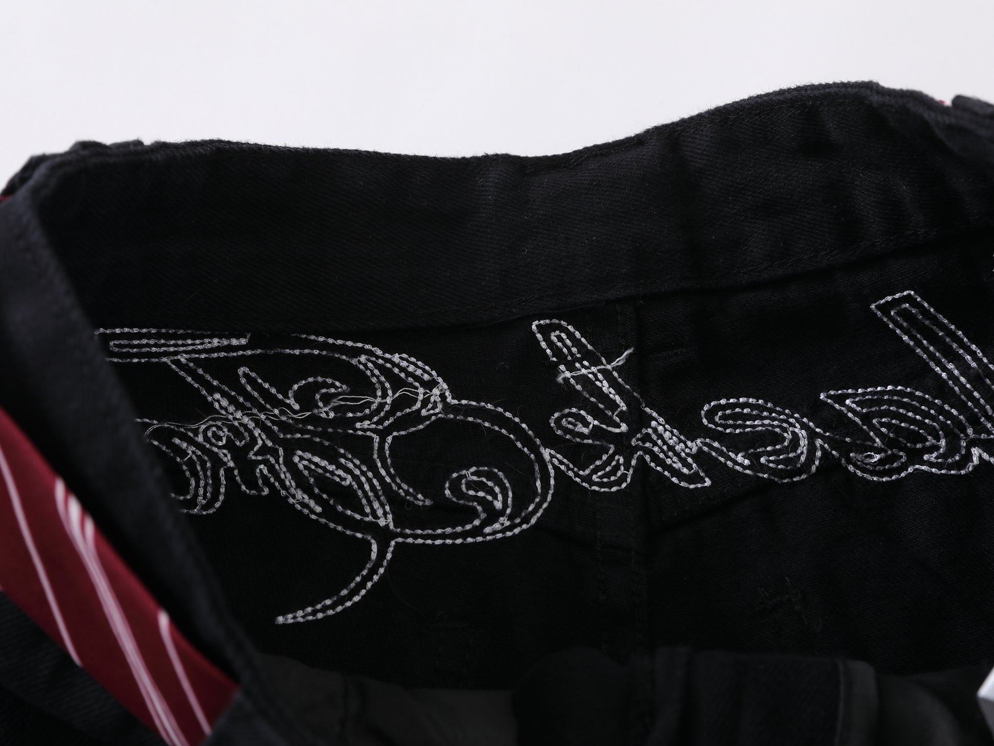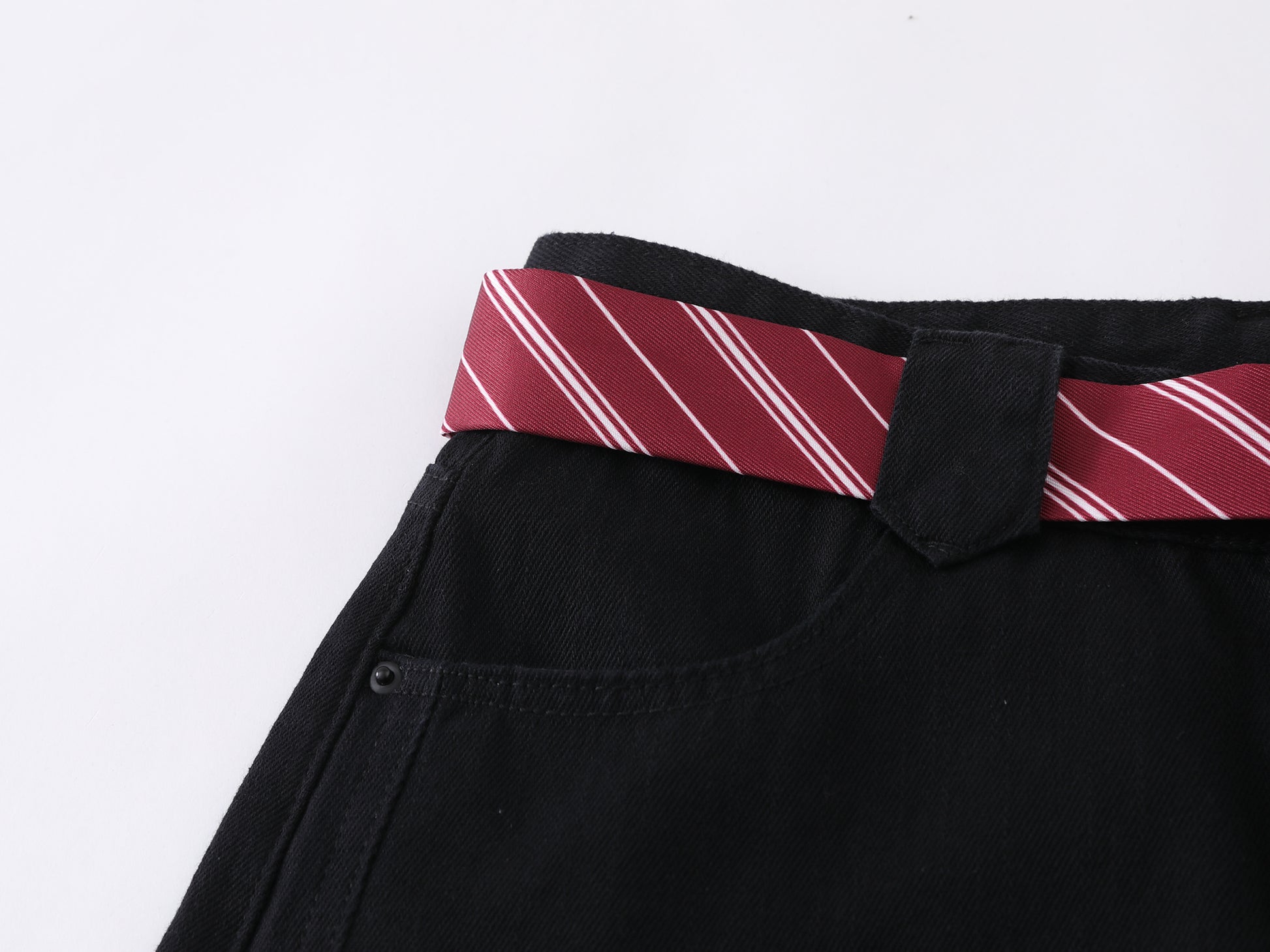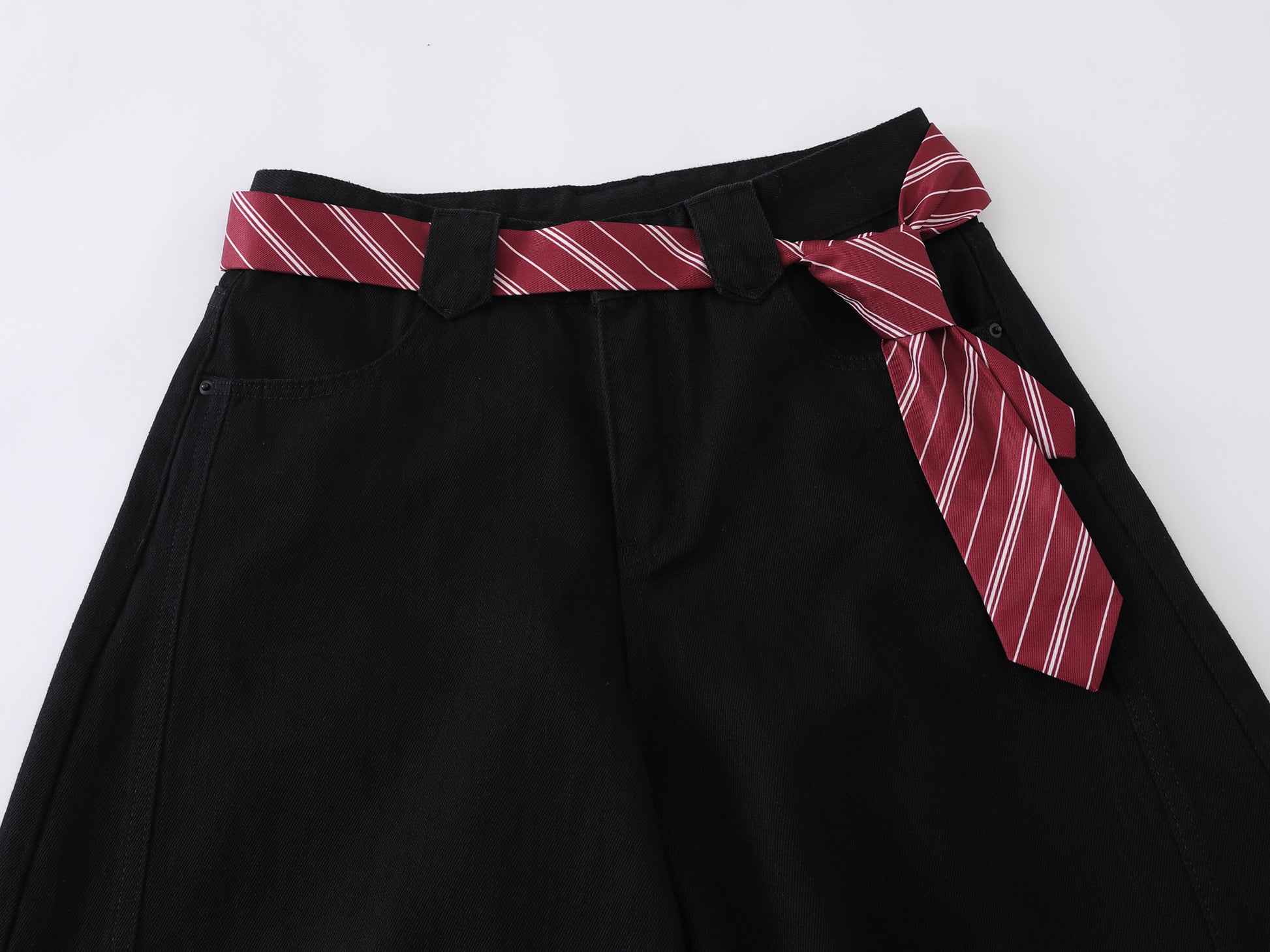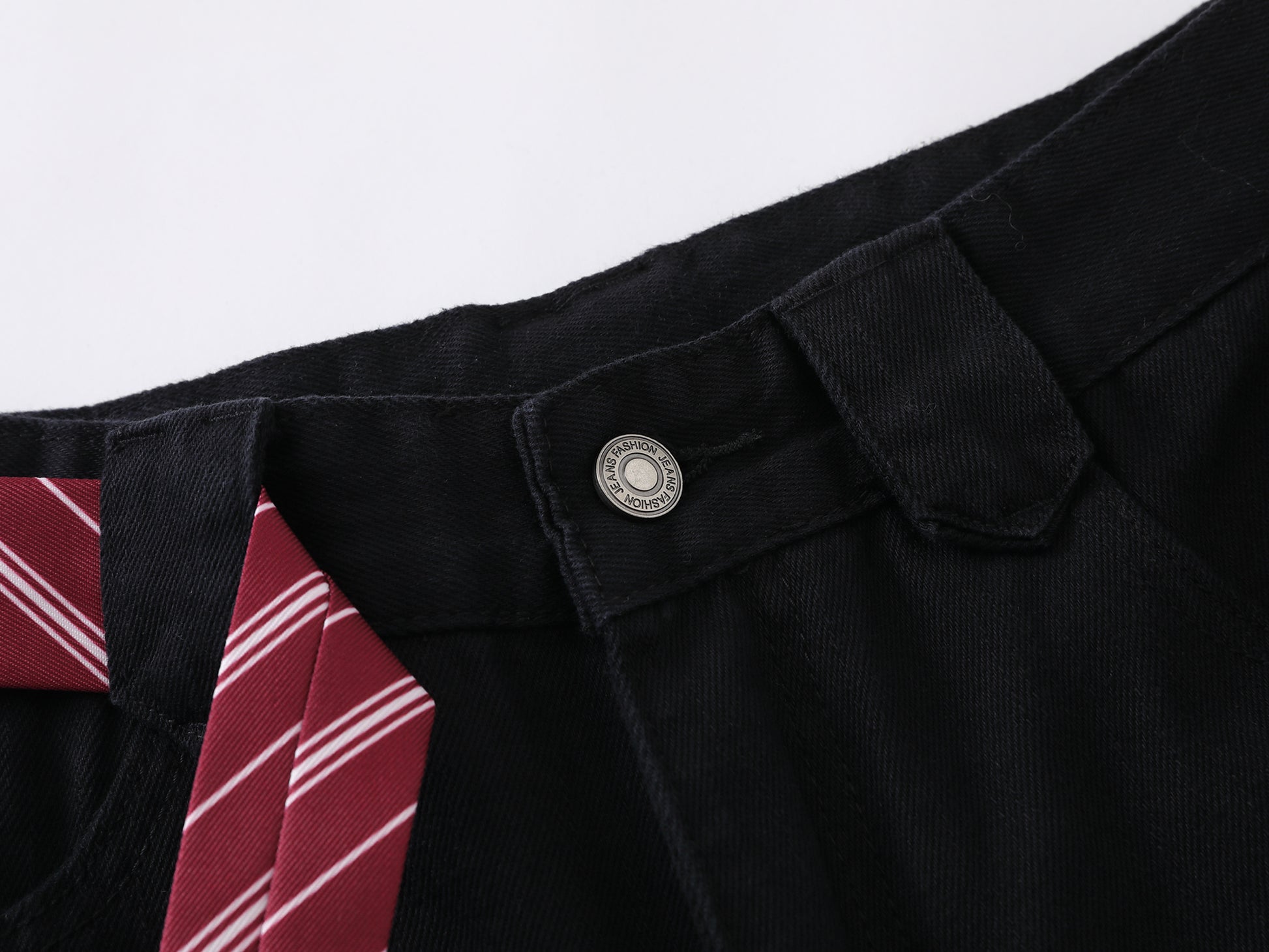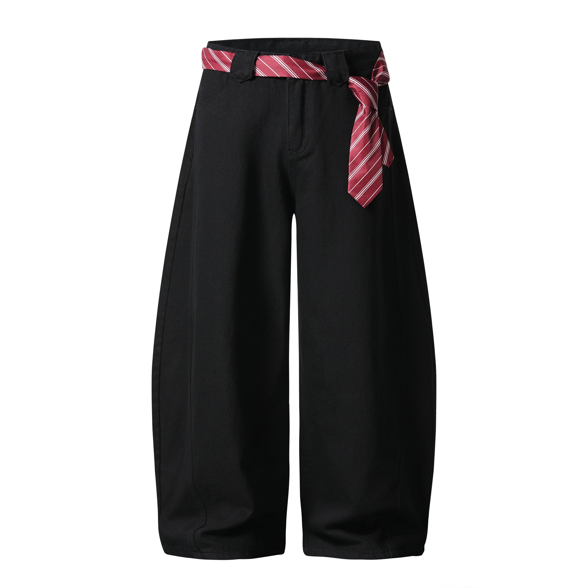 Vintage American Embroidered Plaid-Belt Curved-Cut Jeans