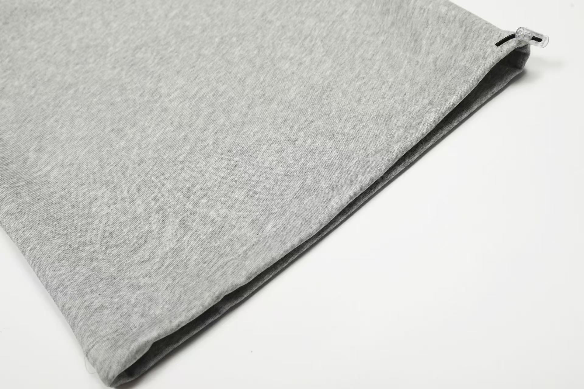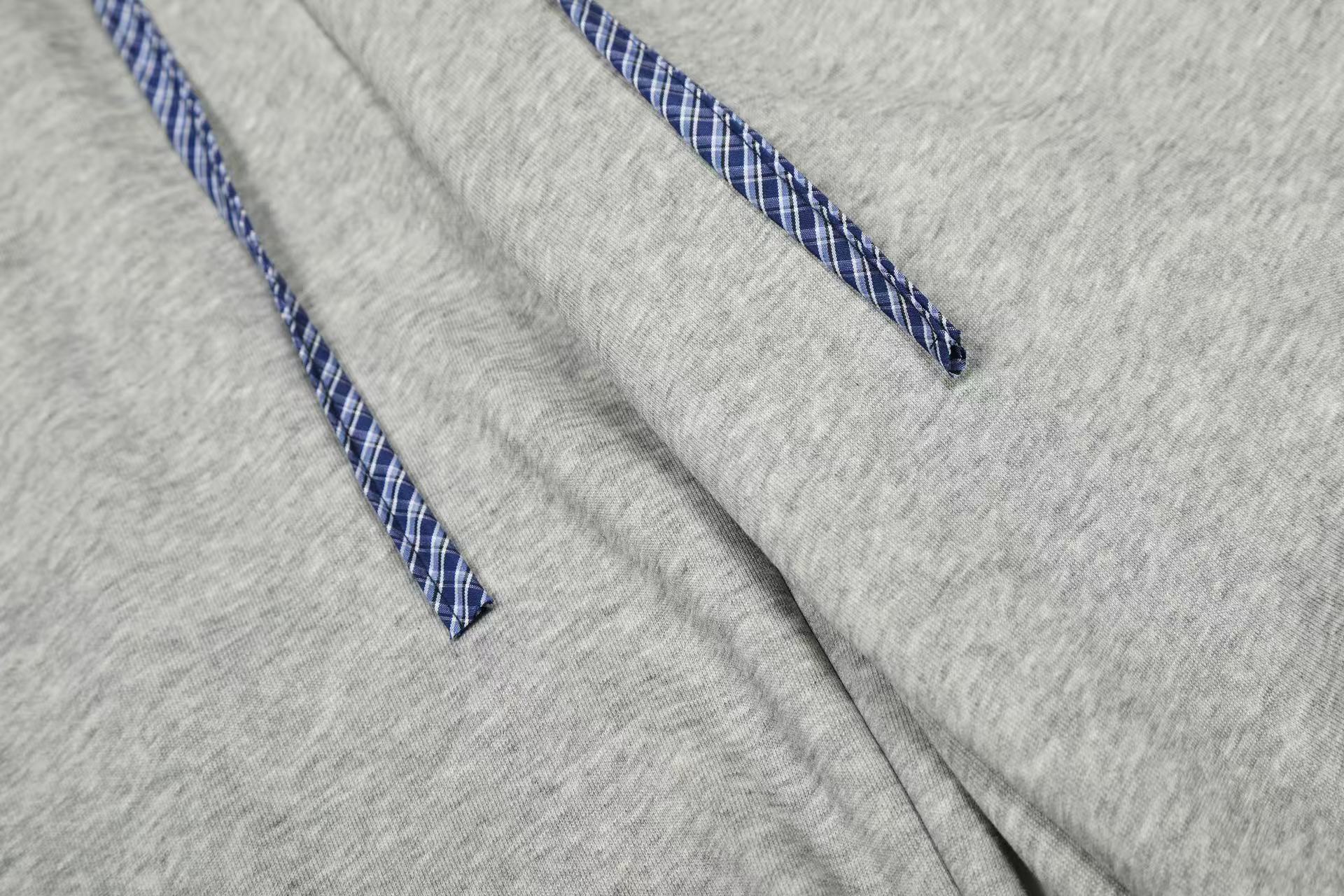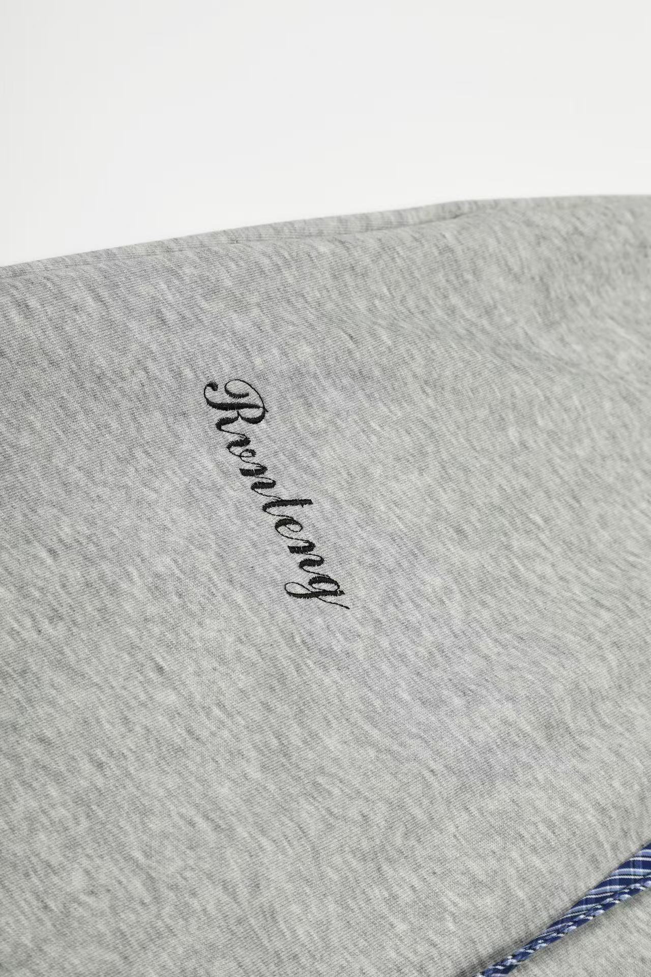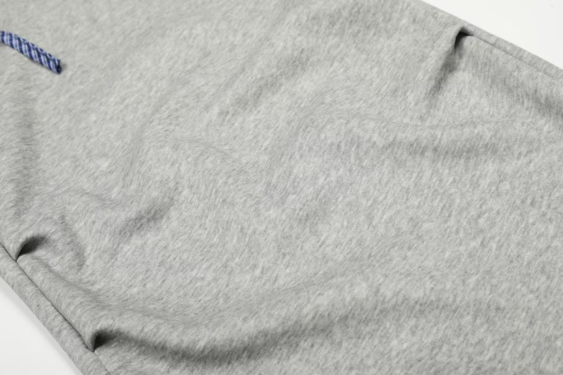Clothing details: Plaid waistband, drawstring closure, embroidered graphics, adjustable hem, oversized fit.