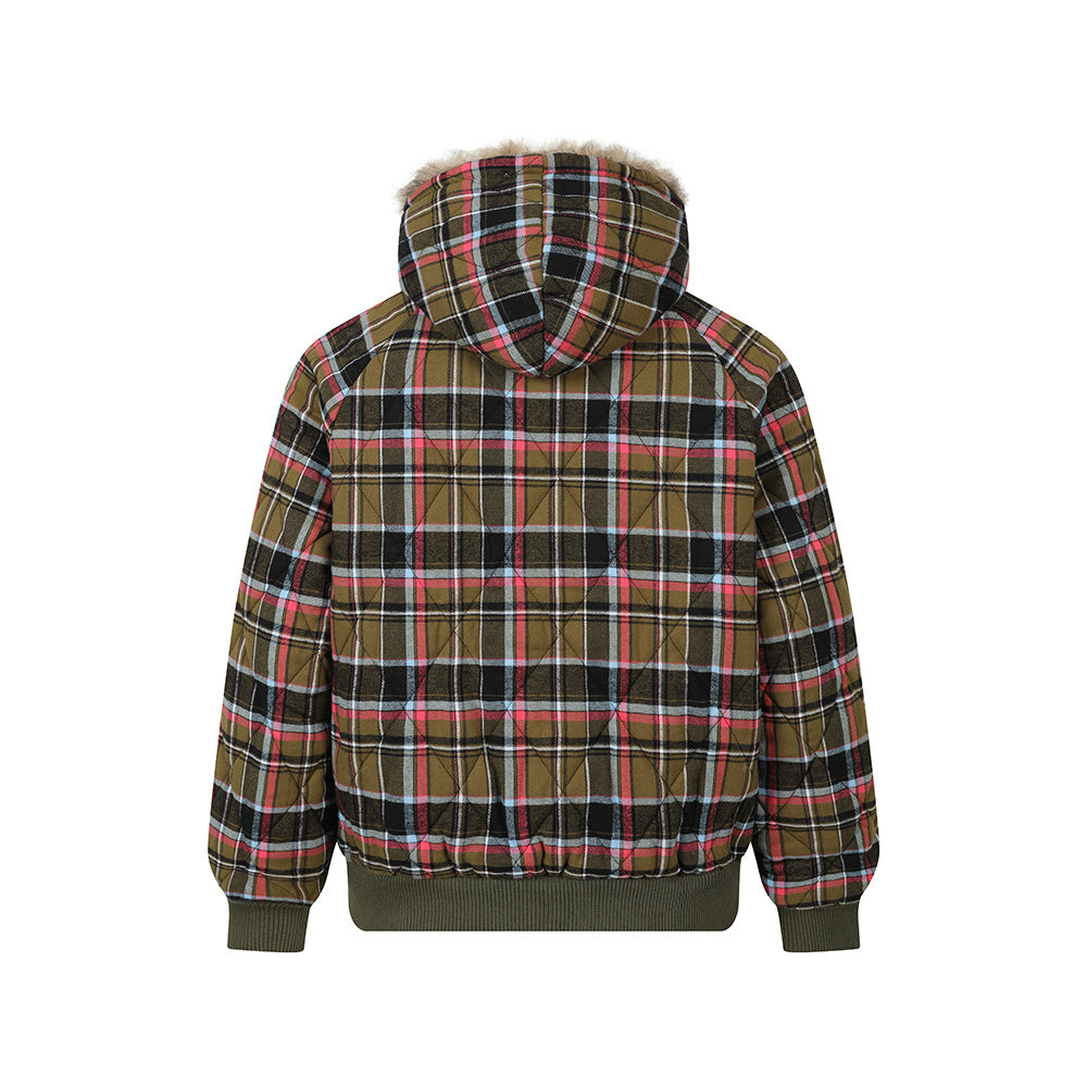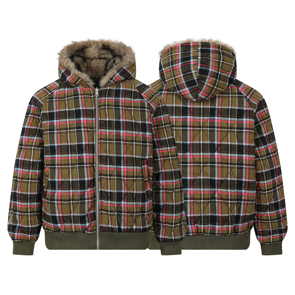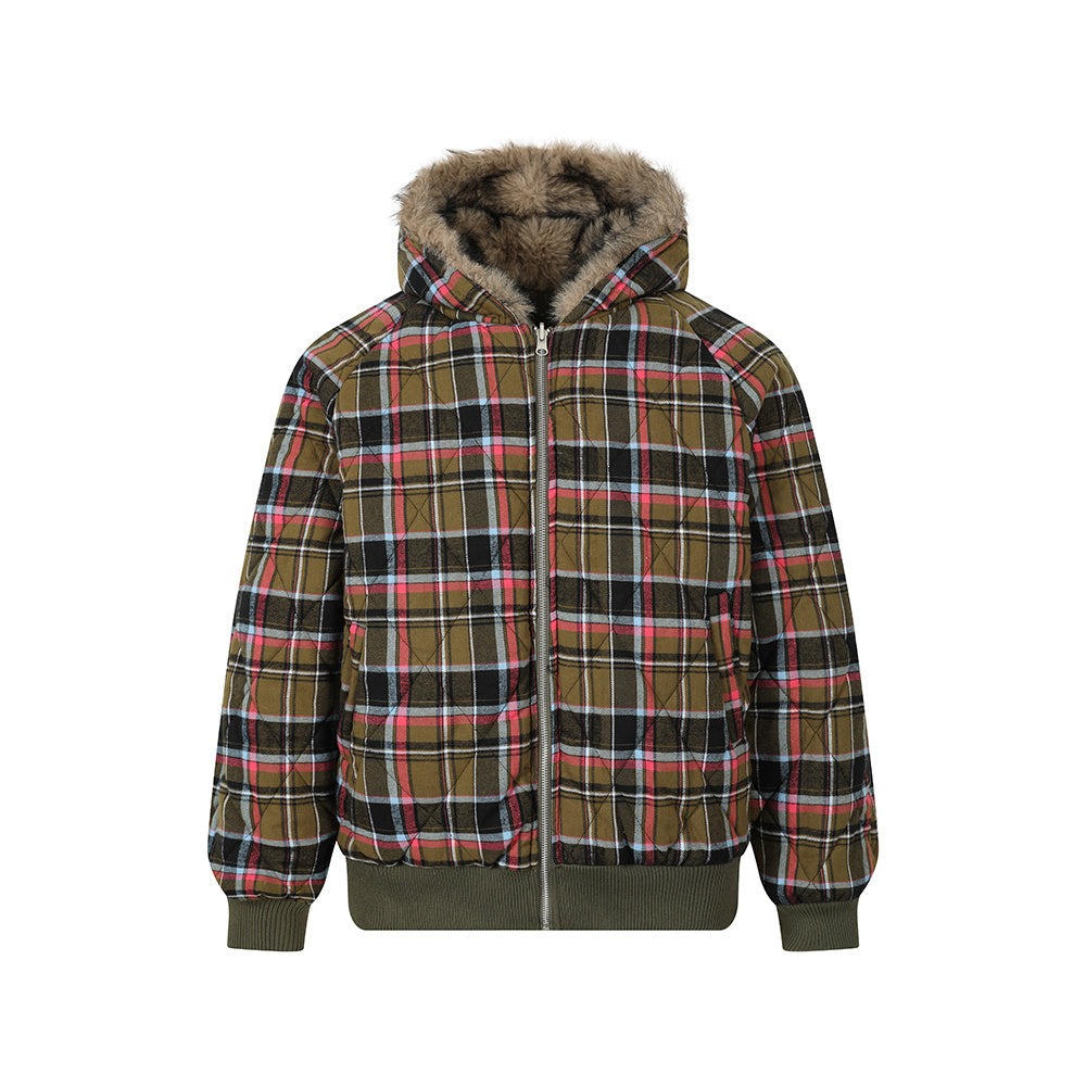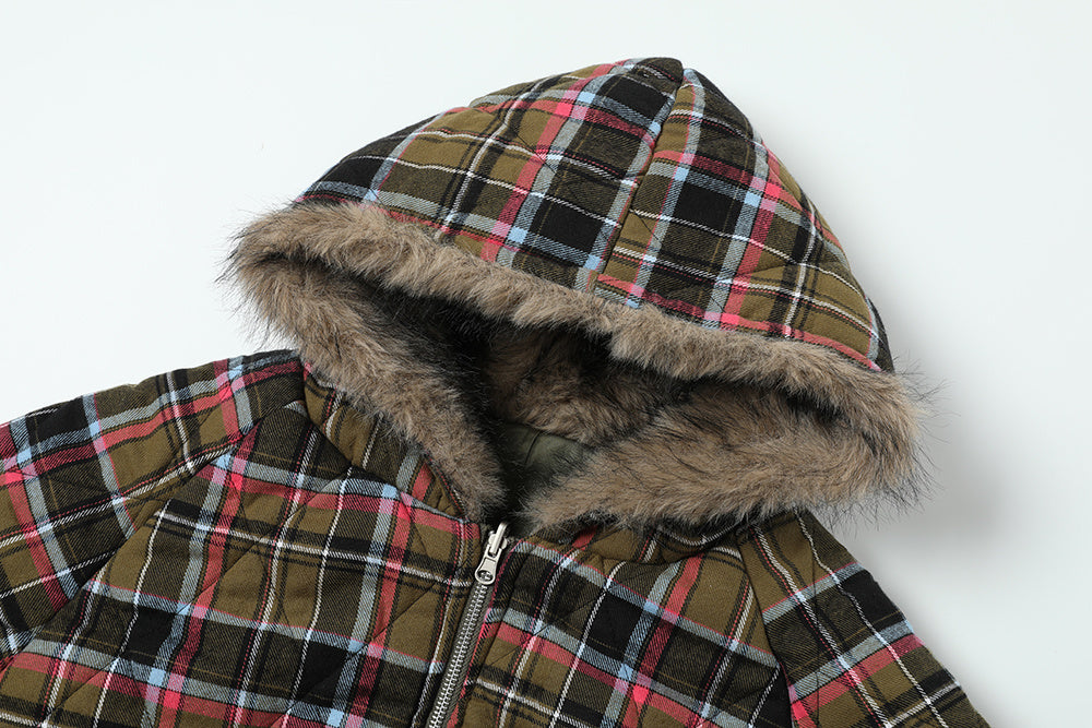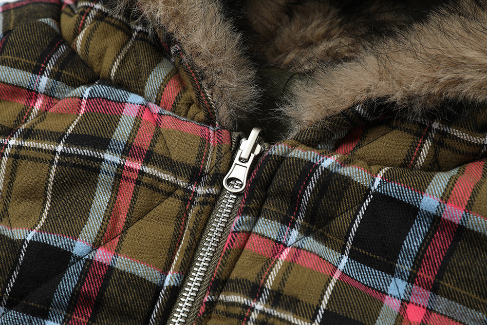Vintage American Reversible Plaid Fur-Collar Padded Jacket
